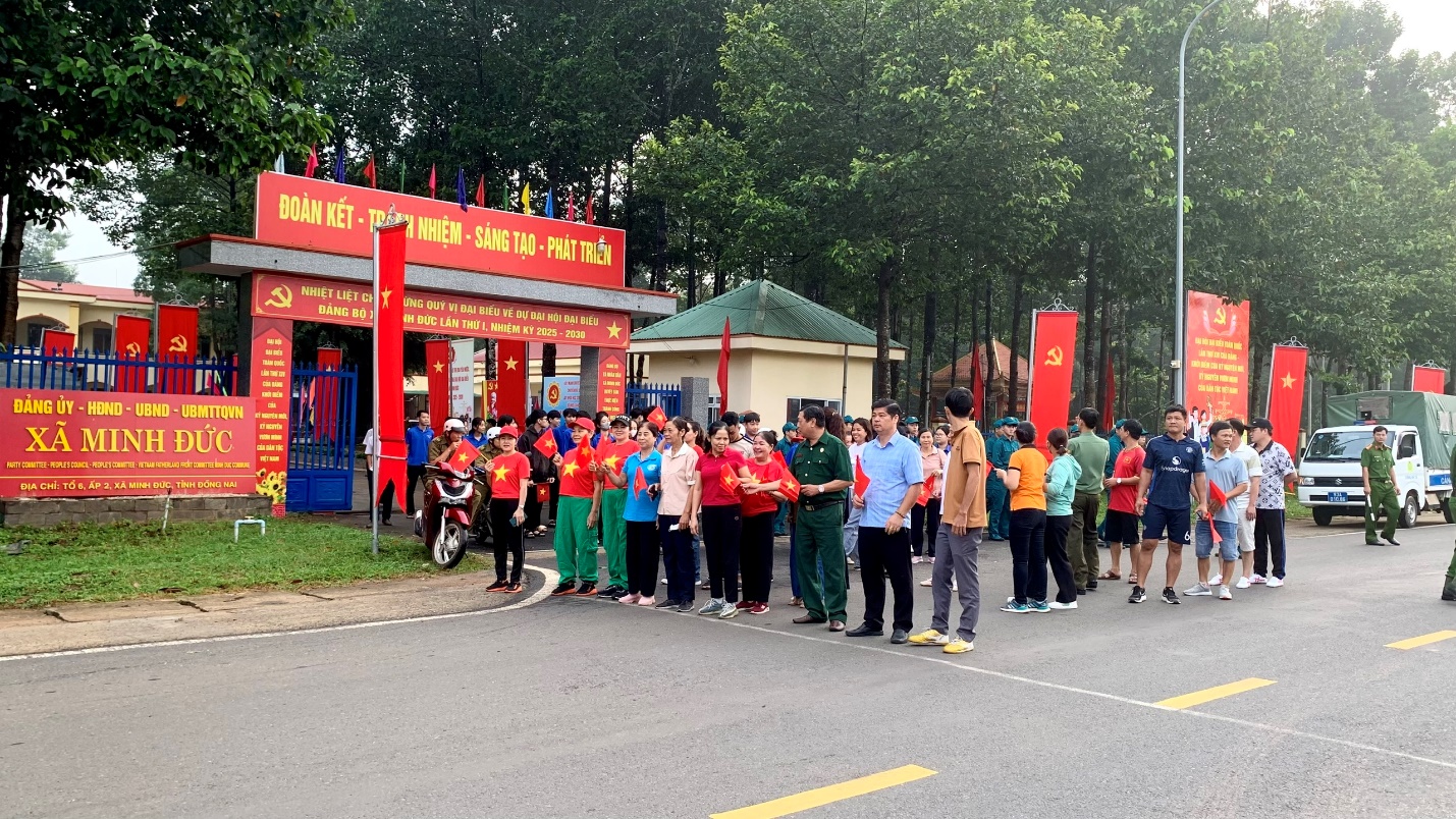 Chương trình bắt đầu từ 5 giờ 30 phút sáng, toàn thể đại biểu và Nhân dân cùng tham dự nghi thức tiếp sóng Lễ thượng cờ Quốc gia từ Quảng trường Ba Đình. Khoảnh khắc thiêng liêng này đã khơi dậy niềm tự hào dân tộc, tinh thần đoàn kết, ý chí quyết tâm vươn lên của cán bộ và Nhân dân Minh Đức.