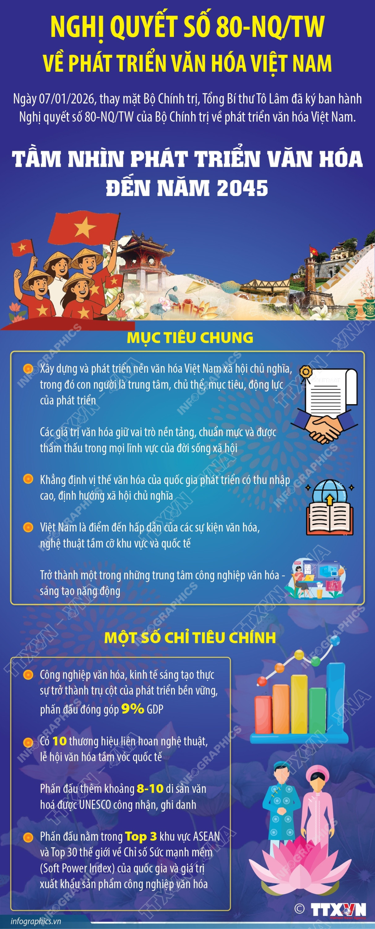Ngày 7/1/2026, thay mặt Bộ Chính trị, Tổng Bí thư Tô Lâm đã ký ban hành Nghị quyết số 80-NQ/TW của Bộ Chính trị về phát triển văn hóa Việt Nam. Nghị quyết được ban hành trong bối cảnh đất nước bước vào giai đoạn phát triển mới với yêu cầu ngày càng cao về phát triển nhanh, bền vững, gắn kết chặt chẽ giữa kinh tế, chính trị, xã hội với văn hóa và con người.