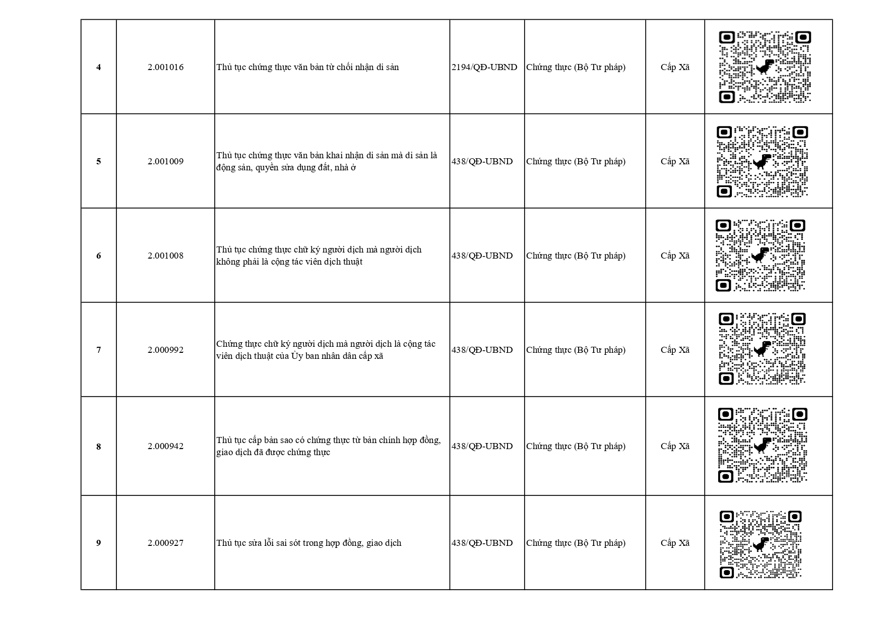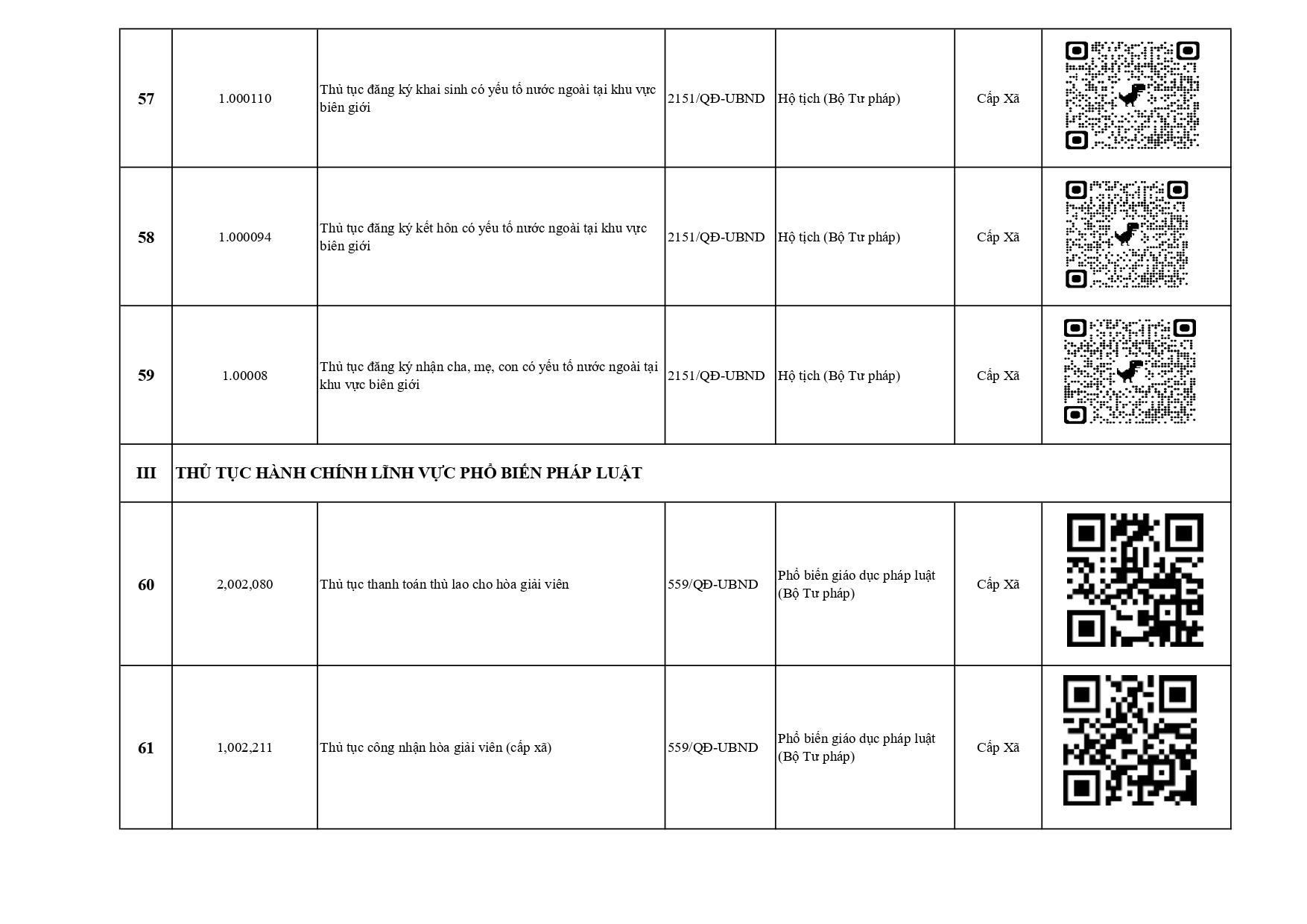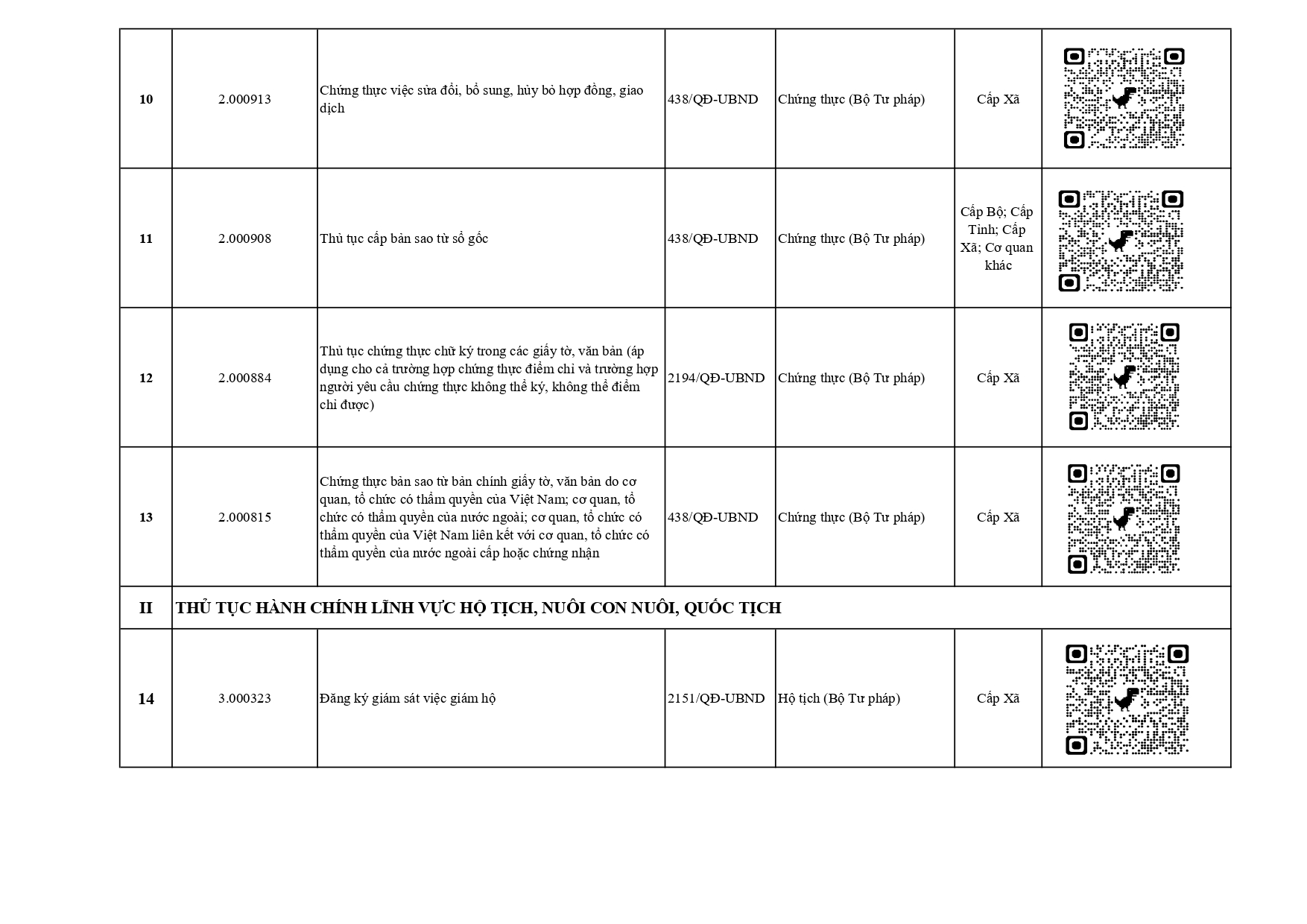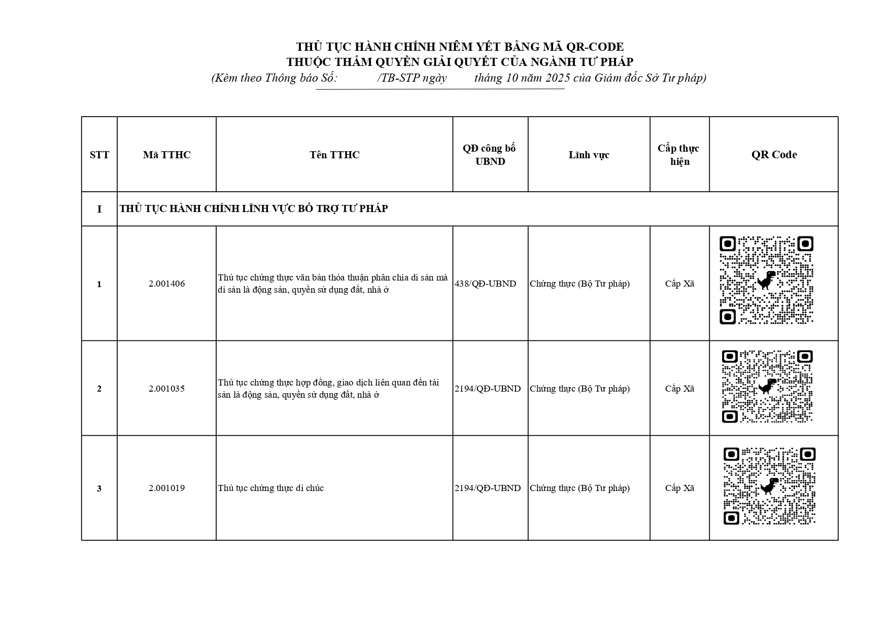 THÔNG BÁONiêm yết thủ tục hành chính ngành Tư pháp bằng mã QR-Code