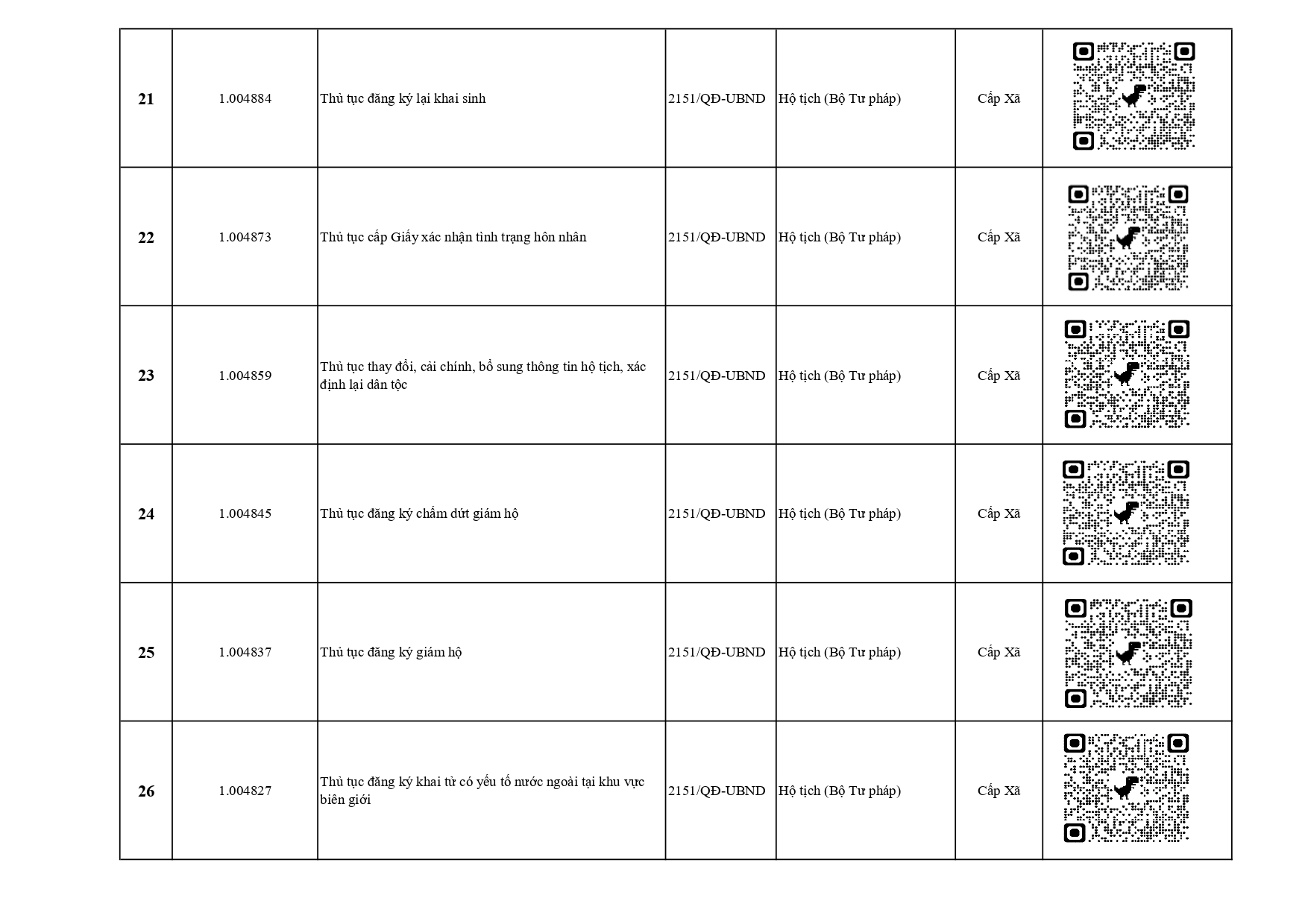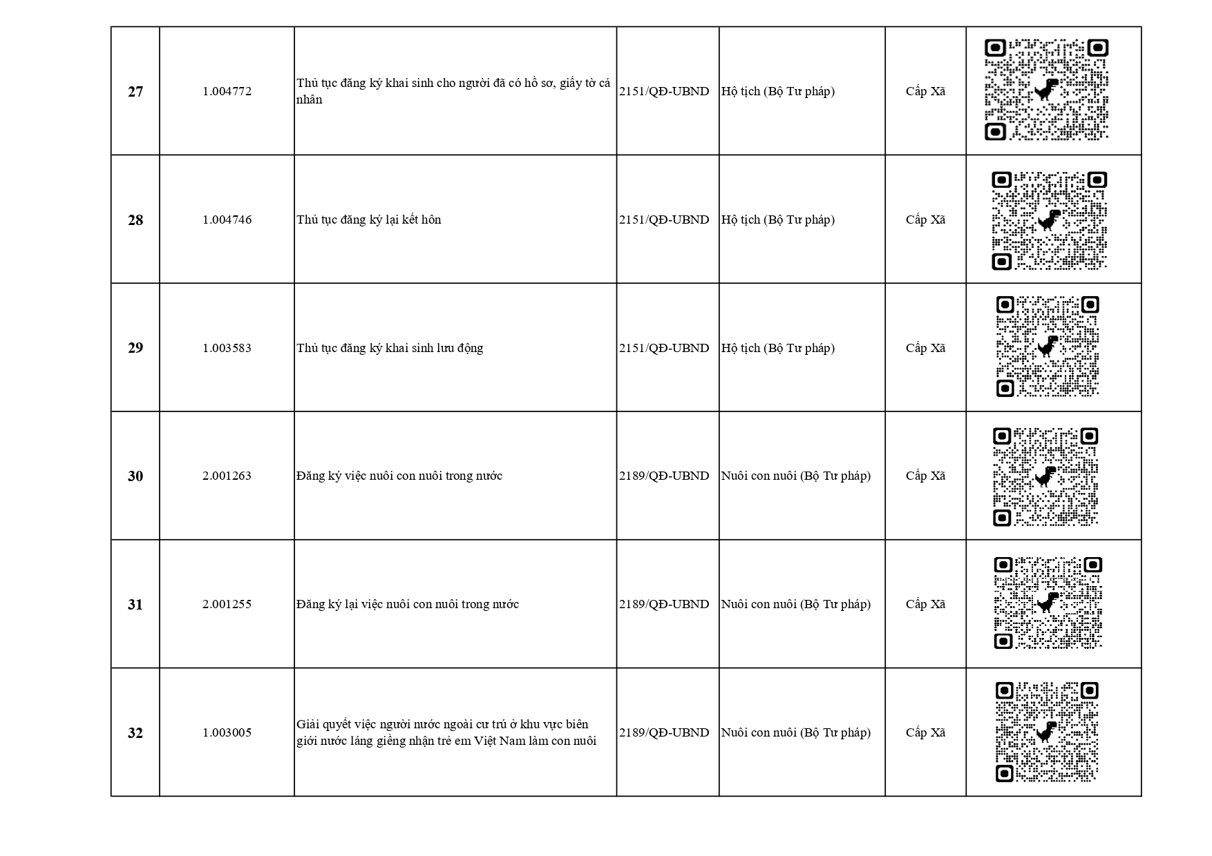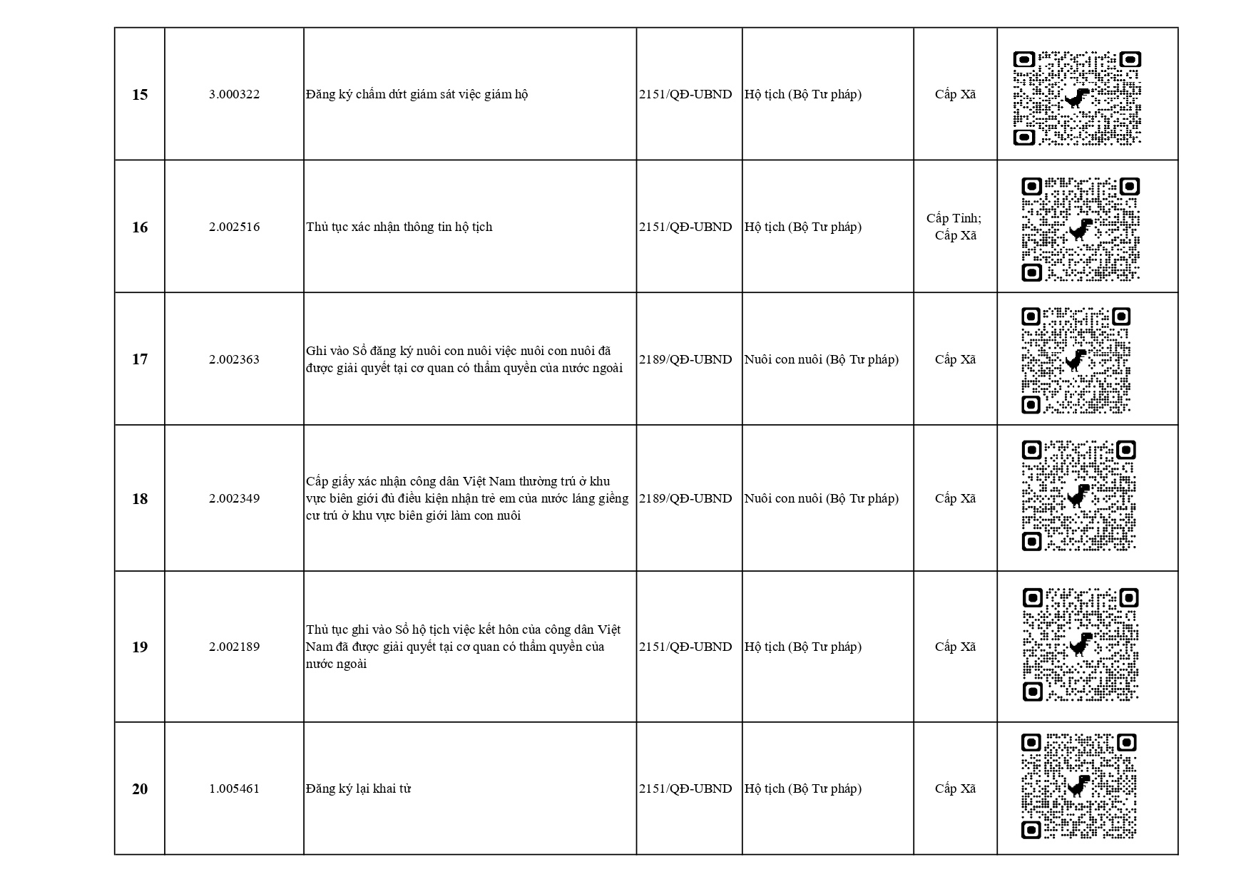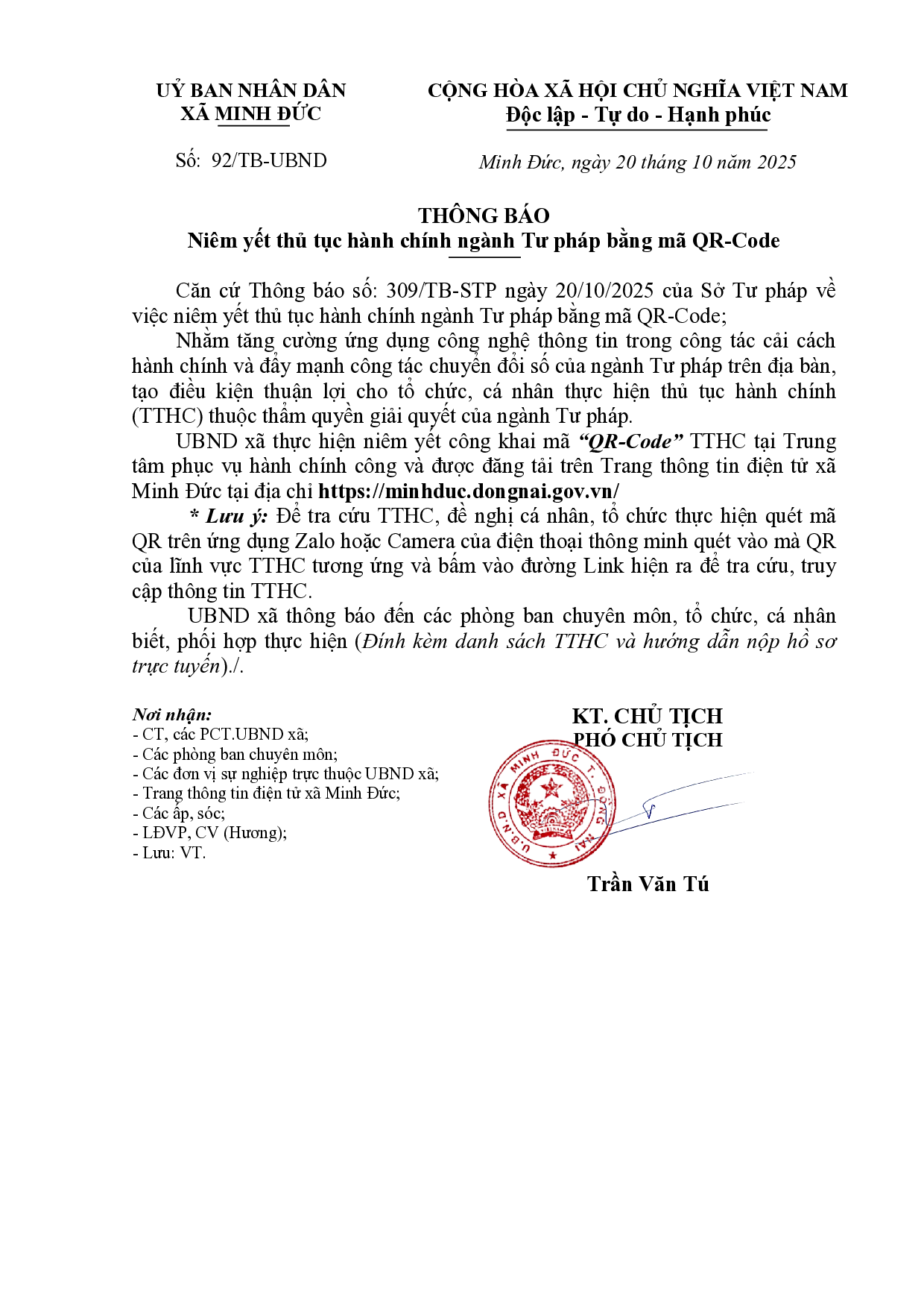THÔNG BÁONiêm yết thủ tục hành chính ngành Tư pháp bằng mã QR-Code