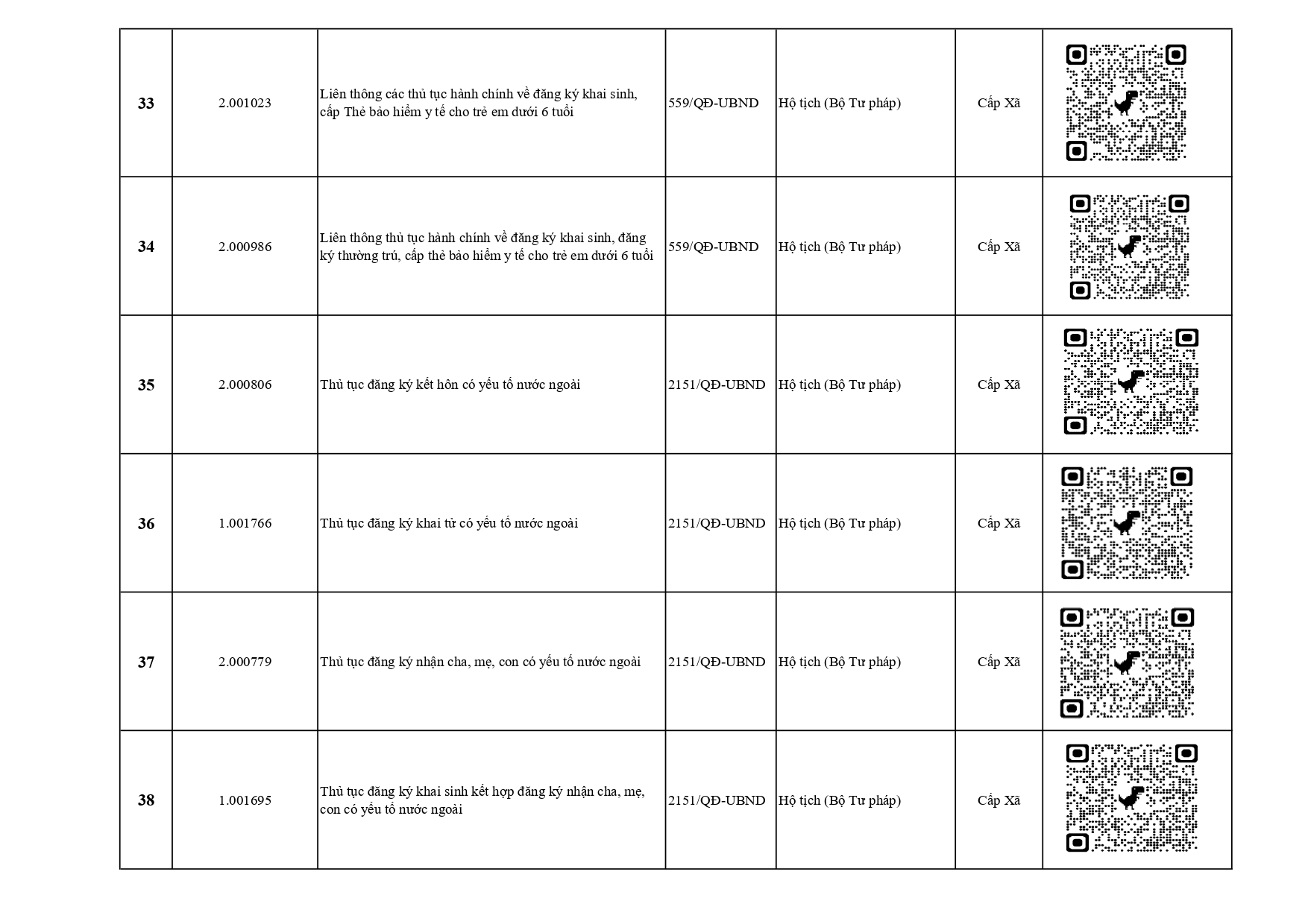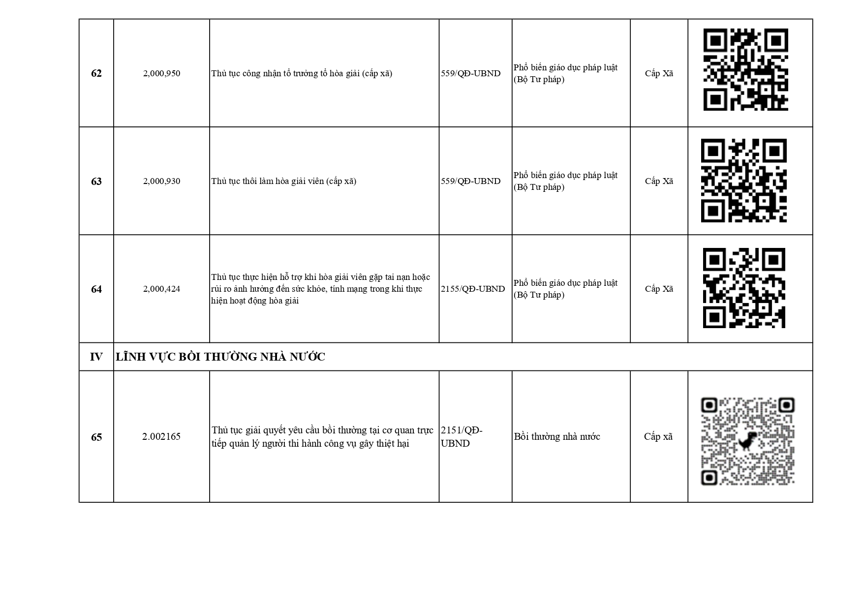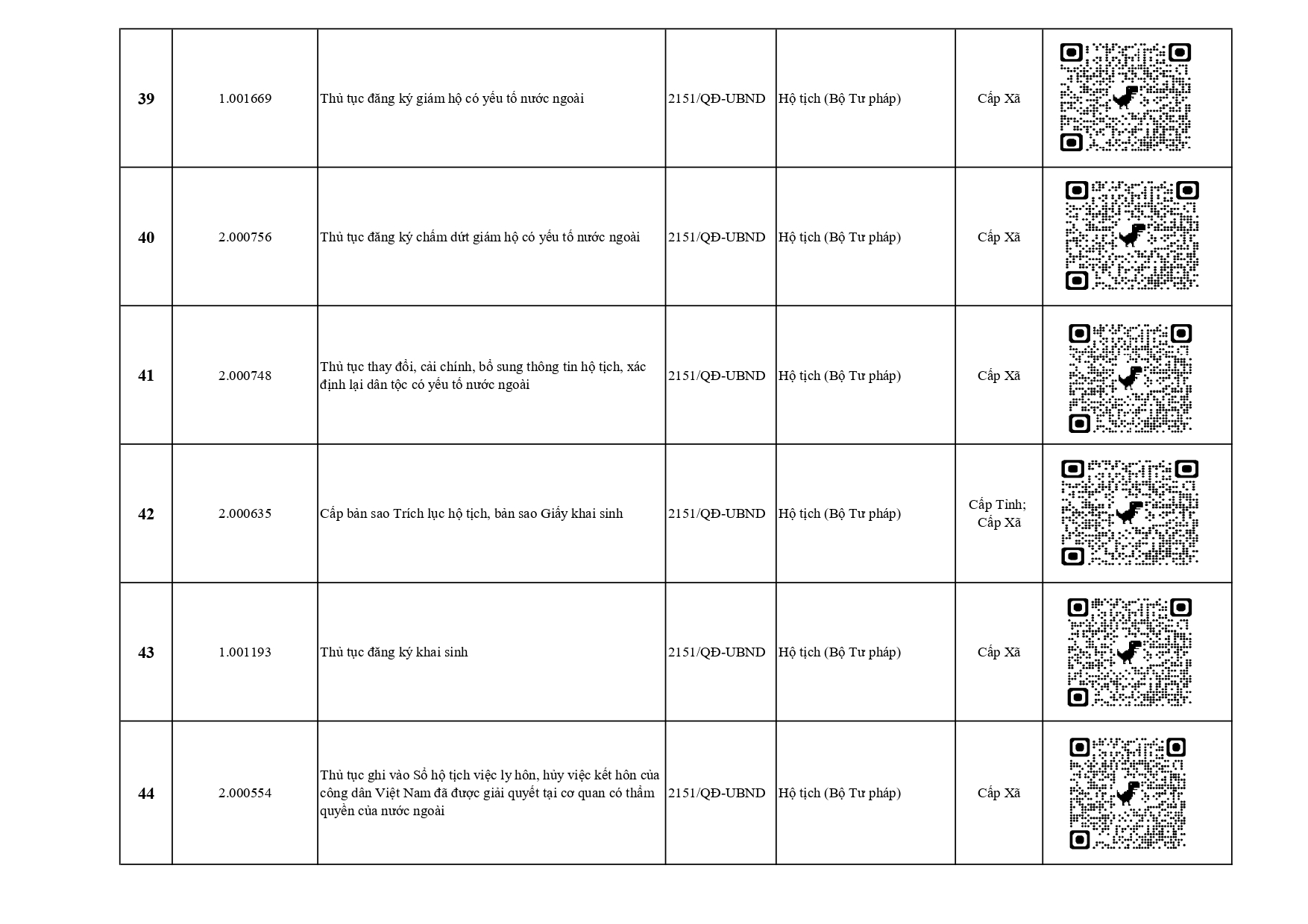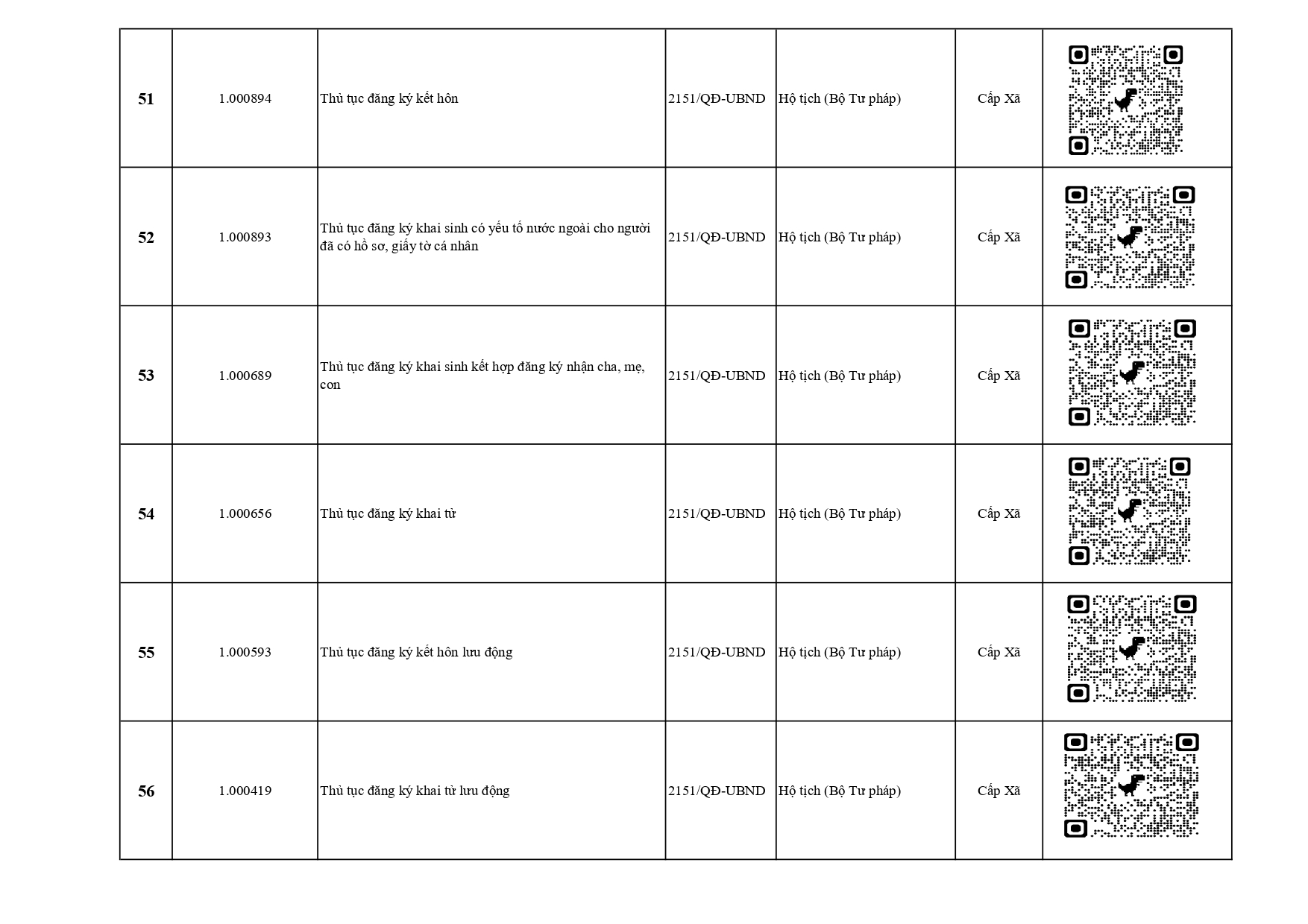 THÔNG BÁONiêm yết thủ tục hành chính ngành Tư pháp bằng mã QR-Code