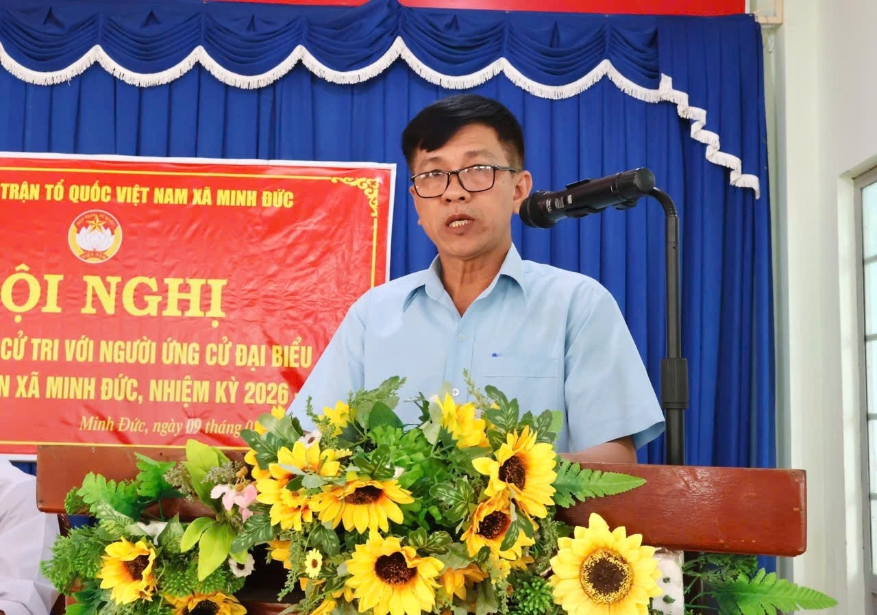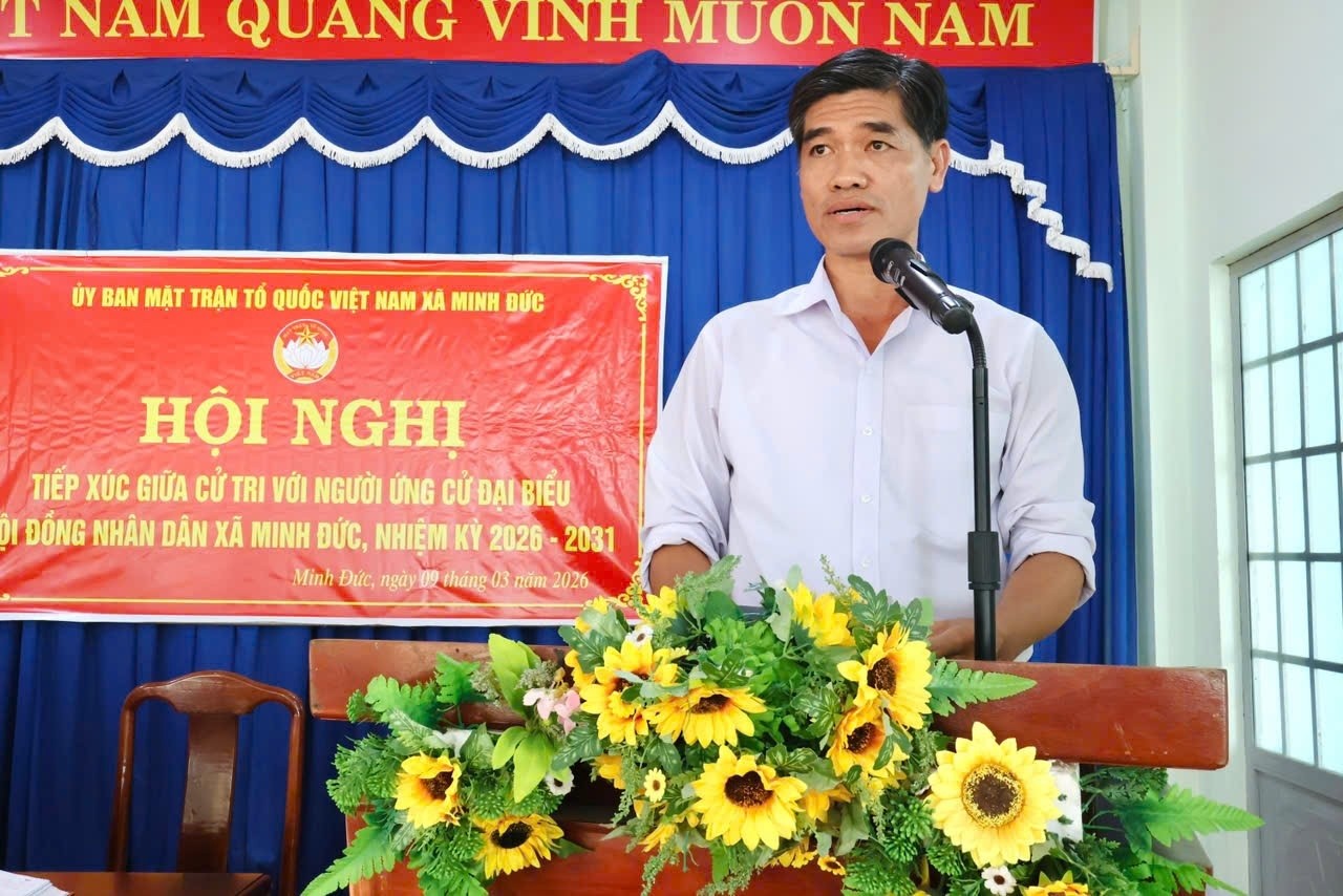 <p style="text-align:justify;"><span class="text-big" style="color:rgb(8,8,9);">Chiều ngày 9/3/2026, tại Hội trường Ban Chỉ huy Quân sự xã, Ủy ban MTTQ Việt Nam xã Minh Đức tổ chức Hội nghị tiếp xúc cử tri, vận động bầu cử đối với những người ứng cử đại biểu HĐND xã Minh Đức nhiệm kỳ 2026 – 2031 thuộc đơn vị bầu cử số 06.</span></p><p style="text-align:justify;"><span class="text-big" style="color:rgb(8,8,9);">Hội nghị do đồng chí Mai Ngọc Thoan – Đảng ủy viên - Phó Chủ tịch Ủy ban MTTQ Việt Nam - Chủ tịch Hội Nông dân xã chủ trì. Tham dự hội nghị có đồng chí Lê Viết Vẻ – Ủy viên Ban Thường vụ, Chủ nhiệm Uỷ ban Kiểm tra xã cùng đông đảo cử tri thuộc đơn vị bầu cử số 6, gồm các ấp: ấp Phố Lố, ấp Bình Phú, ấp Sóc Rul và Ban Chỉ huy Quân sự xã.</span></p><p style="text-align:justify;"><span class="text-big" style="color:rgb(8,8,9);">Tại hội nghị, Ban Tổ chức đã giới thiệu và thông qua tiểu sử tóm tắt của 5 người ứng cử đại biểu HĐND xã Minh Đức nhiệm kỳ 2026–2031 tại đơn vị bầu cử số 6, gồm:</span></p><p style="text-align:justify;"><span class="text-big" style="color:rgb(8,8,9);">1. Bà Bùi Thị Hoàn – Chuyên viên Văn phòng Đảng ủy xã Minh Đức</span></p><p style="text-align:justify;"><span class="text-big" style="color:rgb(8,8,9);">2. Bà Trịnh Hoàng Liên – Chuyên viên Văn phòng HĐND và UBND xã Minh Đức</span></p><p style="text-align:justify;"><span class="text-big" style="color:rgb(8,8,9);">3. Ông Lưu Quốc Nhật –Phó Bí thư Thường trực Đảng ủy xã Minh Đức</span></p><p style="text-align:justify;"><span class="text-big" style="color:rgb(8,8,9);">4. Ông Nguyễn Văn Sót – Bí thư chi bộ Ấp Sóc Rul xã Minh Đức</span></p><p style="text-align:justify;"><span class="text-big" style="color:rgb(8,8,9);">5. Ông Lê Xuân Thắng – UVBTV, Phó Chủ tịch HĐND xã Minh Đức</span></p><p style="text-align:justify;"><span class="text-big" style="color:rgb(8,8,9);">Tại hội nghị, cử tri đã được nghe đại diện Ủy ban MTTQ Việt Nam xã Minh Đức báo cáo tóm tắt tiểu sử của các ứng cử viên đại biểu HĐND xã nhiệm kỳ 2026 – 2031. Đồng thời, các ứng cử viên đã trình bày chương trình hành động của mình nếu được cử tri tín nhiệm bầu làm đại biểu HĐND xã nhiệm kỳ tới. Nội dung chương trình hành động tập trung vào việc phát triển kinh tế - xã hội của địa phương, nâng cao đời sống vật chất và tinh thần của Nhân dân; quan tâm xây dựng cơ sở hạ tầng, giữ vững an ninh trật tự; phát huy vai trò giám sát của HĐND, góp phần xây dựng chính quyền cơ sở ngày càng vững mạnh, hoạt động hiệu lực, hiệu quả.</span></p><p style="text-align:justify;"><span class="text-big" style="color:rgb(8,8,9);">Sau khi nghe tóm tắt tiểu sử và chương trình hành động của các ứng cử viên, cử tri tham dự hội nghị bày tỏ sự đồng tình, đánh giá cao tinh thần trách nhiệm và chương trình hành động của các ứng cử viên. Đồng thời, cử tri cũng kiến nghị, đề xuất một số nội dung liên quan đến phát triển hệ thống giao thông nông thôn, đầu tư cơ sở hạ tầng, nâng cao chất lượng đời sống Nhân dân, đảm bảo an ninh trật tự trên địa bàn; đồng thời quan tâm hơn đến công tác quản lý đất đai, giải quyết kịp thời các vấn đề liên quan đến cấp giấy chứng nhận quyền sử dụng đất, tranh chấp đất đai và quy hoạch, sử dụng đất trên địa bàn.</span></p><p style="text-align:justify;"><span class="text-big" style="color:rgb(8,8,9);">Thay mặt các ứng cử viên, đại diện những người ứng cử ông Lê Xuân Thắng – UVBTV Đảng ủy, Phó Chủ tịch HĐND xã đã tiếp thu, trao đổi và làm rõ thêm một số vấn đề cử tri quan tâm; đồng thời khẳng định nếu được cử tri tín nhiệm bầu làm đại biểu HĐND xã nhiệm kỳ 2026 – 2031 sẽ nỗ lực thực hiện tốt chương trình hành động đã đề ra, thường xuyên giữ mối liên hệ chặt chẽ với cử tri, lắng nghe và phản ánh kịp thời tâm tư, nguyện vọng chính đáng của Nhân dân đến các cơ quan có thẩm quyền.</span></p><p style="text-align:justify;"><span class="text-big" style="color:rgb(8,8,9);">Hội nghị tiếp xúc cử tri với những người ứng cử đại biểu HĐND xã là một bước quan trọng trong quy trình bầu cử, góp phần đảm bảo cuộc bầu cử đại biểu Quốc hội khóa XVI và đại biểu HĐND các cấp nhiệm kỳ 2026 – 2031 diễn ra dân chủ, đúng pháp luật, an toàn và thực sự là ngày hội của toàn dân. Theo kế hoạch, ngày bầu cử sẽ diễn ra vào Chủ nhật, ngày 15/3/2026.</span></p><p style="text-align:justify;"><span class="text-big" style="color:rgb(8,8,9);">Hải Bình -TTDVTH</span></p><figure class="image"><img style="aspect-ratio:1280/854;" src="https://minhduc.dongnai.gov.vn/uploads/minhduc/news/duc-hoang/646146026_1529122632556286_3183942538932221293_n.jpg" width="1280" height="854" /></figure><figure class="image"><img style="aspect-ratio:1280/854;" src="https://minhduc.dongnai.gov.vn/uploads/minhduc/news/duc-hoang/647552362_1529122519222964_3665756650451719347_n.jpg" width="1280" height="854" /></figure><figure class="image"><img style="aspect-ratio:1280/854;" src="https://minhduc.dongnai.gov.vn/uploads/minhduc/news/duc-hoang/647557300_1