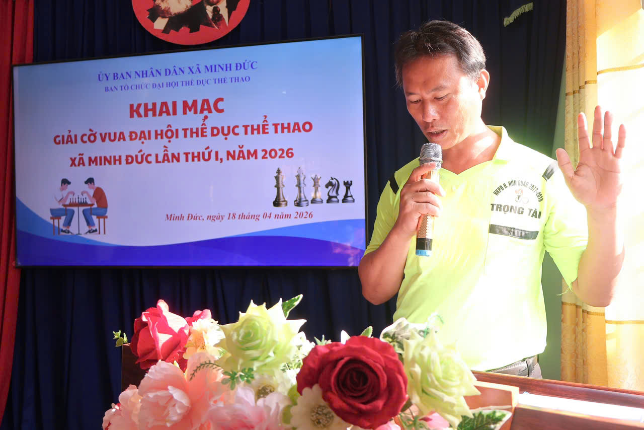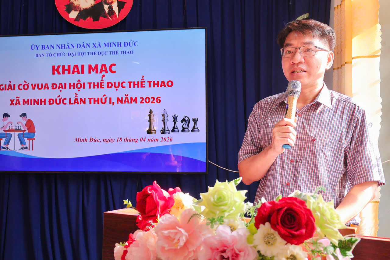 <p style="text-align:justify;"><span class="text-big">Sáng ngày 18/4/2026, tại Hội trường Trường THCS Minh Tâm, môn thi đấu cờ vua trong khuôn khổ Đại hội Thể dục Thể thao xã Minh Đức lần thứ I năm 2026 đã chính thức khai mạc trong không khí sôi nổi, hào hứng và đầy khí thế thi đua.</span><br /><span class="text-big">Đây là hoạt động thiết thực nhằm chào mừng kỷ niệm 51 năm Ngày Giải phóng miền Nam (30/4/1975 – 30/4/2026), 140 năm Ngày Quốc tế Lao động (01/5/1886 – 01/5/2026); đồng thời chào mừng thành công của cuộc bầu cử đại biểu Hội đồng nhân dân các cấp nhiệm kỳ 2026–2031 và hướng tới chào mừng tỉnh Đồng Nai trở thành thành phố trực thuộc Trung ương trong thời gian tới.</span><br /><span class="text-big">Tham dự lễ khai mạc có đồng chí Đoàn Thanh Lâm – Trưởng phòng Văn hóa &amp; Xã hội, đồng chí Lê Đức Hoàng – Giám đốc Trung tâm Dịch vụ Tổng hợp xã; và sự hiện diện của đông đảo vận động viên, cổ động viên đến từ các ấp, đơn vị trên địa bàn.</span><br /><span class="text-big">Là môn thi đấu mở màn của Đại hội, cờ vua đã góp phần tạo nên không khí phấn khởi, lan tỏa tinh thần rèn luyện thể dục thể thao sâu rộng trong nhân dân. Ngay sau lễ khai mạc, các kỳ thủ đã bước vào thi đấu với tinh thần nghiêm túc, trung thực và quyết tâm cao. Nhiều trận đấu diễn ra hấp dẫn, kịch tính với những nước cờ chiến thuật sắc bén, thể hiện tư duy logic, bản lĩnh và sự tập trung cao độ của các vận động viên.</span><br /><span class="text-big">Giải đấu được tổ chức nhằm tuyển chọn những vận động viên ưu tú, có thành tích nổi bật để tham gia Đại hội Thể dục Thể thao cấp tỉnh trong thời gian tới. Thông qua đó, góp phần phát hiện, bồi dưỡng các nhân tố tiềm năng, từng bước nâng cao chất lượng phong trào thể dục thể thao quần chúng tại địa phương.</span><br /><span class="text-big">Với sự chuẩn bị chu đáo cùng tinh thần thi đấu nhiệt huyết của các vận động viên, môn cờ vua hứa hẹn sẽ mang đến nhiều trận đấu hấp dẫn, những kết quả đáng ghi nhận, góp phần vào thành công chung của Đại hội Thể dục Thể thao xã Minh Đức lần thứ I năm 2026.</span></p><figure class="image"><img style="aspect-ratio:1280/854;" src="https://minhduc.dongnai.gov.vn/uploads/minhduc/news/duc-hoang/z7737740205875_6598af23b2814cd902777474ffc217c2.jpg" width="1280" height="854" /></figure><figure class="image"><img style="aspect-ratio:1280/854;" src="https://minhduc.dongnai.gov.vn/uploads/minhduc/news/duc-hoang/z7737740213775_969bf4bc276e4a96d47e2c3179b0e947.jpg" width="1280" height="854" /></figure><figure class="image"><img style="aspect-ratio:1280/854;" src="https://minhduc.dongnai.gov.vn/uploads/minhduc/news/duc-hoang/z7737740211340_07a1ec5c851ab6ae92ab935d2e71d5bc.jpg" width="1280" height="854" /></figure><figure class="image"><img style="aspect-ratio:1280/854;" src="https://minhduc.dongnai.gov.vn/uploads/minhduc/news/duc-hoang/z7737740219807_777363d105ec4976cb265a79e9a85a93.jpg" width="1280" height="854" /></figure><figure class="image"><img style="aspect-ratio:1280/854;" src="https://minhduc.dongnai.gov.vn/uploads/minhduc/news/duc-hoang/z7737740227758_a6e76e7abcee993bdc97c94e619797dc.jpg" width="1280" height="854" /></figure><figure class="image"><img style="aspect-ratio:1280/858;" src="https://minhduc.dongnai.gov.vn/uploads/minhduc/news/duc-hoang/z7737740217005_8a30c7aab3955bd08397694c9e73f93a.jpg" width="1280" height="858" /></figure><figure class="image"><img style="aspect-ratio:1280/1026;" src="https://minhduc.dongnai.gov.vn/uploads/minhduc/news/duc-hoang/z7737740222583_822edf1a40df2cd62765ea59c346c3f6.jpg" width="1280" height="1026" /></figure><figure class="image"><img style="aspect-ratio:1280/854;" src="https://minhduc.dongnai.gov.vn/uploads/minhduc/news/duc-hoang/z7737740231014_69c2ecb0be85f2078999130ff50f7166.jpg" width="1280" height="854" /></figure><figure class="image"><img style="aspect-ratio:1280/854;" src="https://minhduc.dongnai.gov.vn/uploads/minhduc/news/duc-hoang/z7737740234479_fa2c26874688b12edba670db81d7e653.jpg" width="1280" height="854" /></figure><figure class="image"><img style="aspect-ratio:1280/854;" src="https://minhduc.dongnai.gov.vn/uploads/minhduc/news/duc-hoang/z7737740234624_5d345f5dea04b074842d59405a7dca54.jpg" width="1280" height="854" /></figure><figure class="image"><img style="aspect-ratio:1280/854;" src="https://minhduc.dongnai.gov.vn/uploads/minhduc/news/duc-hoang/z7737740241595_3d22e86c82bca9c0d88c777488eeaaa1.jpg" width="1280" height="854" /></figure><figure class="image"><img style="aspect-ratio:1280/854;" src="https://minhduc.dongnai.gov.vn/uploads/minhduc/news/duc-hoang/z7737740241745_ed1eafd0f79041d4b376847c6ed745f4.jpg" width="1280" height="854" /></figure><figure class="image"><img style="aspect-ratio:1280/978;" src="https://minhduc.dongnai.gov.vn/uploads/minhduc/news/duc-hoang/z7737740246318_8f24e89d4bdba0aba7afcf730ea0ceec.jpg" width="1280" height="978" /></figure><figure class="image"><img style="aspect-ratio:1280/854;" src="https://minhduc.dongnai.gov.vn/uploads/minhduc/news/duc-hoang/z7737740248178_754ad6e7aae7e54eb0e041b76ab7b84d.jpg" width="1280" height="854" /></figure><figure class="image"><img style="aspect-ratio:1280/854;" src="https://minhduc.dongnai.gov.vn/uploads/minhduc/news/duc-hoang/z7737740247302_671d8929f4d063b4bfa2f7224534aa63.jpg" width="1280" height="854" /></figure><figure class="image"><img style="aspect-ratio:1280/854;" src="https://minhduc.dongnai.gov.vn/uploads/minhduc/news/