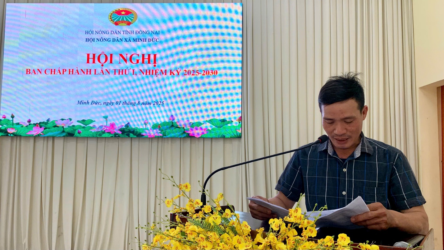 Hội nghị lần thứ I Ban Chấp hành Hội Nông dân xã Minh Đức, nhiệm kỳ 2025–2030 đã diễn ra nghiêm túc, trách nhiệm và thành công tốt đẹp. Việc thông qua các quyết định quan trọng cùng sự phân công nhiệm vụ rõ ràng sẽ là cơ sở để Hội Nông dân xã hoạt động hiệu quả, đúng định hướng, đáp ứng yêu cầu, nhiệm vụ trong tình hình mới.