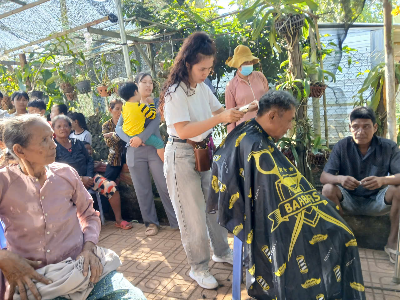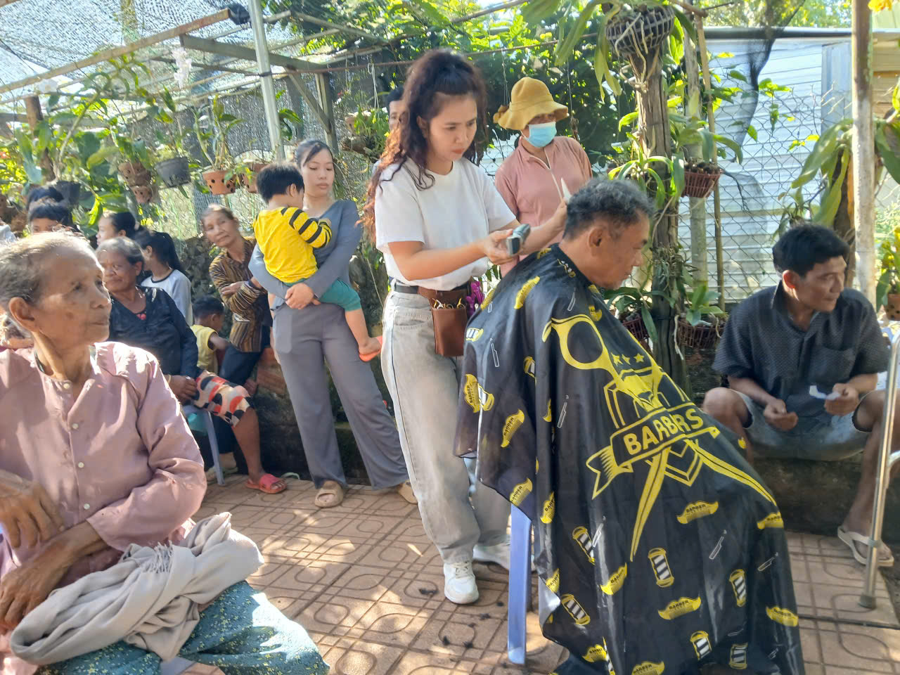 ✦ Bên cạnh hoạt động trao quà, đoàn còn thực hiện cắt tóc miễn phí cho người dân, thể hiện tinh thần tương thân tương ái và trách nhiệm cộng đồng, lan tỏa nét đẹp nhân ái trong đời sống xã hội.