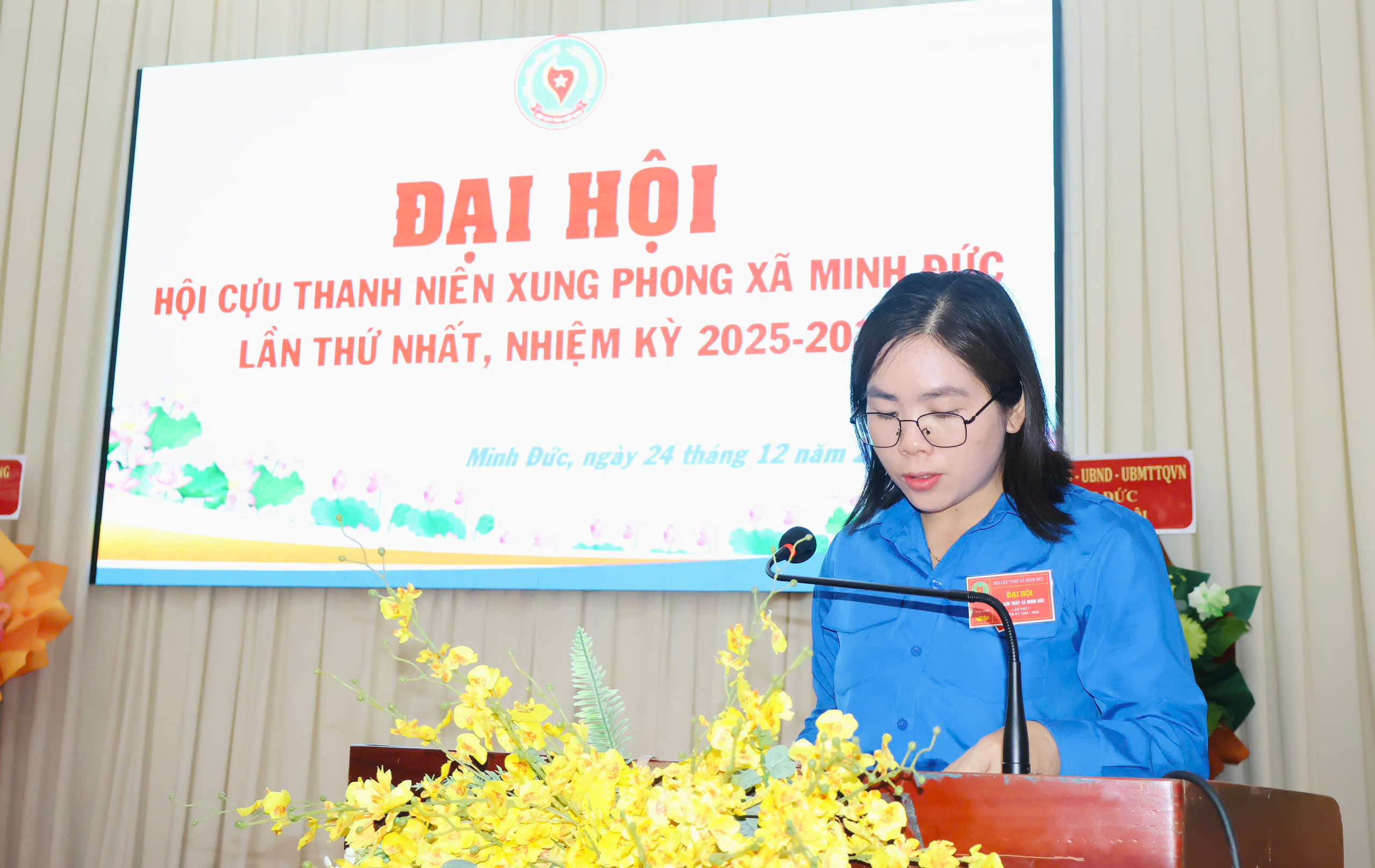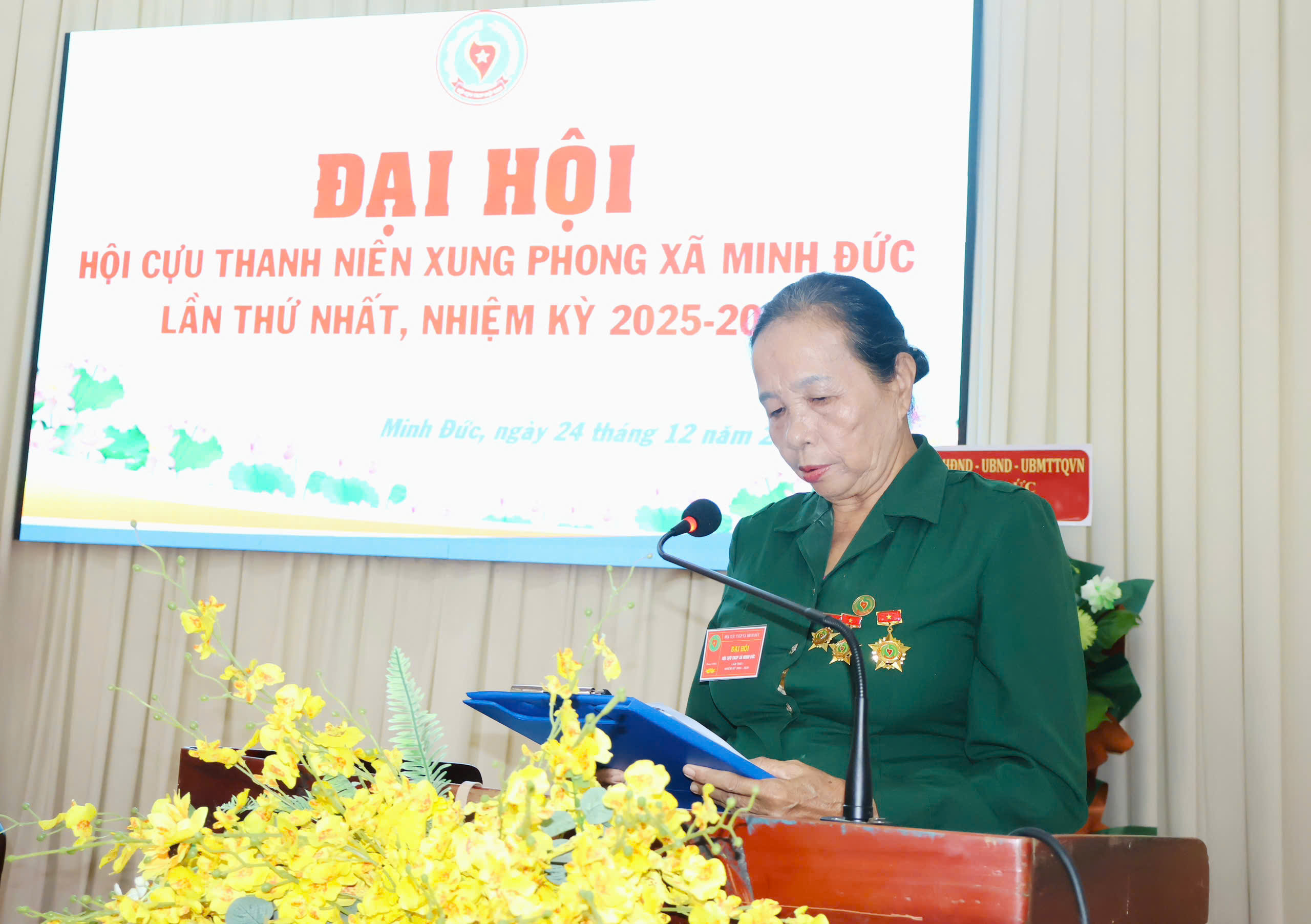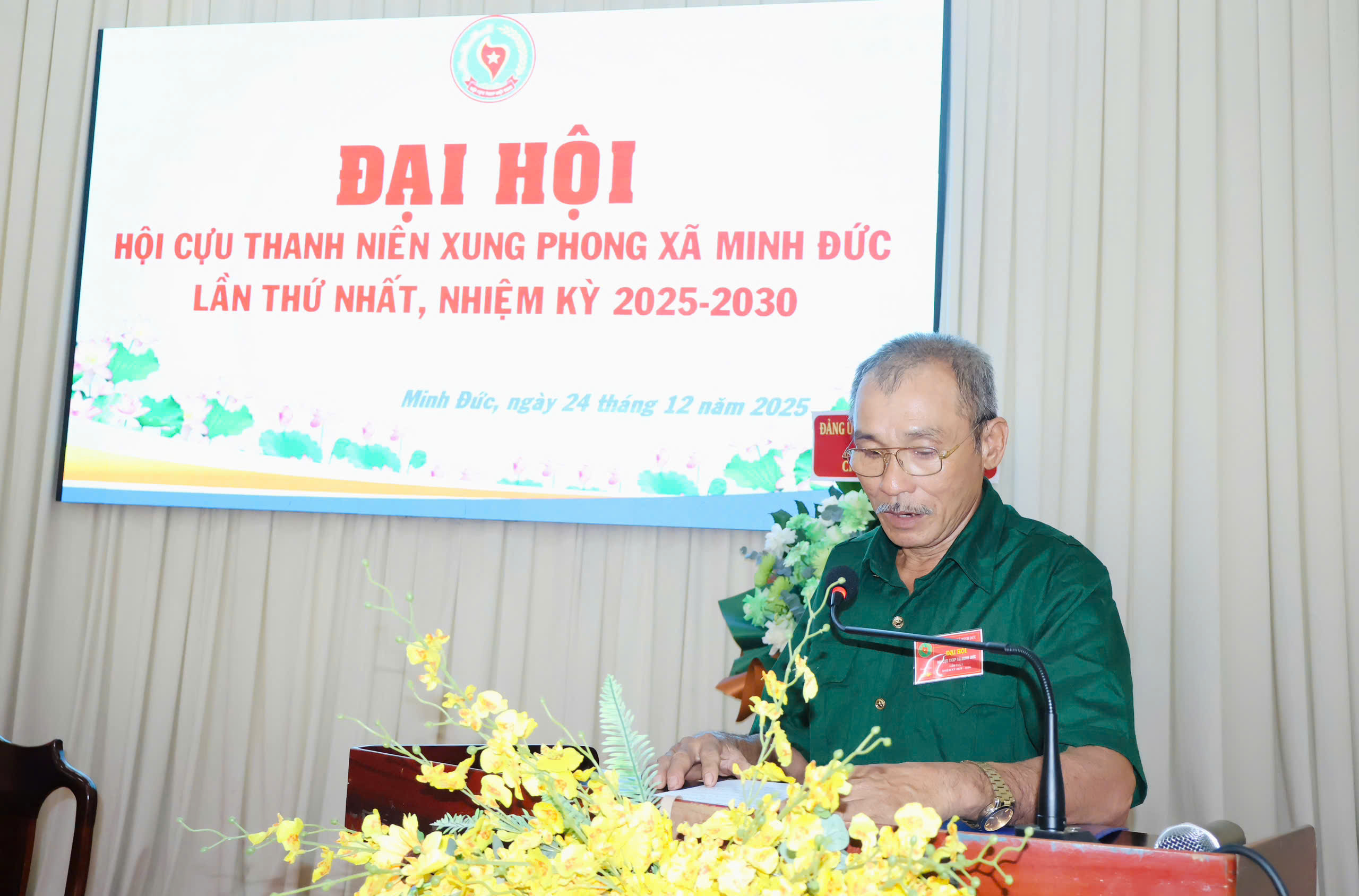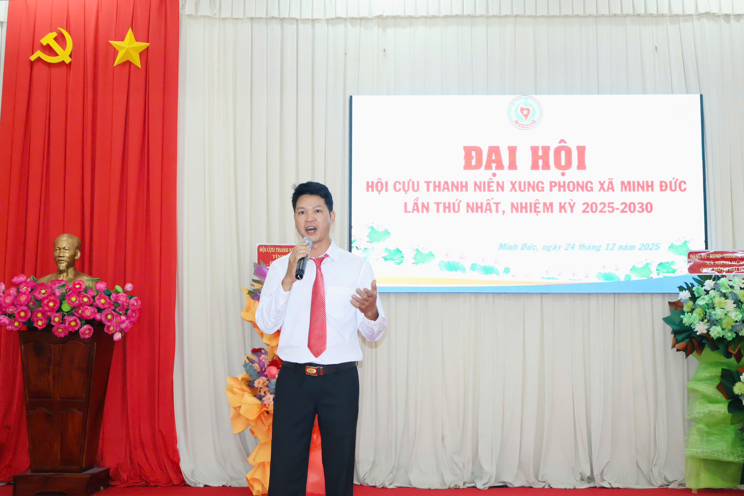 Phát biểu chỉ đạo tại Đại hội, lãnh đạo Hội Cựu TNXP tỉnh và lãnh đạo xã Minh Đức ghi nhận, biểu dương những kết quả Hội đạt được trong thời gian qua; đồng thời đề nghị Ban Chấp hành Hội khóa I tiếp tục củng cố tổ chức, đổi mới nội dung và phương thức hoạt động, phát huy phong trào “Cựu TNXP nêu gương sáng”, chăm lo đời sống hội viên, tăng cường giáo dục truyền thống cho thế hệ trẻ và đẩy mạnh phối hợp với các ngành, đoàn thể nhằm nâng cao hiệu quả hoạt động của Hội trong tình hình mới.