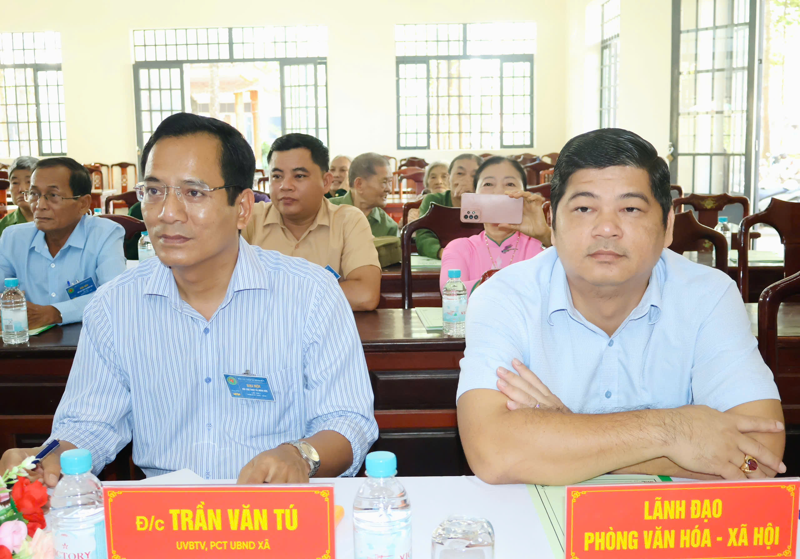 Đến dự Đại hội có ông Nguyễn Minh Mẫn – Phó Chủ tịch Hội Cựu TNXP tỉnh; đồng chí Trần Văn Phương – Bí thư Đảng ủy xã, Chủ tịch HĐND xã; đồng chí Lê Xuân Thắng – Ủy viên Ban Thường vụ Đảng ủy, Phó Chủ tịch HĐND xã; đồng chí Nguyễn Thị Quý – Ủy viên Ban Thường vụ Đảng ủy, Chủ tịch Ủy ban MTTQ Việt Nam xã; đồng chí Trần Văn Tú – Ủy viên Ban Thường vụ Đảng ủy, Phó Chủ tịch UBND xã; cùng các đồng chí trong Ban Thường trực Ủy ban MTTQ Việt Nam xã, lãnh đạo các đoàn thể, hội quần chúng, bí thư chi bộ các ấp và 31 hội viên Hội Cựu TNXP trên địa bàn xã.