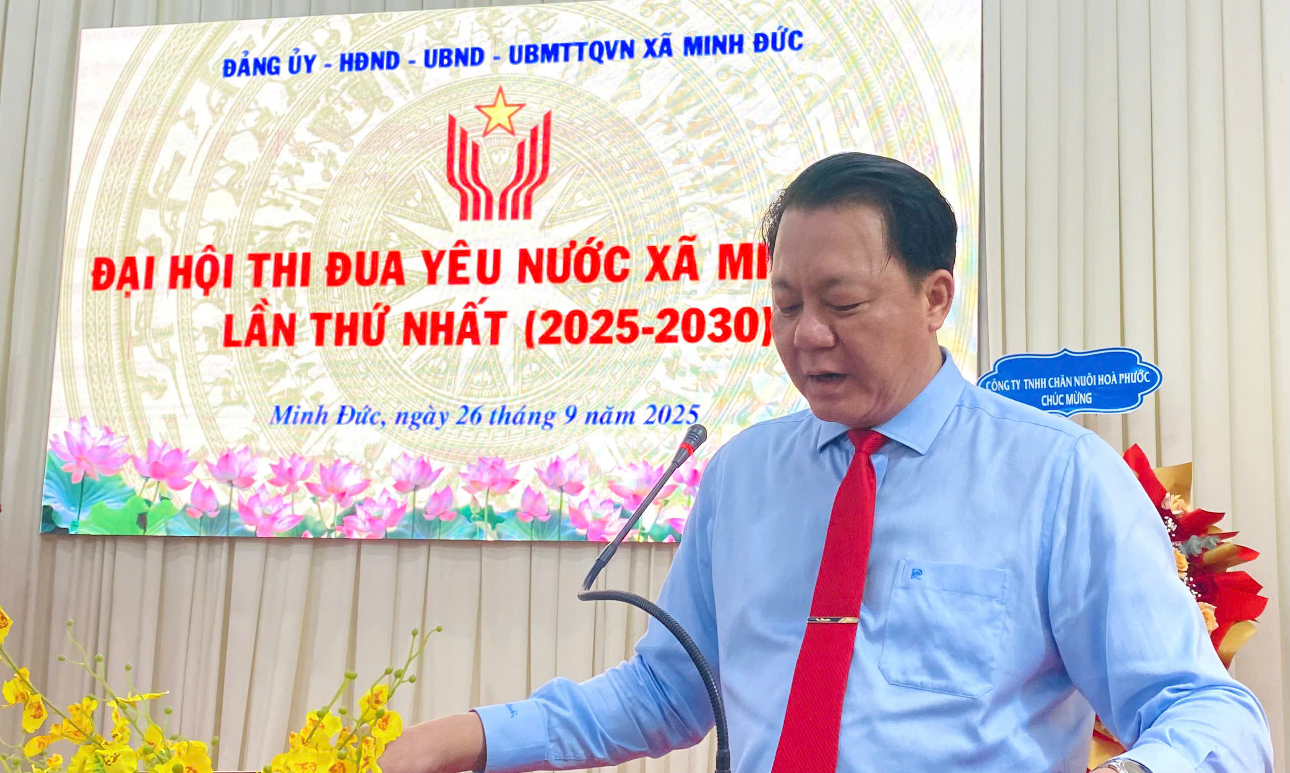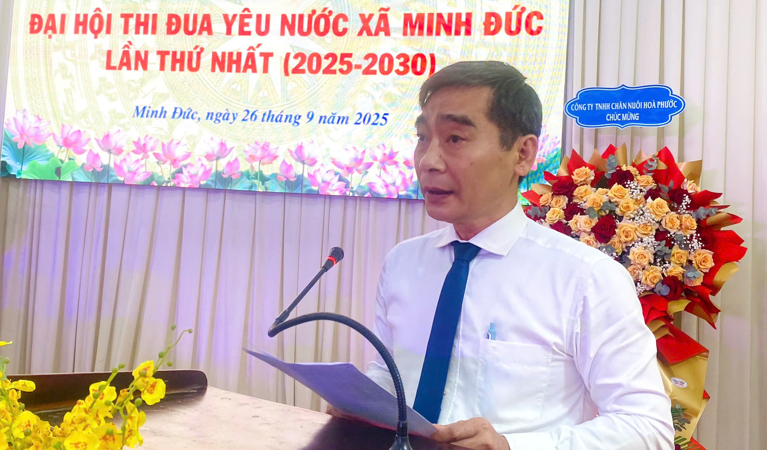 “Thi đua là yêu nước, yêu nước thì phải thi đua. Đại hội là dấu mốc quan trọng, vừa tổng kết thành tựu, hạn chế giai đoạn 2020-2025, vừa đề ra phương hướng, nhiệm vụ cho giai đoạn mới, hướng tới xây dựng xã Minh Đức trở thành nông thôn mới nâng cao, giàu đẹp và văn minh.”