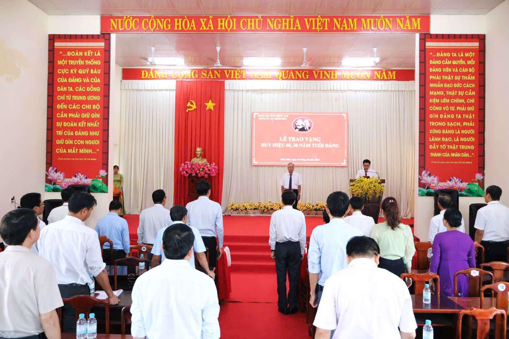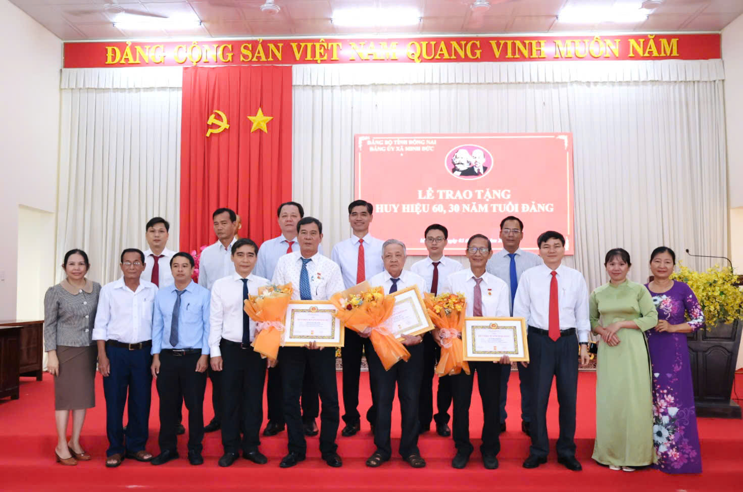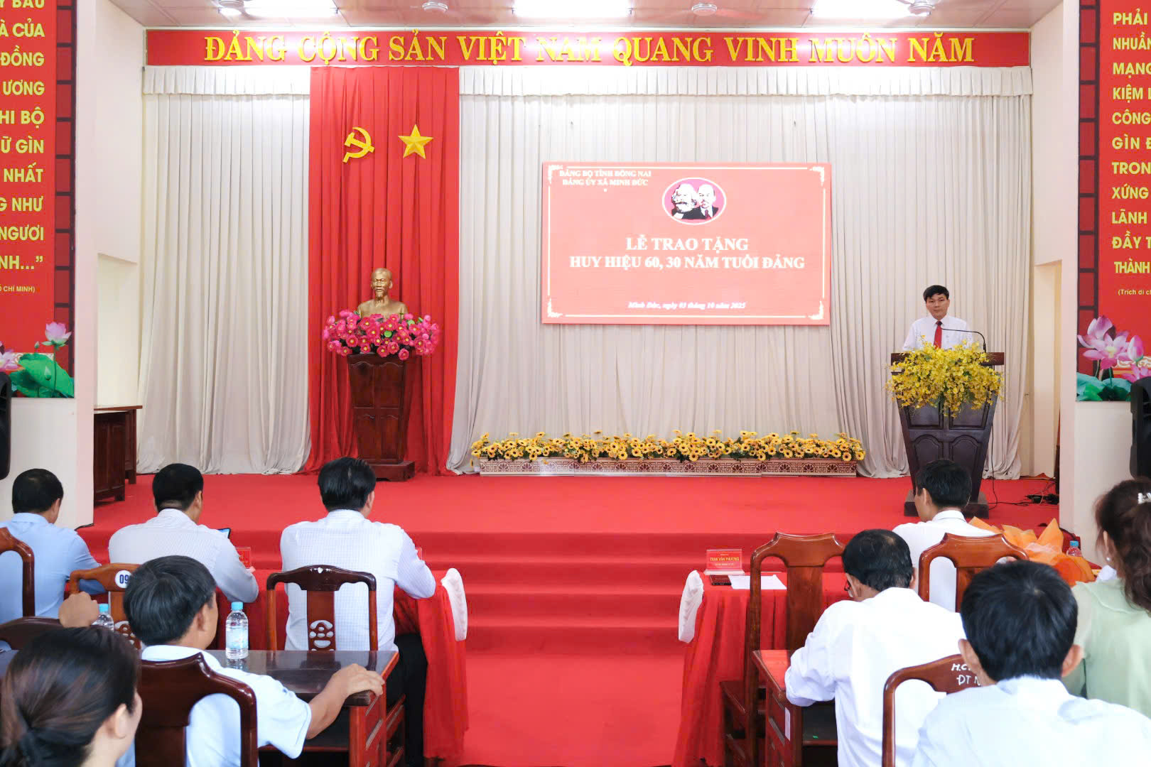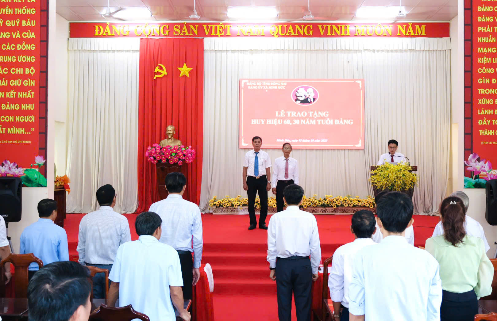 Sáng ngày 03/10/2025 Đảng ủy xã Minh Đức long trọng tổ chức Lễ trao tặng Huy hiệu Đảng đợt 02/9/2025 tại hội trường UBND xã.