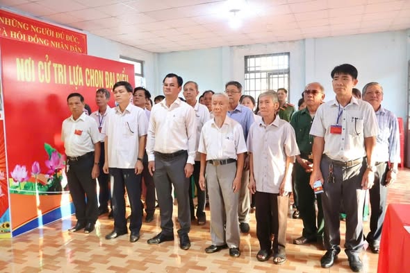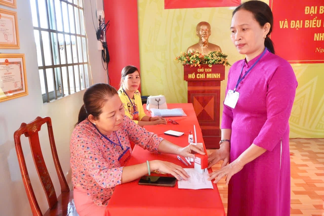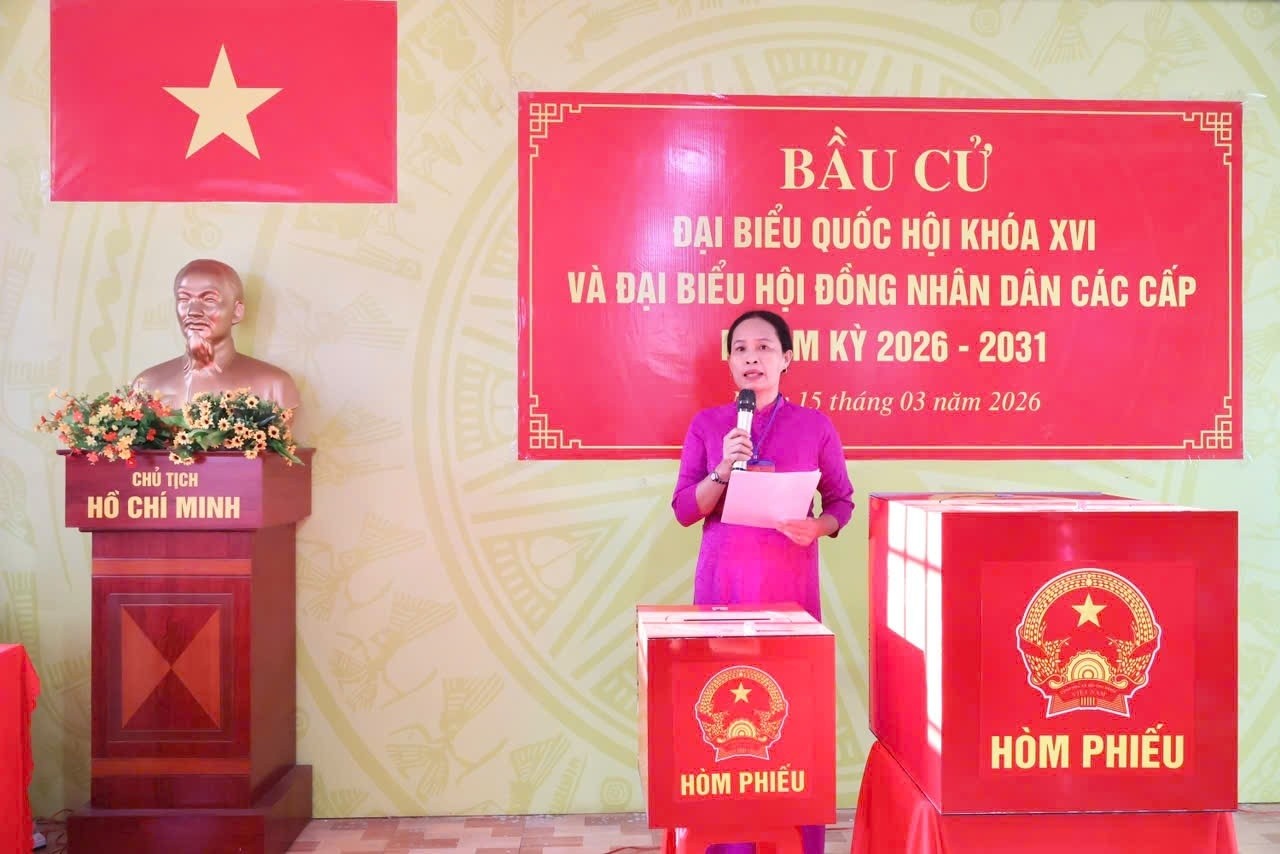 Khu vực bỏ phiếu được trang trí trang trọng với cờ Tổ quốc, băng rôn, khẩu hiệu tuyên truyền, tạo nên không khí thiêng liêng và rộn ràng của ngày hội lớn. Công tác chuẩn bị cho cuộc bầu cử được triển khai chu đáo, đúng quy định; danh sách cử tri, danh sách ứng cử viên và các tài liệu phục vụ bầu cử được niêm yết đầy đủ, công khai, bảo đảm để cử tri thuận tiện theo dõi và thực hiện quyền lựa chọn của mình.