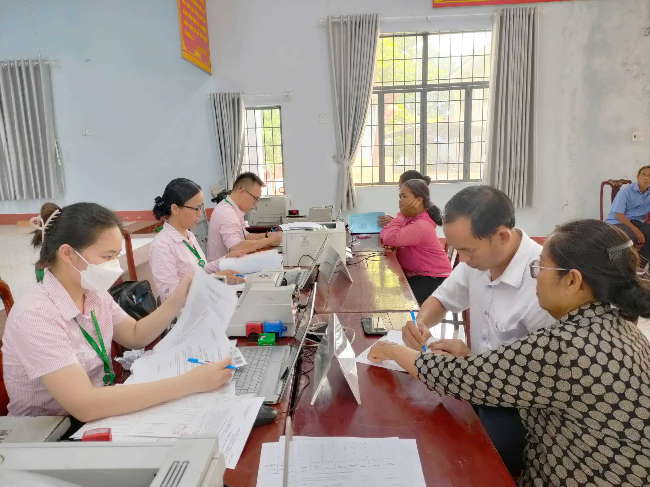 PGD NHCSXH Hớn Quản giải ngân tại Điểm giao dịch xã