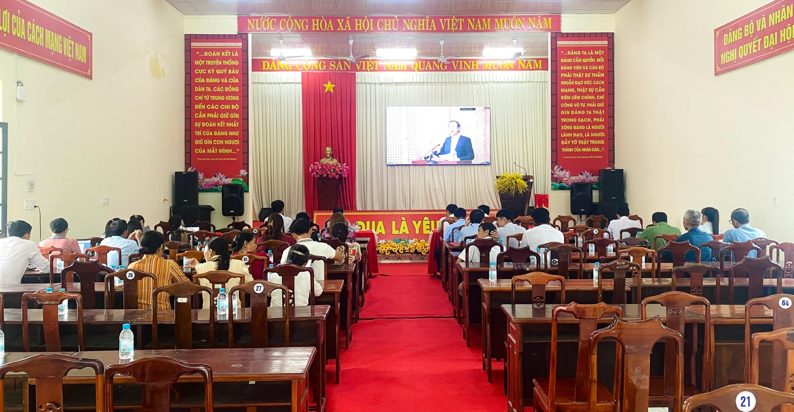 ✨ Tại điểm cầu xã Minh Đức có sự tham gia của đồng chí Lưu Quốc Nhật – Phó Bí thư Thường trực Đảng ủy xã; đồng chí Lê Thanh Hoàng – Ủy viên Ban Thường vụ, Trưởng Ban xây dựng Đảng; đồng chí Hoàng Ngọc Giang – Phó Chủ tịch UBND xã; đồng chí Lê Xuân Thắng – Phó Chủ tịch HĐND xã, cùng các đồng chí Ủy viên Ban Thường vụ, Ban Chấp hành, lãnh đạo các phòng, ban, đơn vị của xã; Bí thư các chi, đảng bộ trực thuộc; Trưởng ấp, Ban công tác Mặt trận; Ban giám hiệu các trường học trên địa bàn xã.