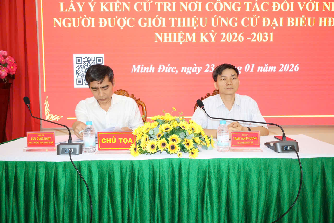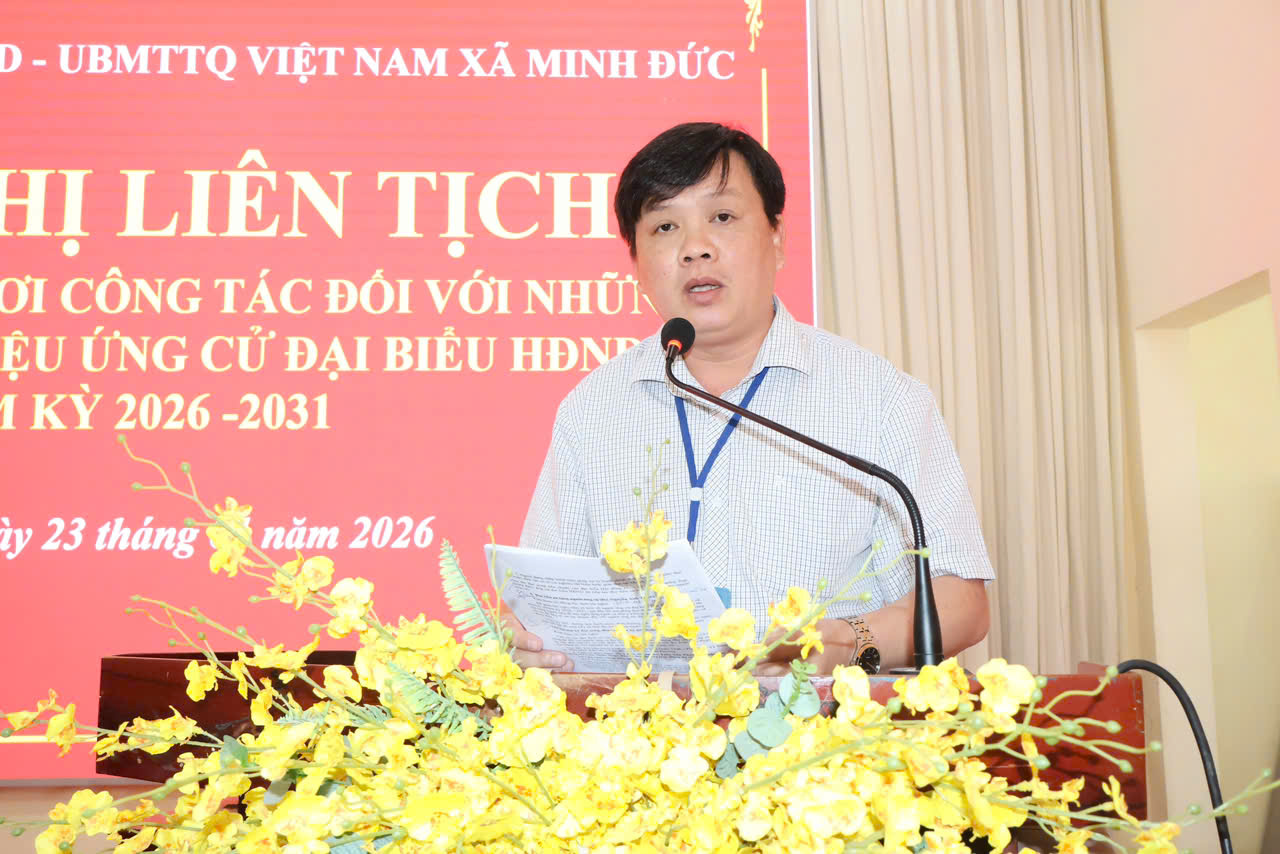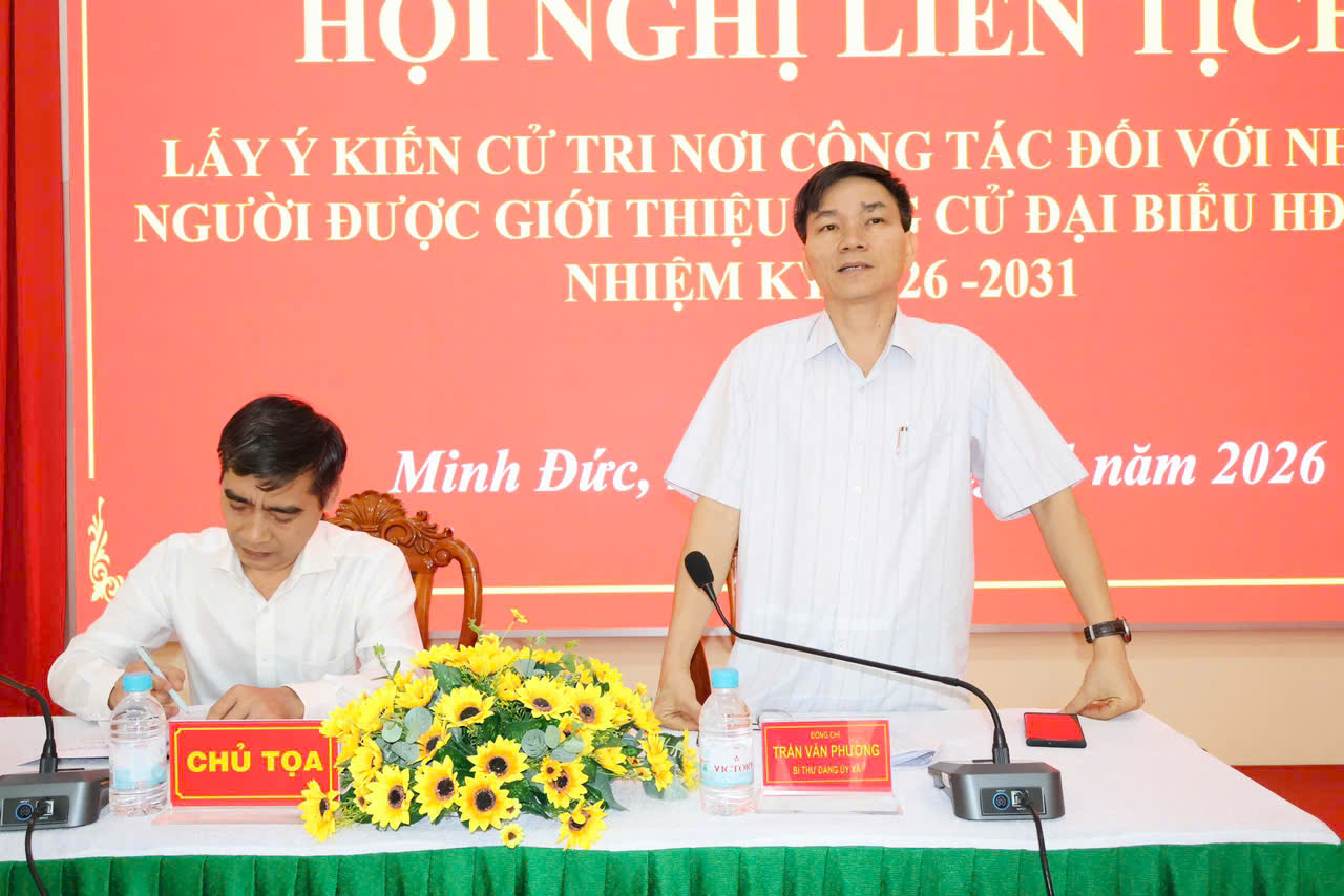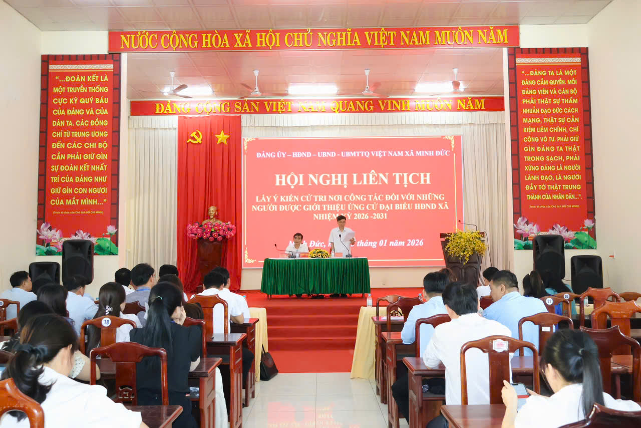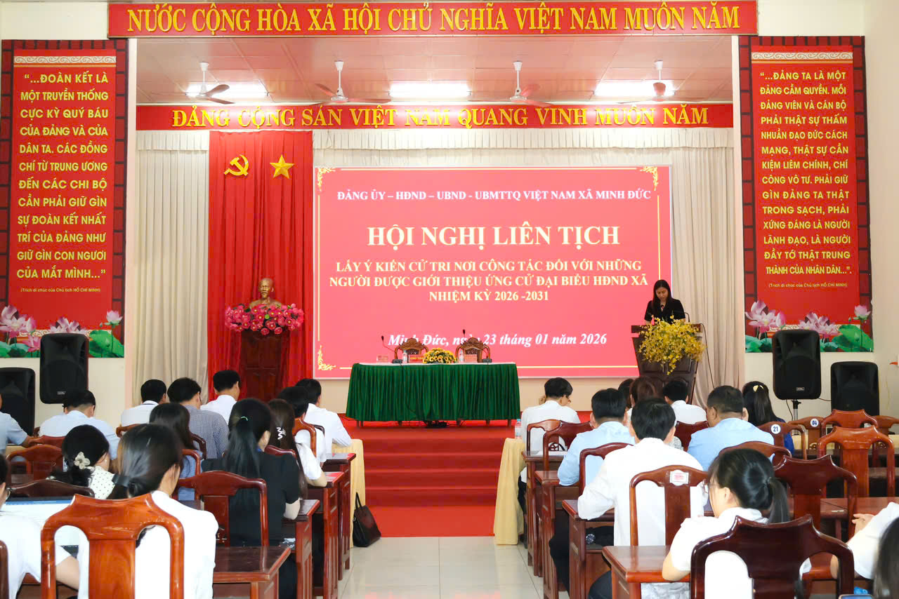 Sáng 23-1, Đảng ủy-HĐND-UBND-Ủy ban MTTQ xã Minh Đức tổ chức Hội nghị liên tịch lấy ý kiến cử tri nơi công tác đối với người được dự kiến giới thiệu ứng cử Đại biểu HĐND xã, nhiệm kỳ 2026-2031.