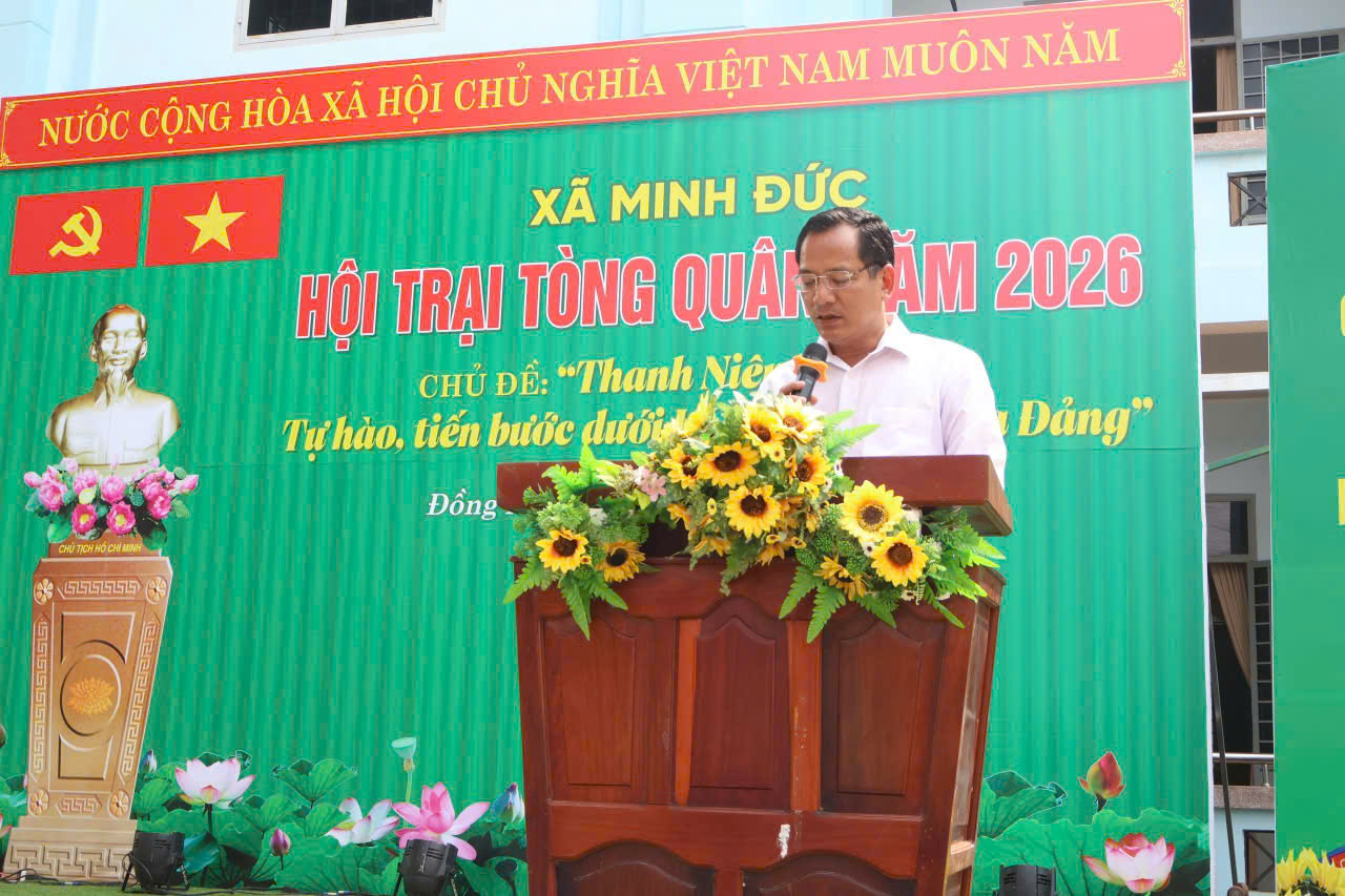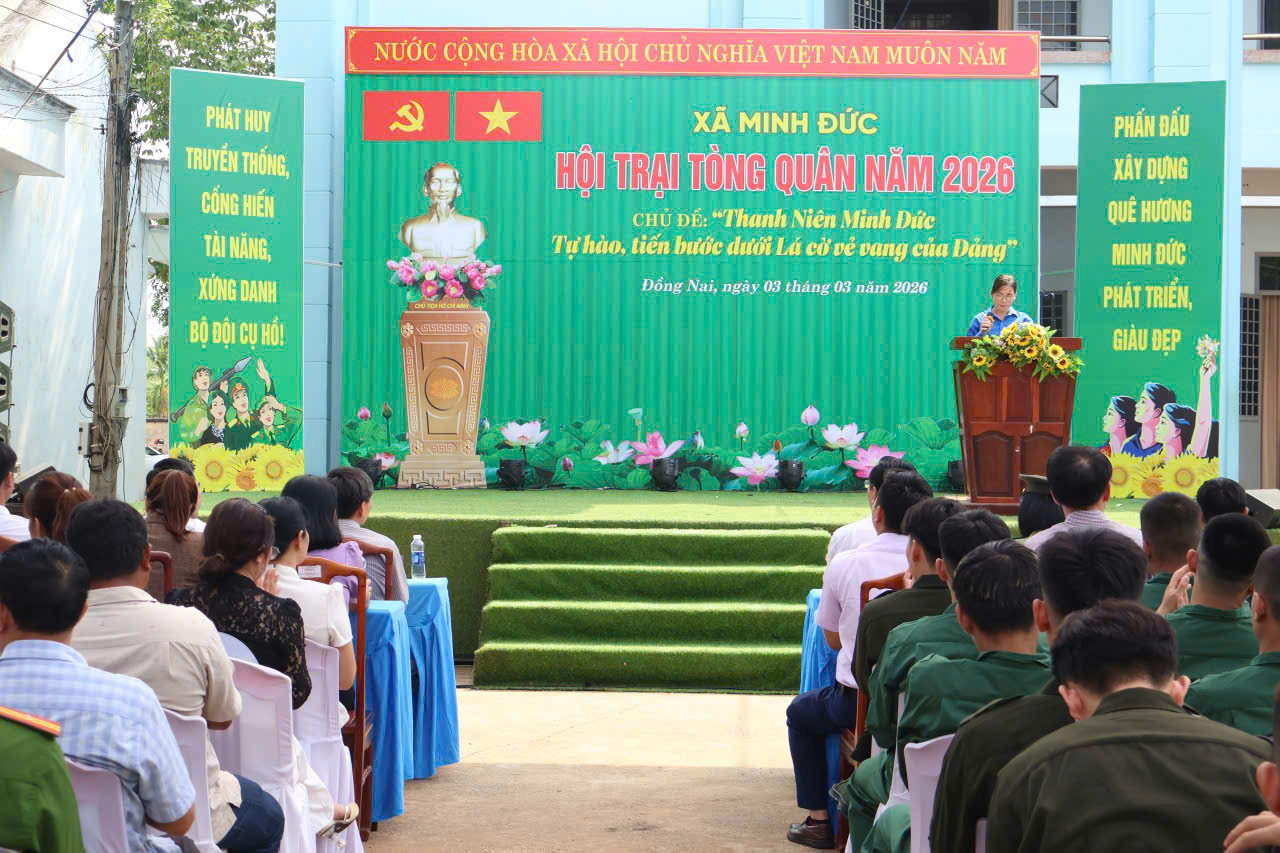 Chiều ngày 03/3/2026, UBND xã Minh Đức long trọng tổ chức khai mạc Hội trại tòng quân lần thứ I, năm 2026 với chủ đề: “Thanh niên Minh Đức tự hào, tiến bước dưới Lá cờ vẻ vang của Đảng”. Đây là hoạt động chính trị - xã hội có ý nghĩa sâu sắc, thể hiện sự quan tâm, chăm lo của cấp ủy, chính quyền và nhân dân địa phương đối với thanh niên trước khi lên đường thực hiện nghĩa vụ thiêng liêng với Tổ quốc.