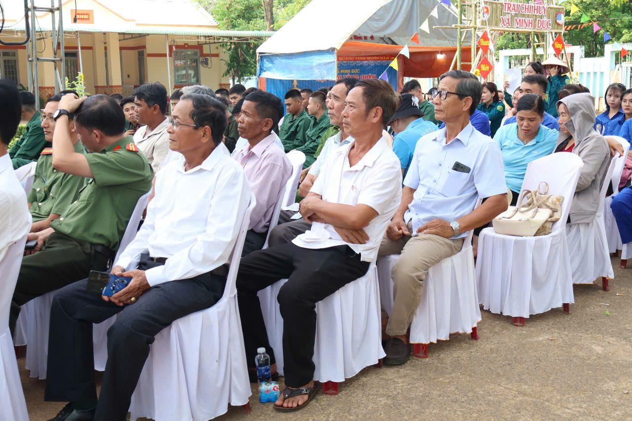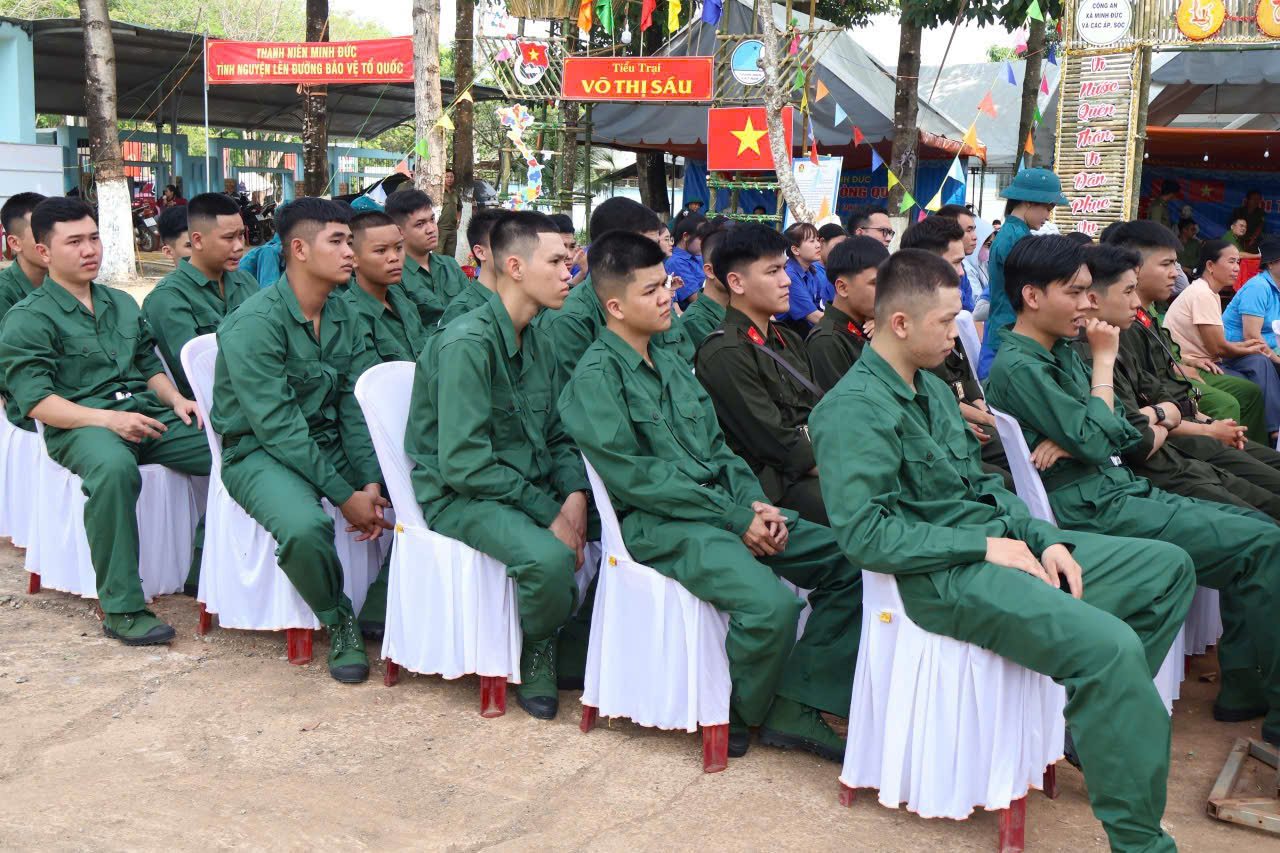 Phát biểu khai mạc, đại diện lãnh đạo UBND xã Minh Đức nhấn mạnh: Trong bối cảnh tình hình thế giới và khu vực còn tiềm ẩn nhiều yếu tố phức tạp, nhiệm vụ xây dựng và bảo vệ vững chắc Tổ quốc Việt Nam xã hội chủ nghĩa đặt ra yêu cầu ngày càng cao đối với lực lượng vũ trang nhân dân. Mỗi thanh niên trúng tuyển nhập ngũ hôm nay không chỉ là niềm tự hào của gia đình mà còn là niềm tin, kỳ vọng của Đảng bộ và nhân dân xã nhà. Lãnh đạo xã tin tưởng rằng các tân binh sẽ phát huy truyền thống quê hương, nêu cao ý chí quyết tâm, tích cực học tập, rèn luyện, chấp hành nghiêm kỷ luật Quân đội, xứng danh truyền thống “Bộ đội Cụ Hồ”.