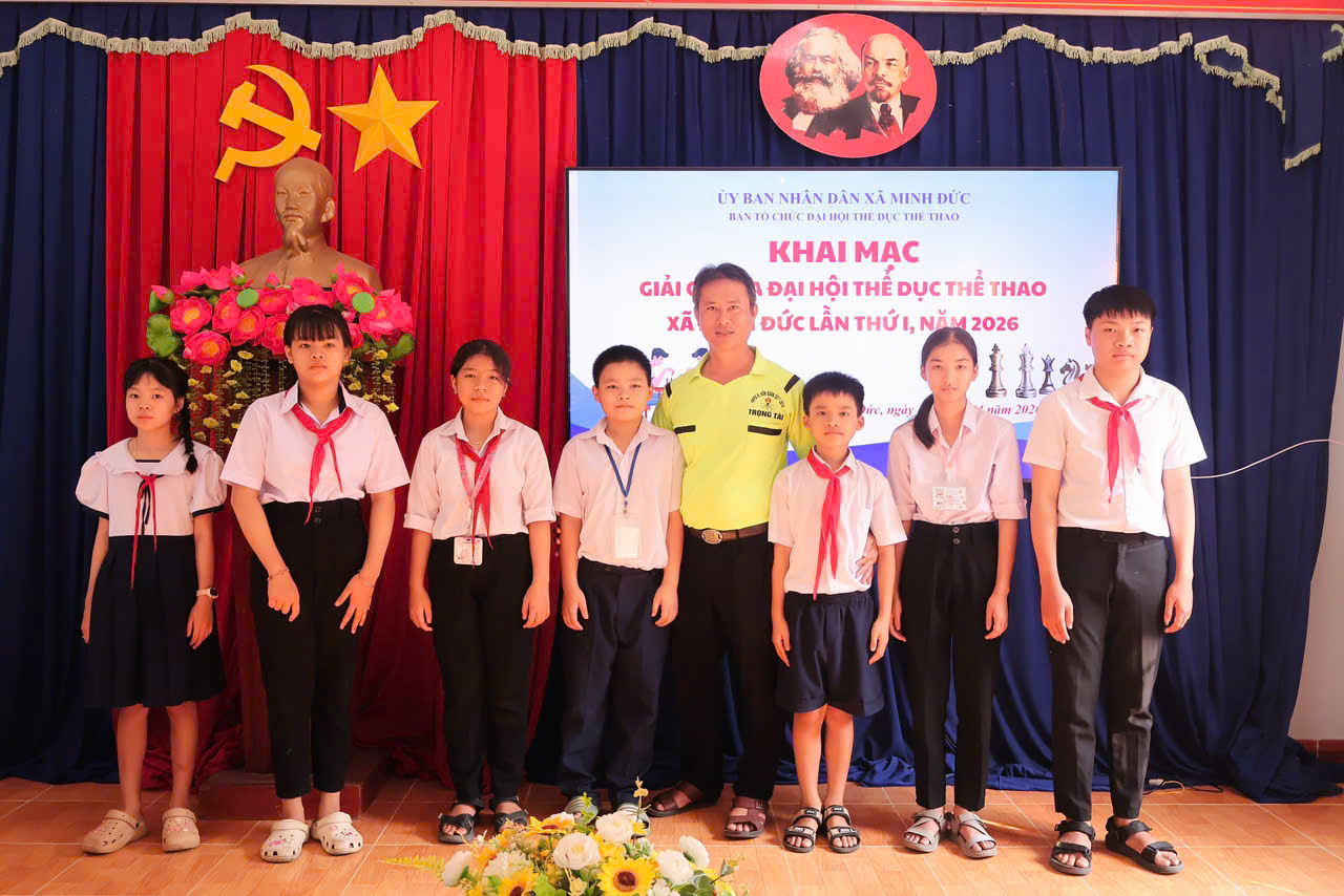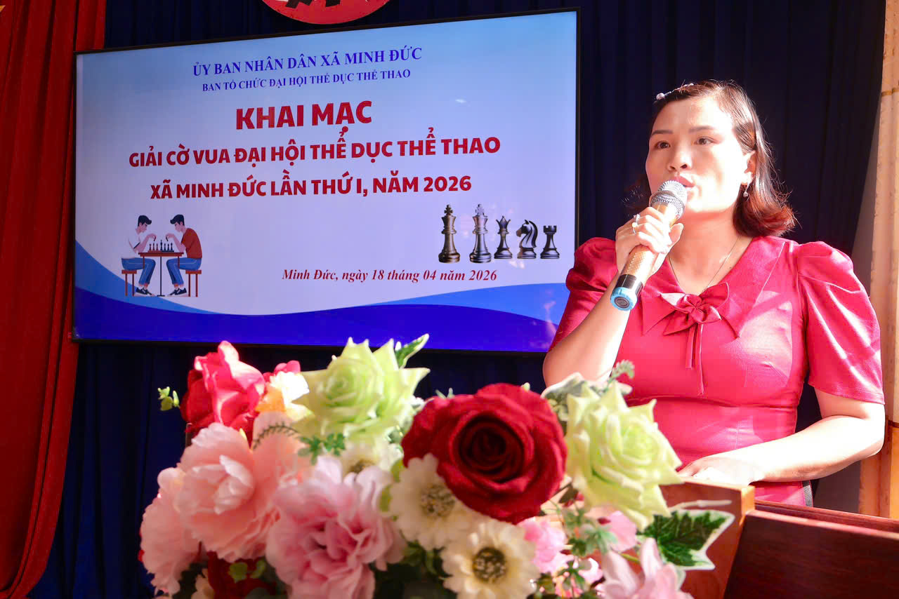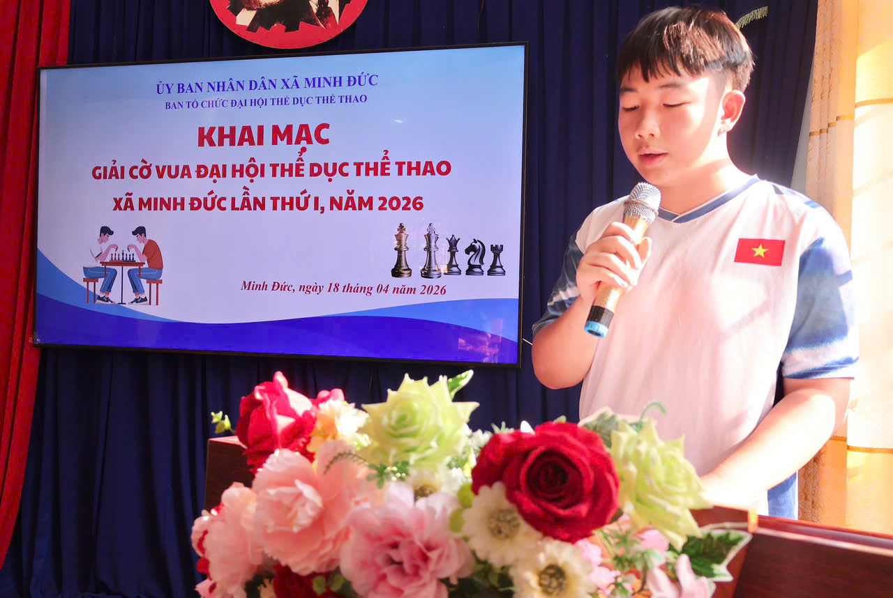 Sáng ngày 18/4/2026, tại Hội trường Trường THCS Minh Tâm, môn thi đấu cờ vua trong khuôn khổ Đại hội Thể dục Thể thao xã Minh Đức lần thứ I năm 2026 đã chính thức khai mạc trong không khí sôi nổi, hào hứng và đầy khí thế thi đua.