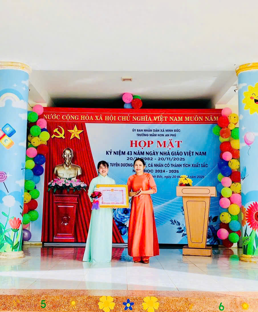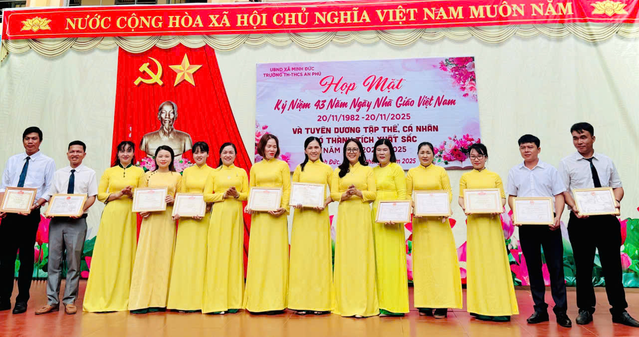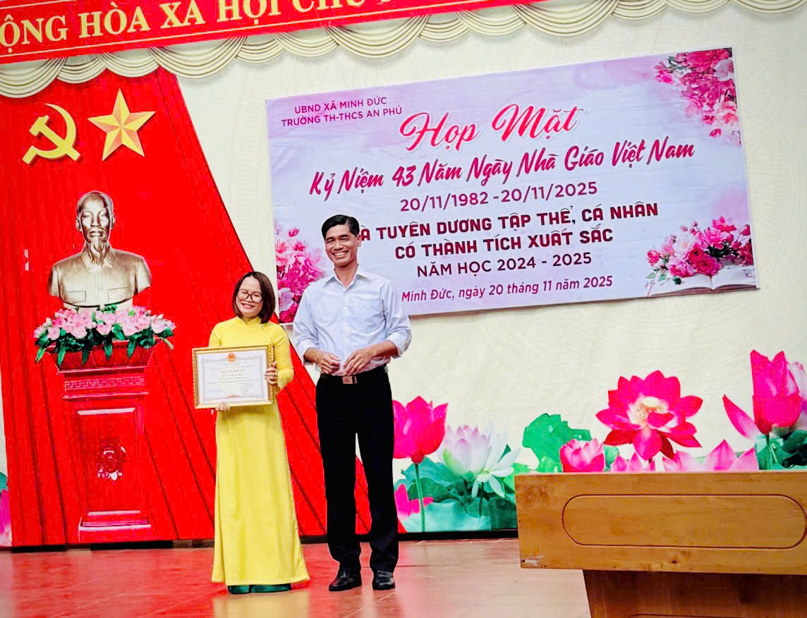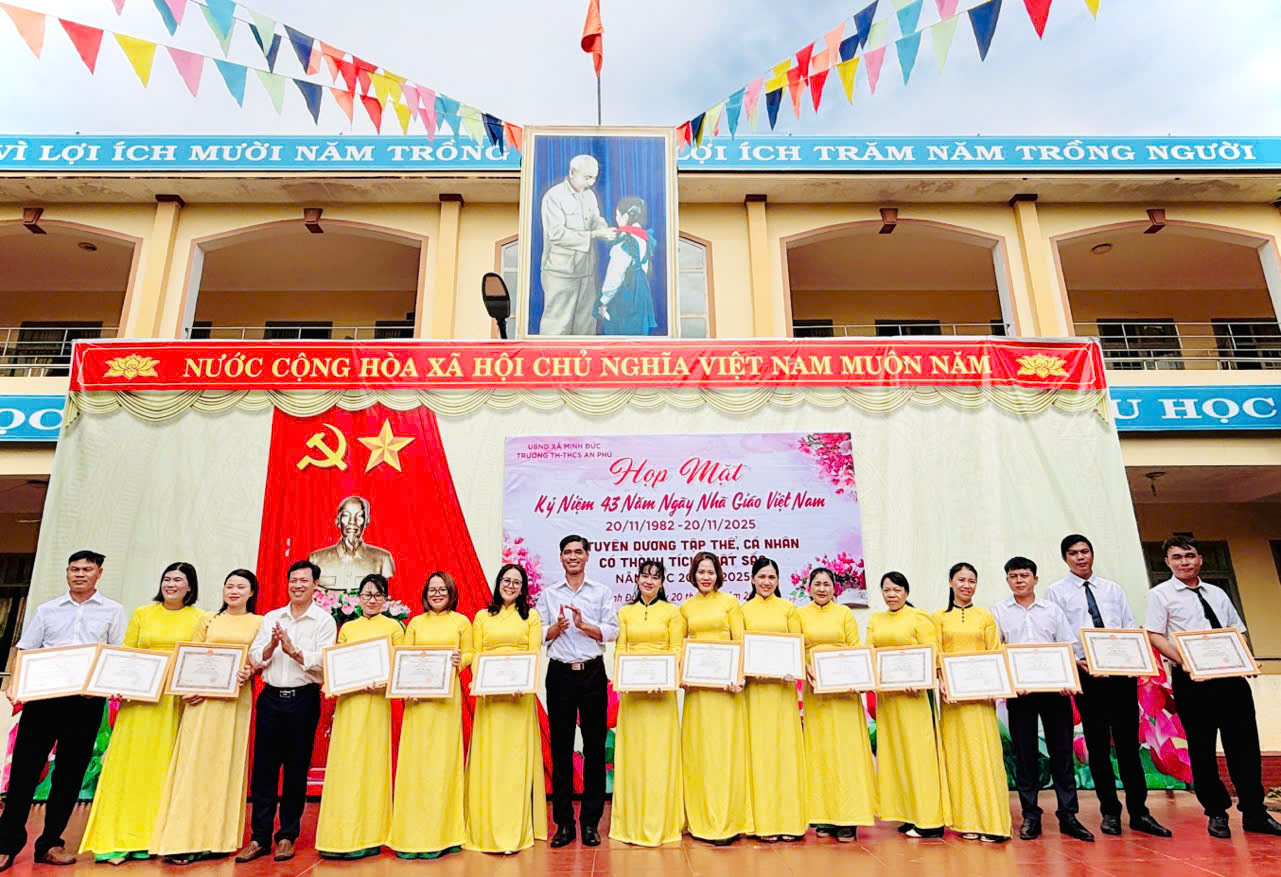 ⭐ Nhằm kịp thời ghi nhận những nỗ lực của các tập thể và cá nhân, lãnh đạo xã Minh Đức đã trao giấy khen cho các tập thể và cá nhân có thành tích xuất sắc trong phong trào thi đua của ngành giáo dục năm học vừa qua. Đây là sự khích lệ đầy ý nghĩa đối với đội ngũ thầy cô giáo trong hành trình cống hiến cho sự nghiệp trồng người.