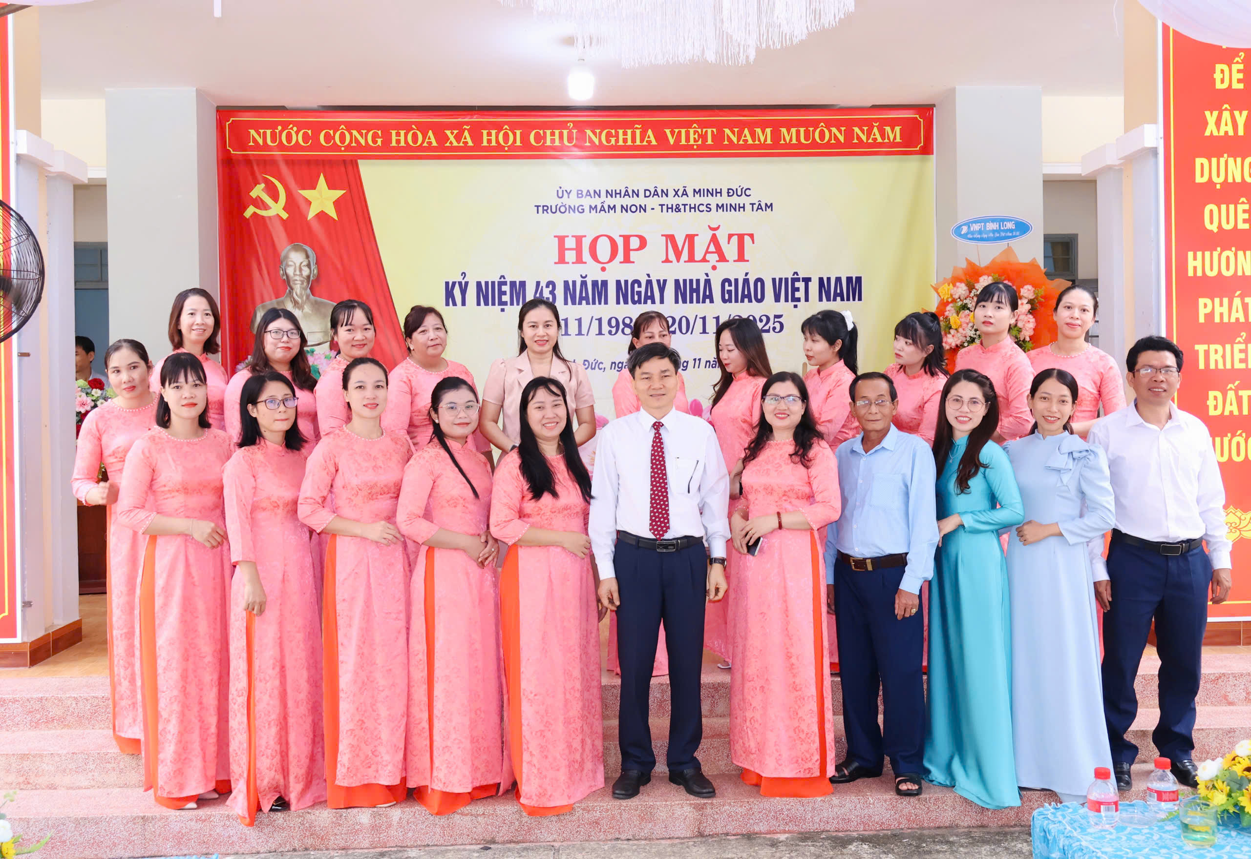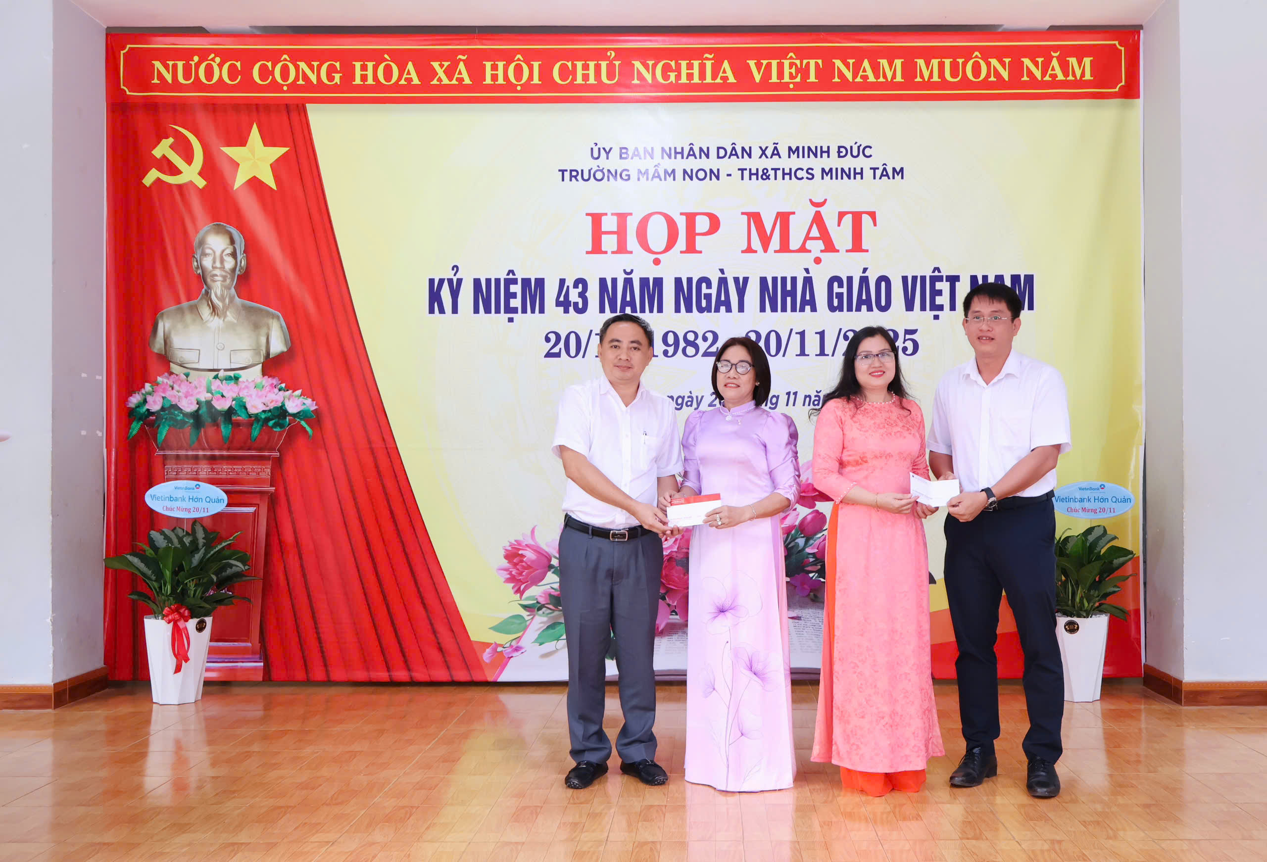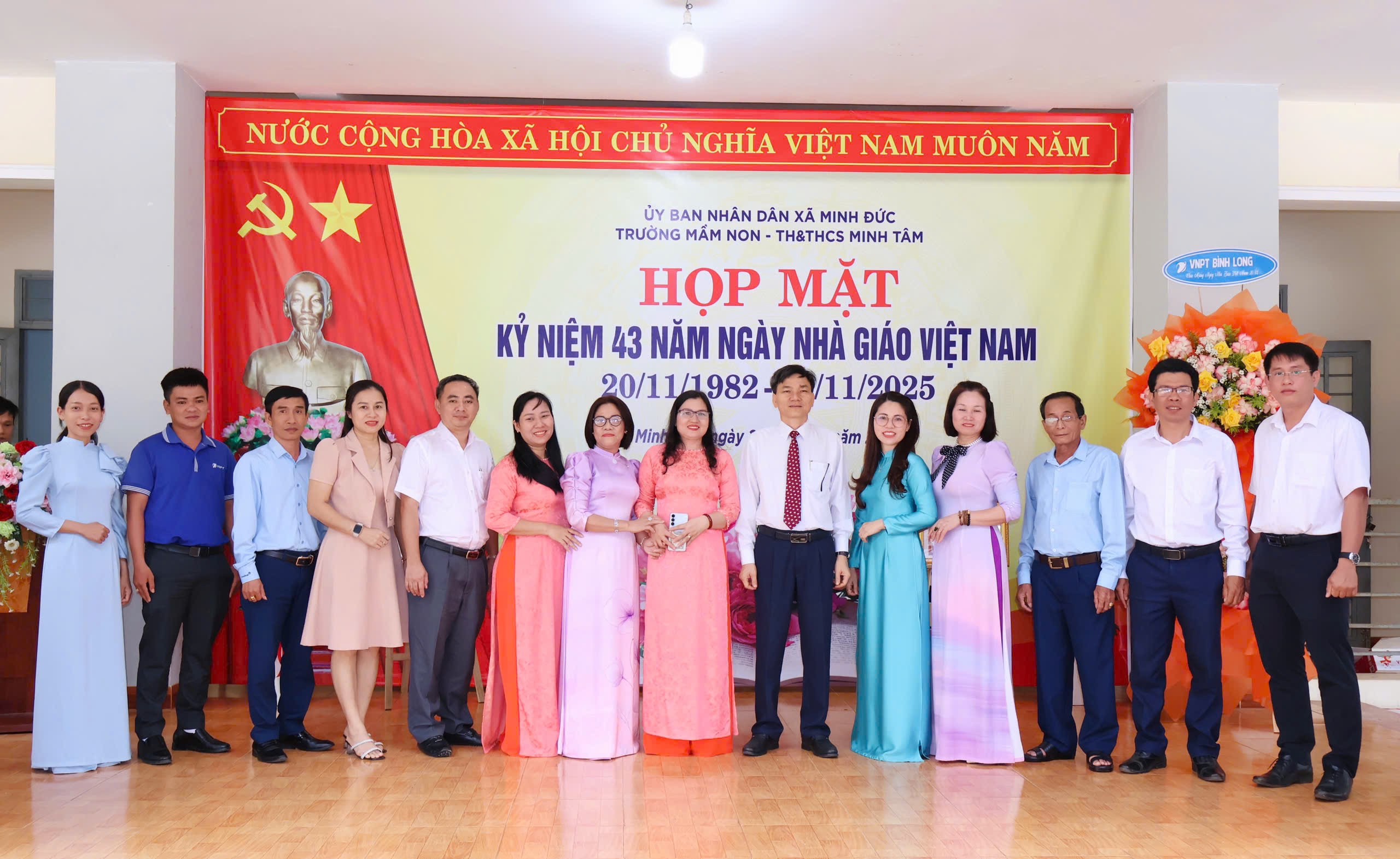 Hòa trong không khí tri ân sâu lắng của Ngày Nhà giáo Việt Nam 20/11 – ngày tôn vinh những cống hiến bền bỉ và cao quý của đội ngũ thầy cô giáo, sáng 20/11, đoàn lãnh đạo Đảng ủy, HĐND, UBND và Ủy ban MTTQ Việt Nam xã Minh Đức đã tổ chức nhiều đoàn đến thăm và chúc mừng các trường học, cơ sở giáo dục trên địa bàn xã.