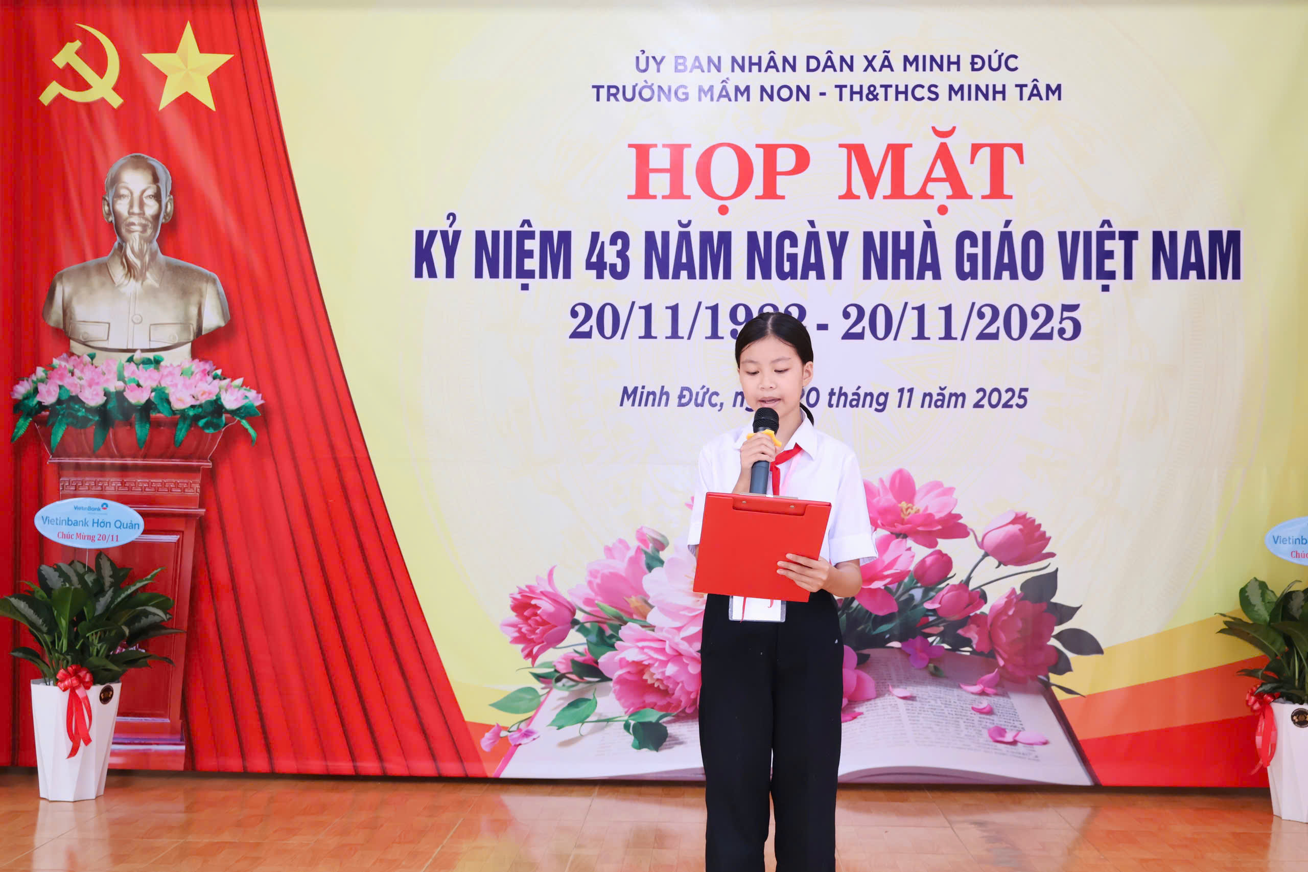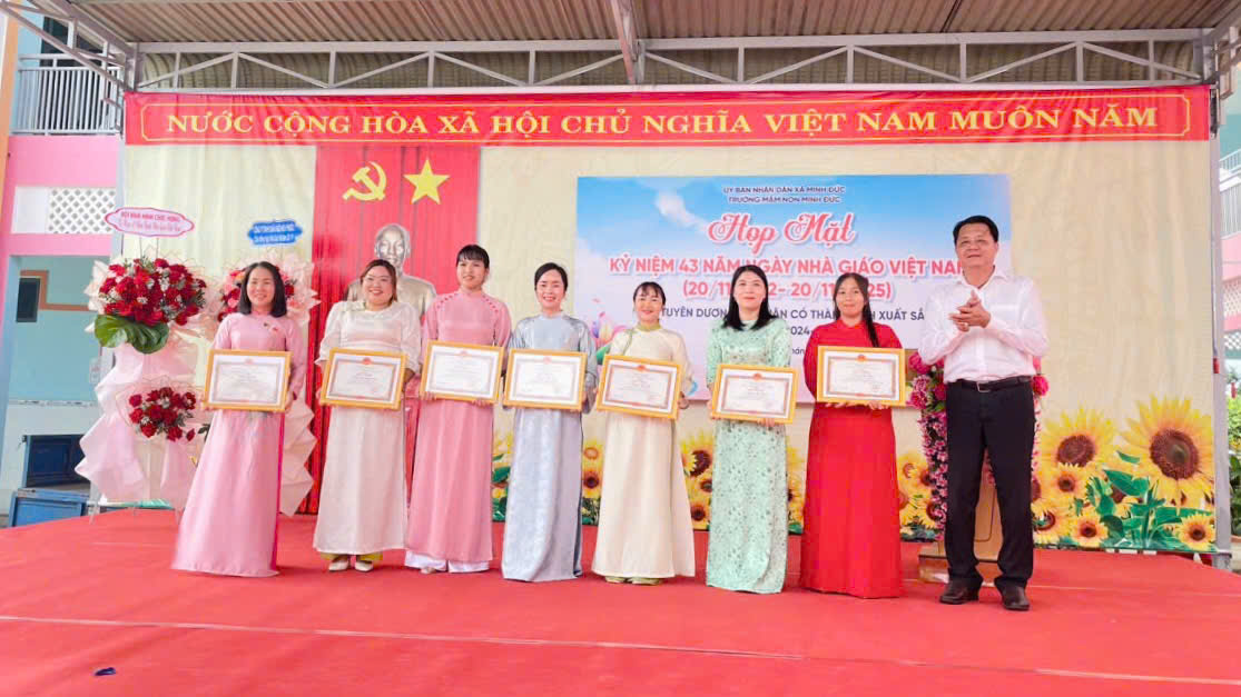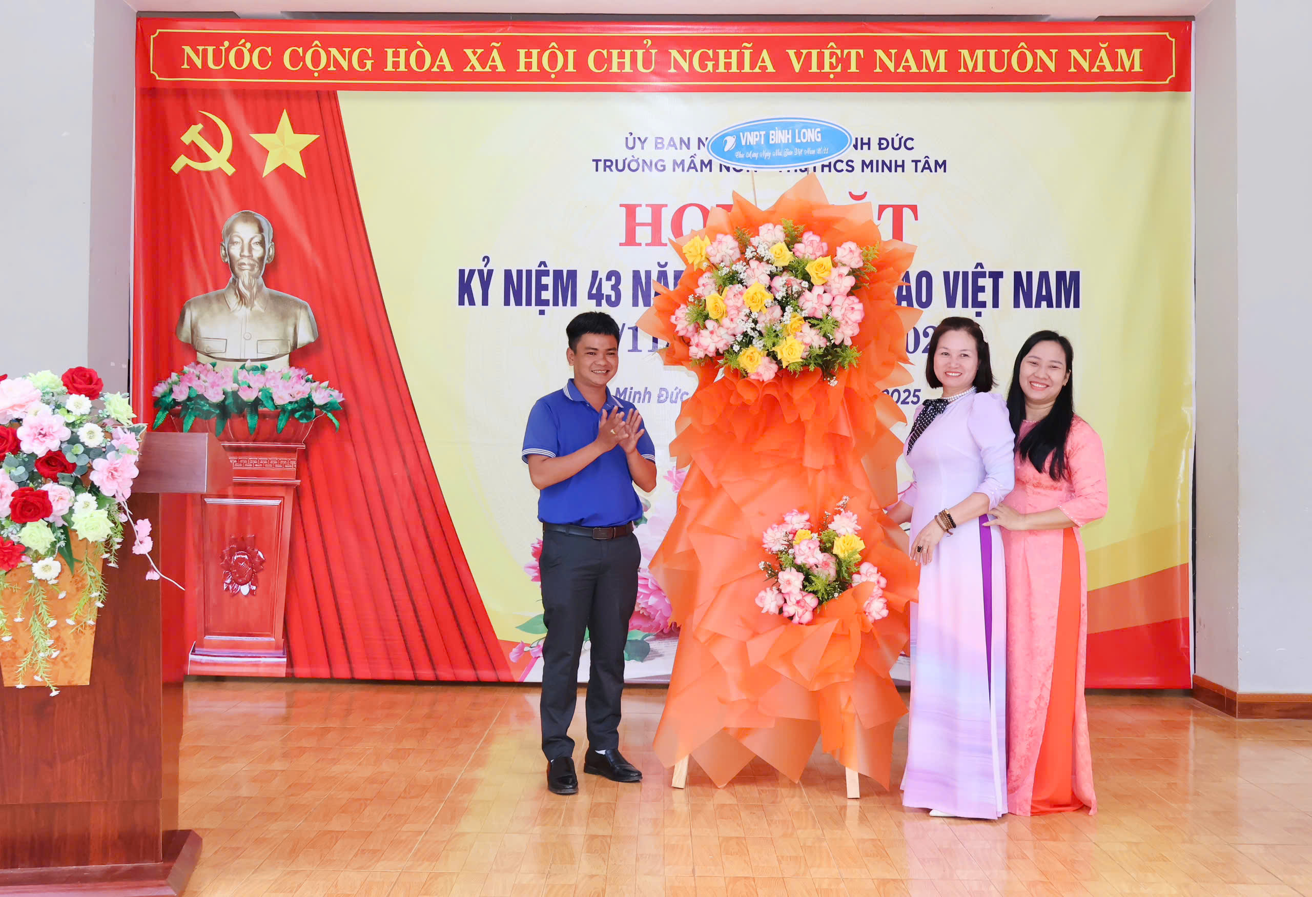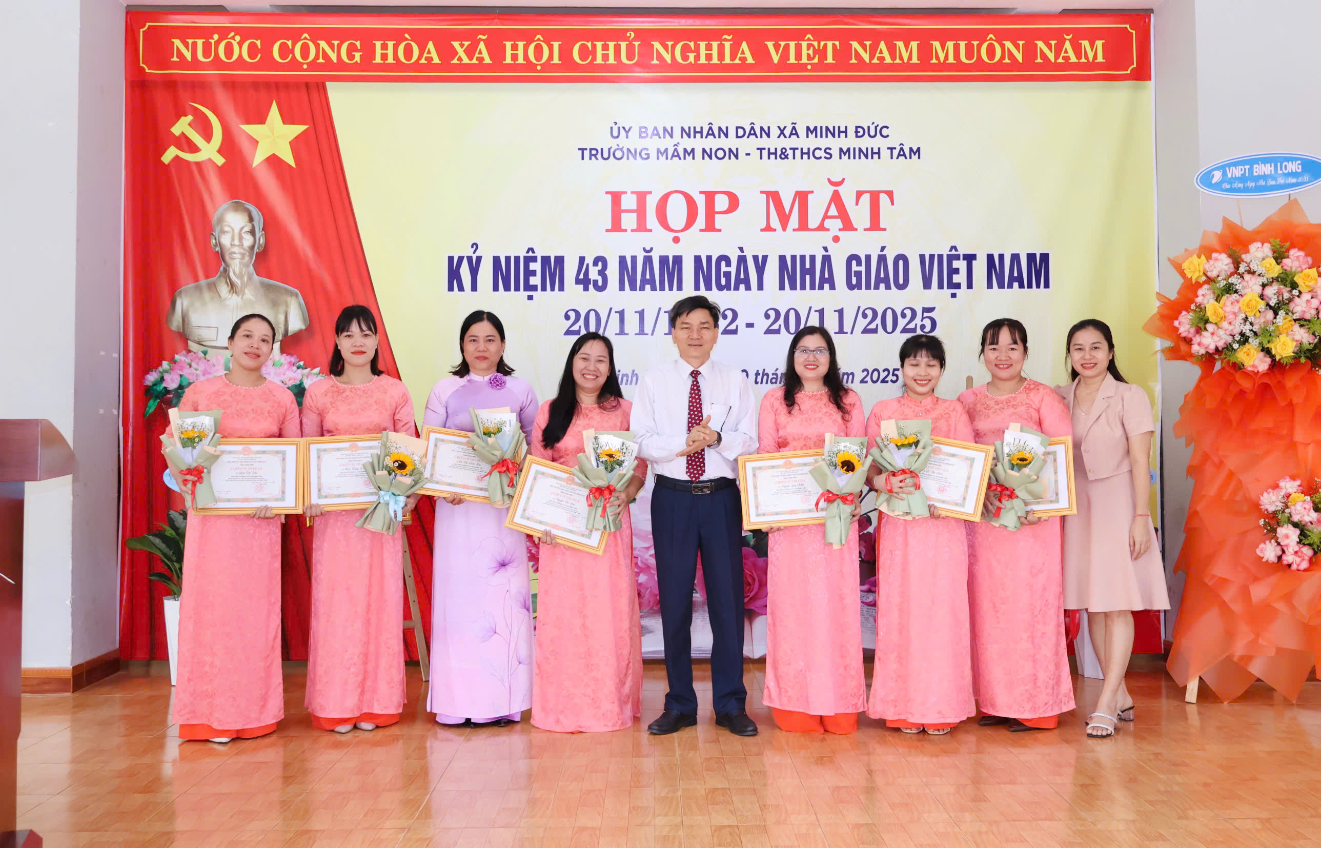 Hòa trong không khí tri ân sâu lắng của Ngày Nhà giáo Việt Nam 20/11 – ngày tôn vinh những cống hiến bền bỉ và cao quý của đội ngũ thầy cô giáo, sáng 20/11, đoàn lãnh đạo Đảng ủy, HĐND, UBND và Ủy ban MTTQ Việt Nam xã Minh Đức đã tổ chức nhiều đoàn đến thăm và chúc mừng các trường học, cơ sở giáo dục trên địa bàn xã.