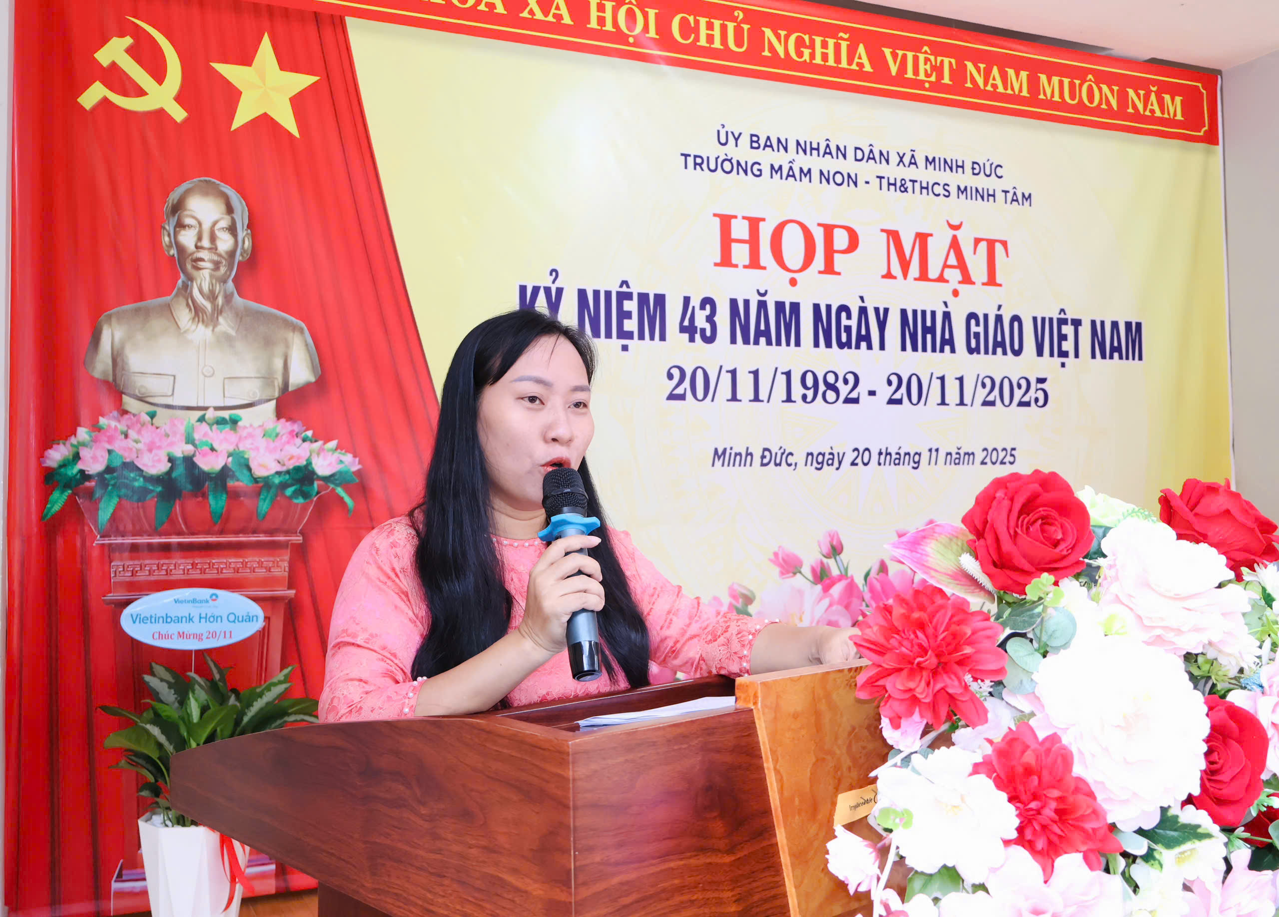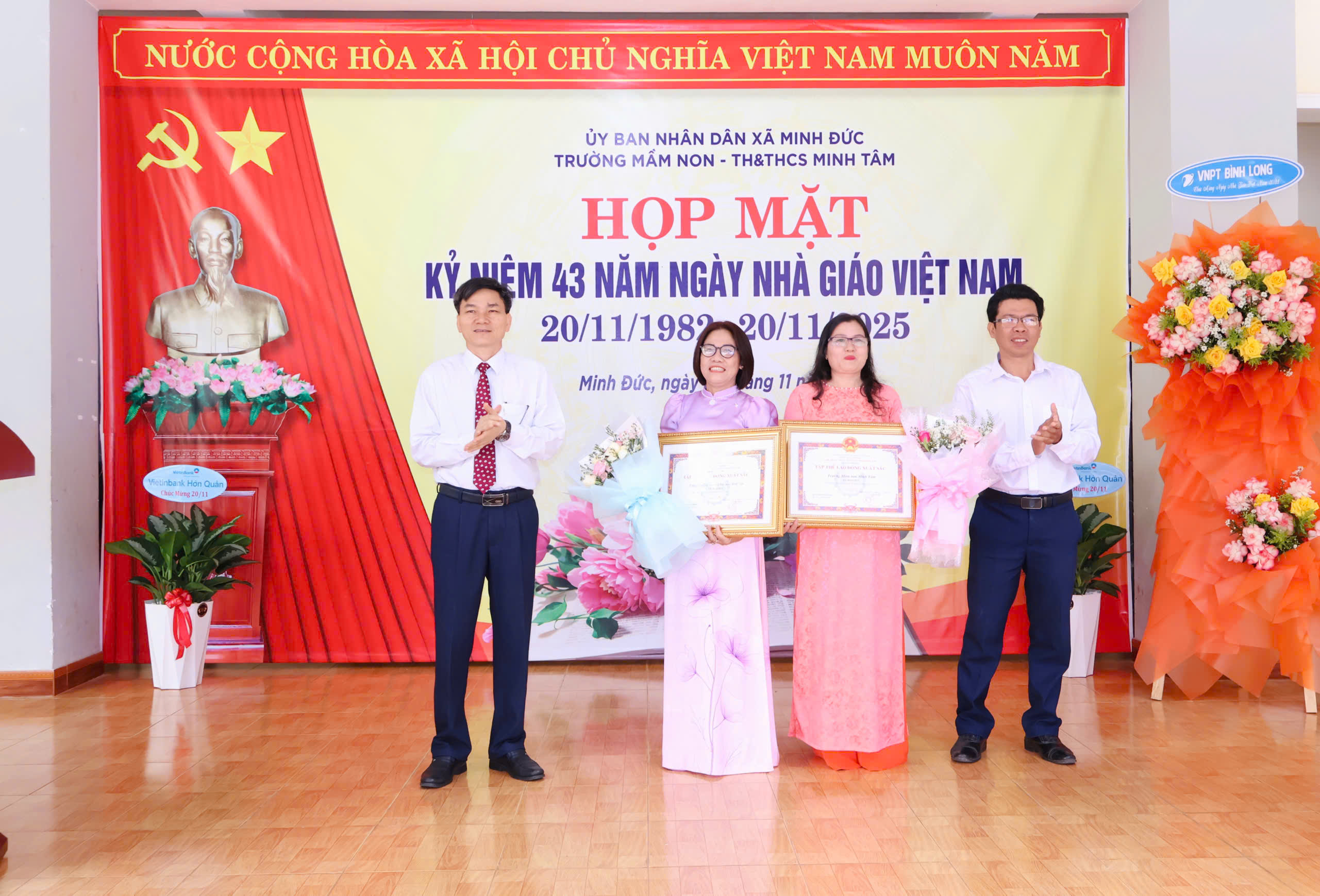 ✨ Chuyến thăm và chúc mừng của lãnh đạo xã Minh Đức nhân Ngày 20/11 không chỉ là nguồn động viên tinh thần to lớn đối với đội ngũ nhà giáo, mà còn thể hiện sự quan tâm sâu sắc của chính quyền địa phương đối với sự nghiệp trồng người – nhiệm vụ mang ý nghĩa chiến lược trong sự phát triển bền vững của xã Minh Đức.
