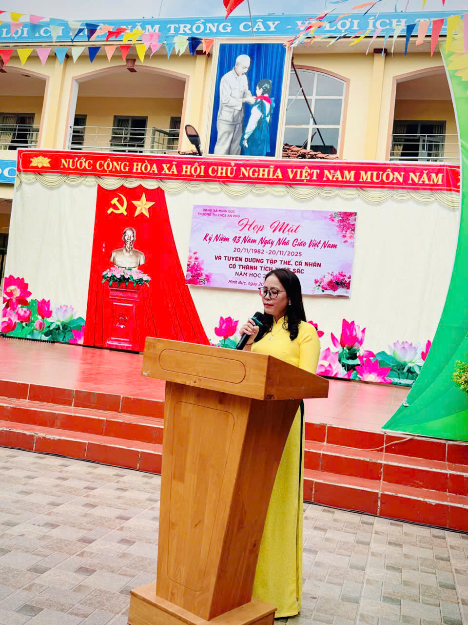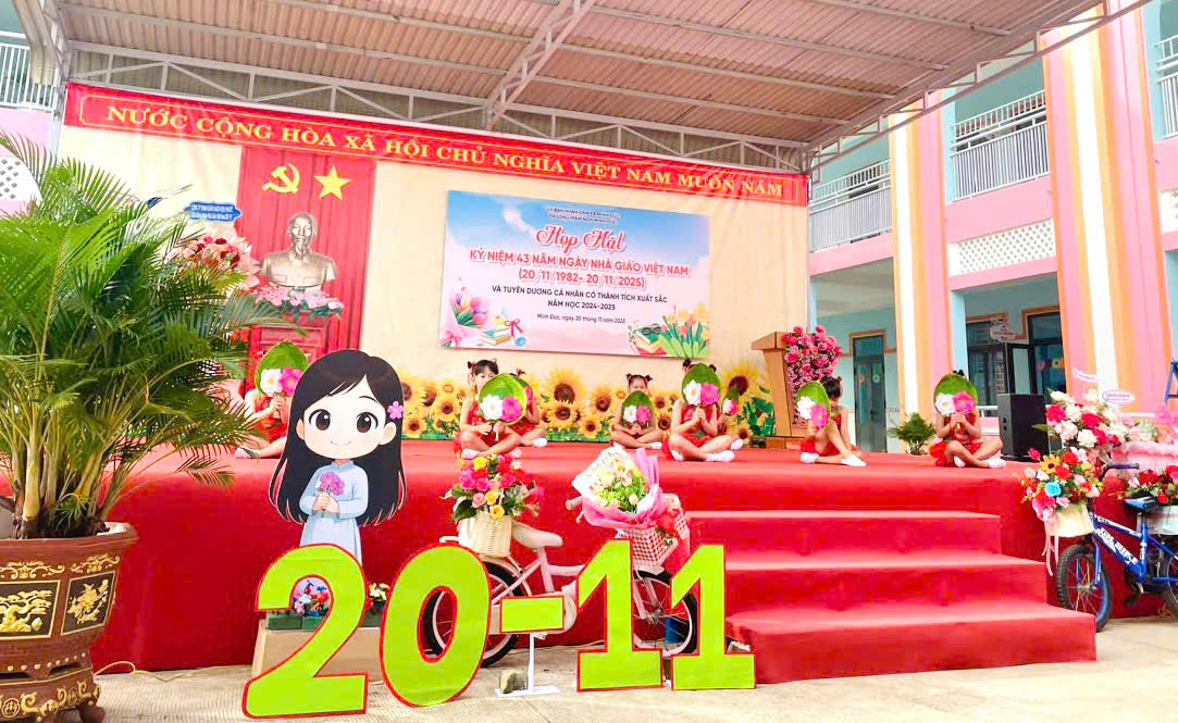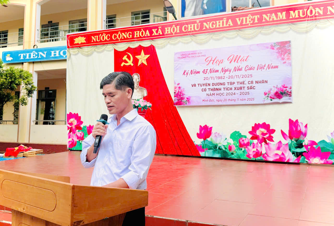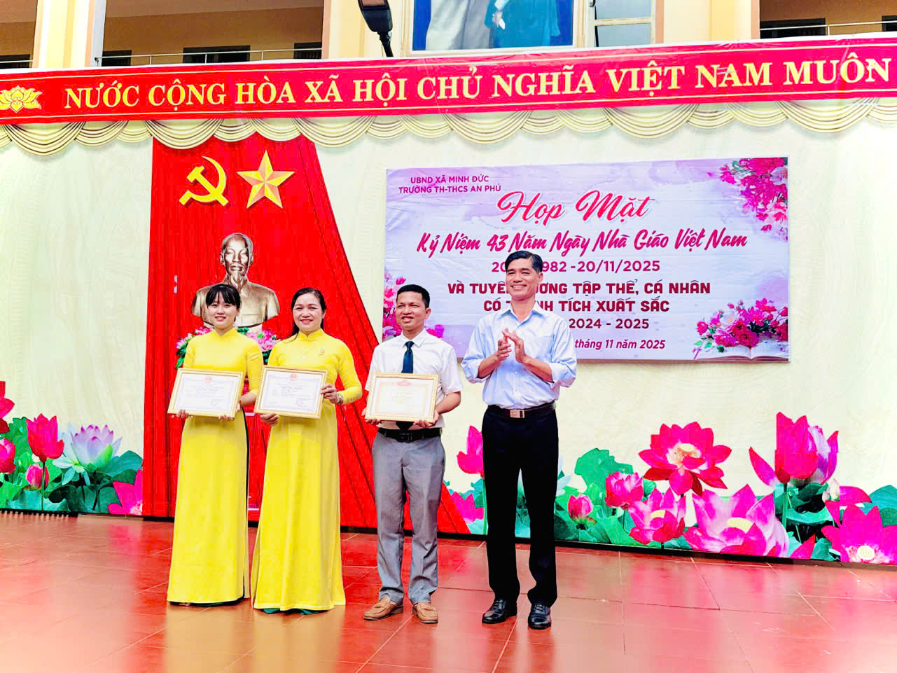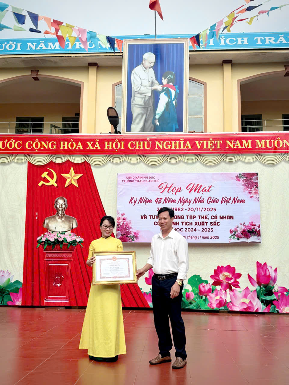 ⭐ Đại diện các nhà giáo xúc động bày tỏ niềm vinh dự khi được lãnh đạo và xã hội ghi nhận. Các thầy cô khẳng định sẽ tiếp tục rèn luyện phẩm chất đạo đức, nâng cao năng lực chuyên môn, giữ vững tinh thần trách nhiệm và lòng yêu nghề, góp phần đào tạo thế hệ học sinh có tri thức, kỹ năng, đạo đức và khát vọng xây dựng quê hương ngày càng giàu đẹp.