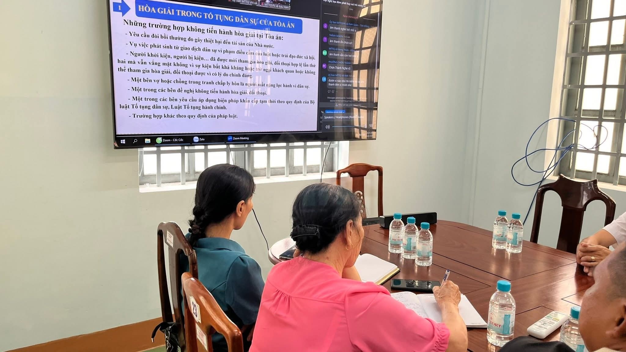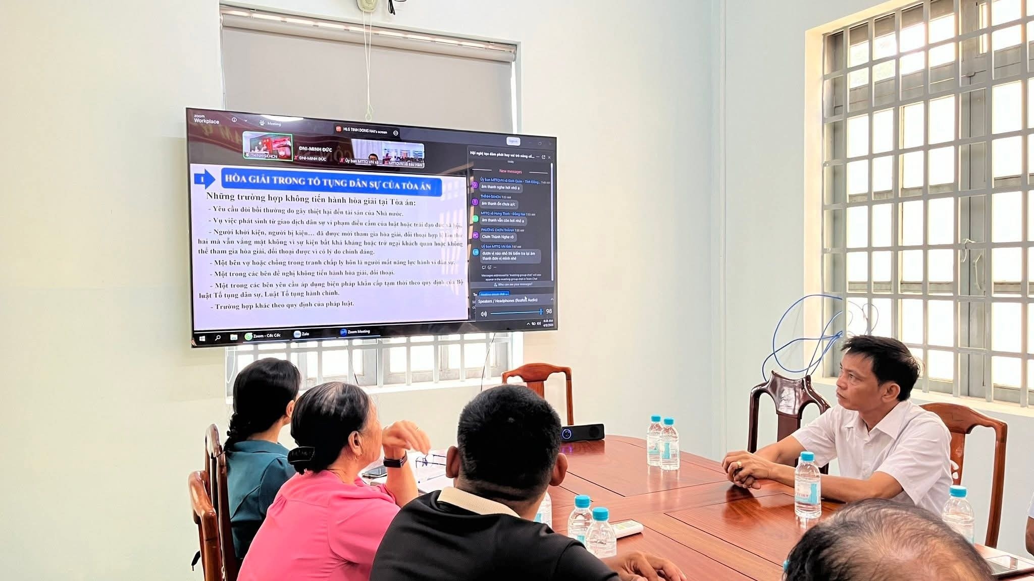 Sáng ngày 08/4, trong tiến trình xây dựng khối đại đoàn kết toàn dân tộc, công tác hòa giải ở cơ sở tiếp tục được khẳng định là nhiệm vụ quan trọng, góp phần giữ gìn sự ổn định ngay từ địa bàn dân cư. Nhận thức sâu sắc điều đó, Ban Thường trực Ủy ban Mặt trận Tổ quốc Việt Nam xã Minh Đức do đồng chí Nguyễn Thị Quý – Ủy viên Ban Thường vụ, Chủ tịch Ủy ban MTTQ Việt Nam xã chủ trì, cùng Ban Công tác Mặt trận các ấp, sóc đã tham dự buổi tọa đàm trực tuyến do tỉnh Đồng Nai tổ chức với chủ đề: “Phát huy vai trò nòng cốt của Mặt trận nhằm nâng cao năng lực đội ngũ hòa giải viên ở cơ sở”.