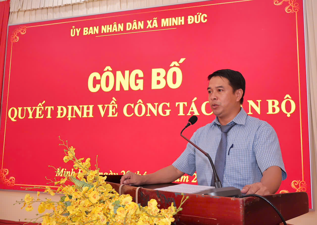 Tại hội nghị, lãnh đạo Phòng Văn hóa – Xã hội đã công bố quyết định của UBND xã về việc bổ nhiệm cán bộ lãnh đạo, quản lý. Theo đó, ông Phạm Tiến Hoàng, Nguyên Trưởng phòng Kinh tế thuộc UBND xã Thọ Sơn được bổ nhiệm giữ chức vụ Trưởng phòng Kinh tế xã Minh Đức, thời hạn bổ nhiệm 5 năm.