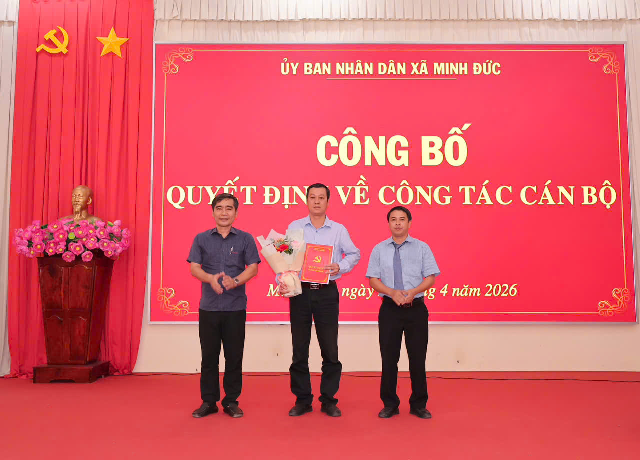 Chiều ngày 20/4, UBND xã Minh Đức tổ chức hội nghị công bố quyết định về công tác cán bộ. Tham dự hội nghị có đồng chí Lưu Quốc Nhật – Phó Bí thư Thường trực Đảng ủy xã; các đồng chí Uỷ viên Ban Thường vụ, Uỷ viên Ban Chấp hành Đảng bộ xã; các ông bà là lãnh đạo các Phòng, ban, ngành, đoàn thể; cán bộ, công chức Phòng Kinh Tế xã cùng dự.
