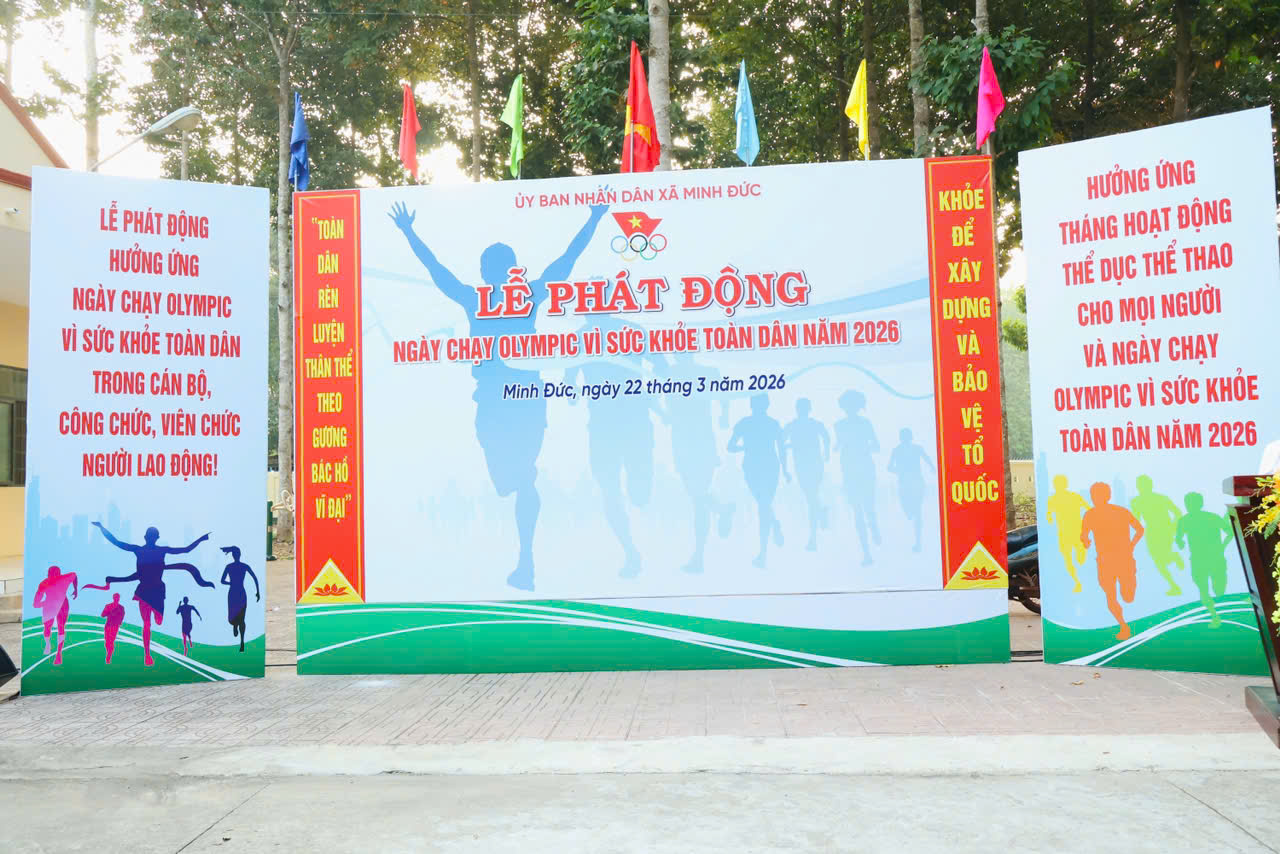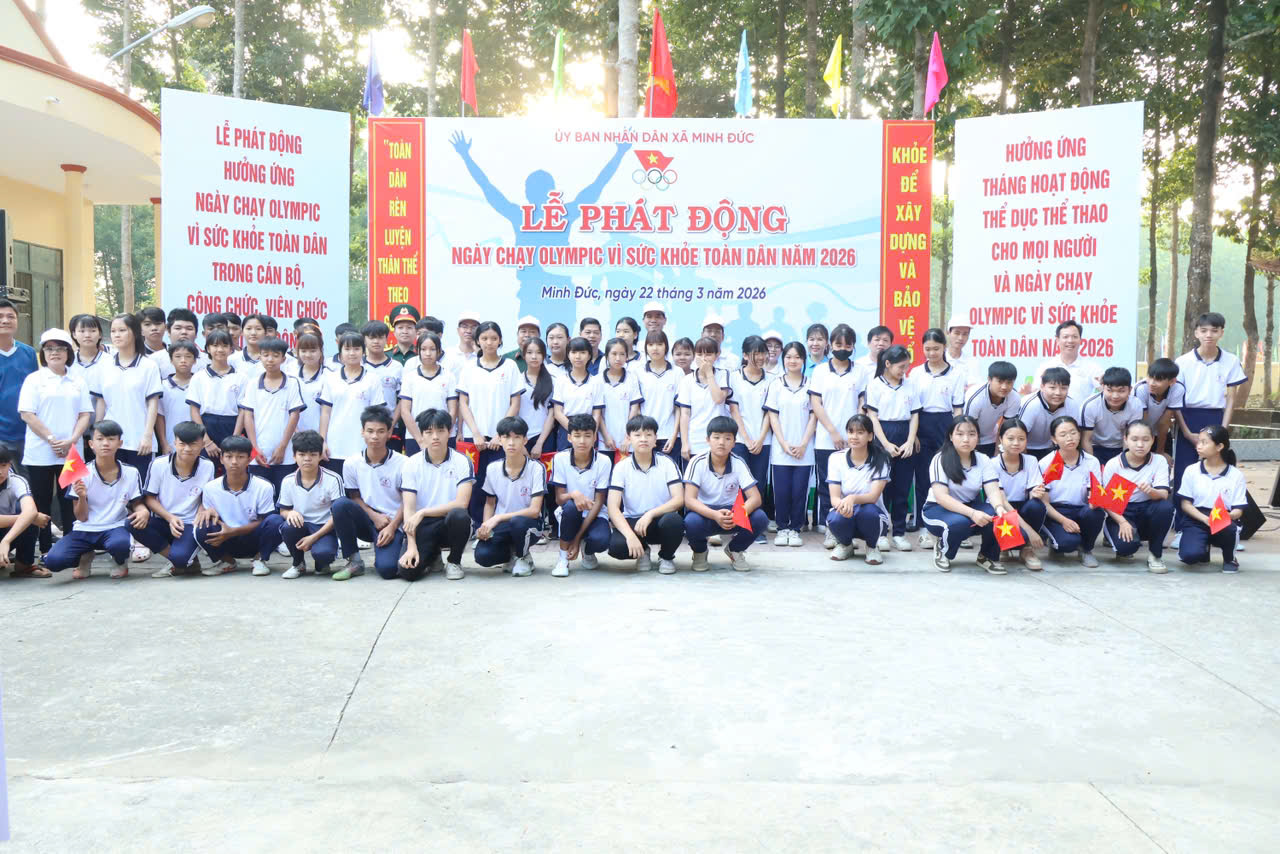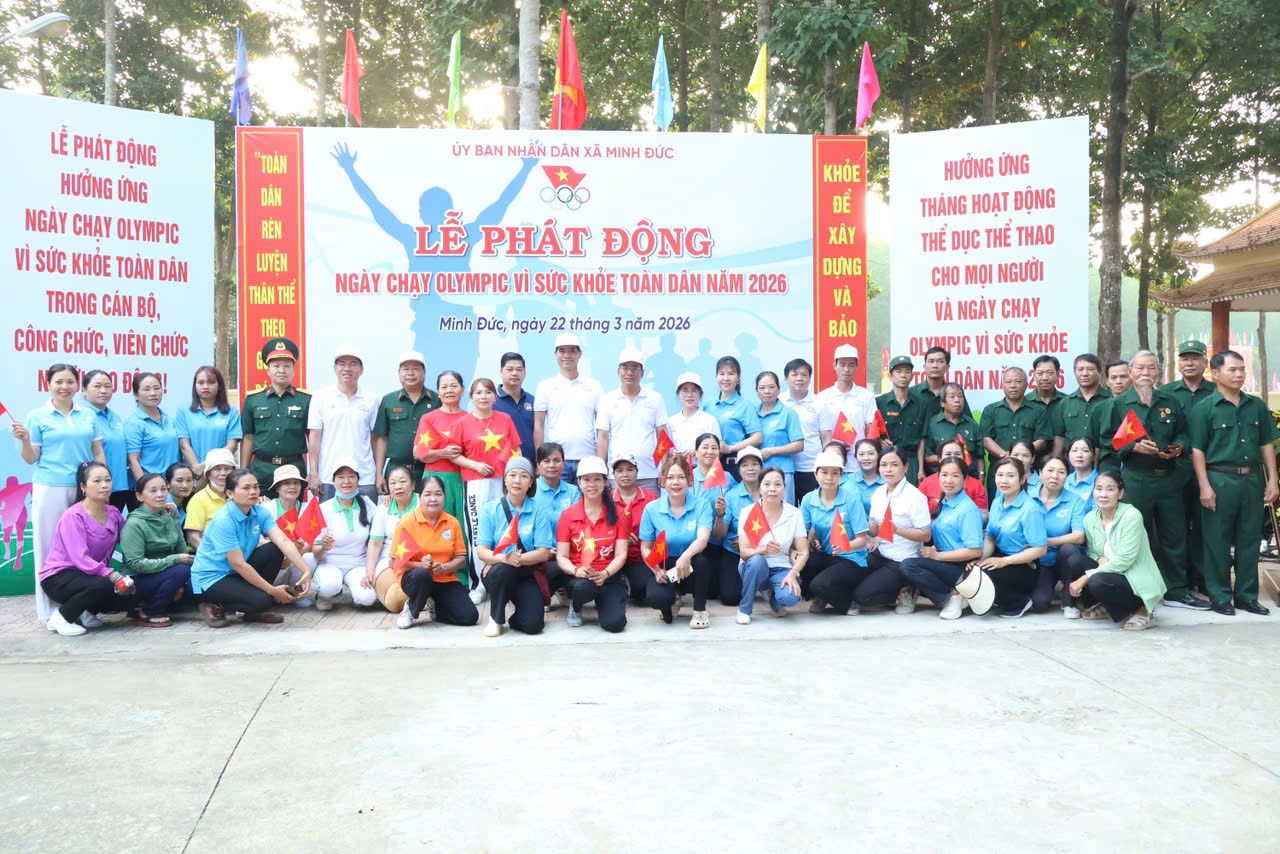 Sáng ngày 22/3, UBND xã Minh Đức đã long trọng tổ chức Lễ phát động Ngày chạy Olympic vì sức khỏe toàn dân năm 2026 trong không khí phấn khởi, tự hào, thiết thực chào mừng thành công tốt đẹp của cuộc bầu cử đại biểu HĐND các cấp nhiệm kỳ 2026–2031 trên địa bàn.