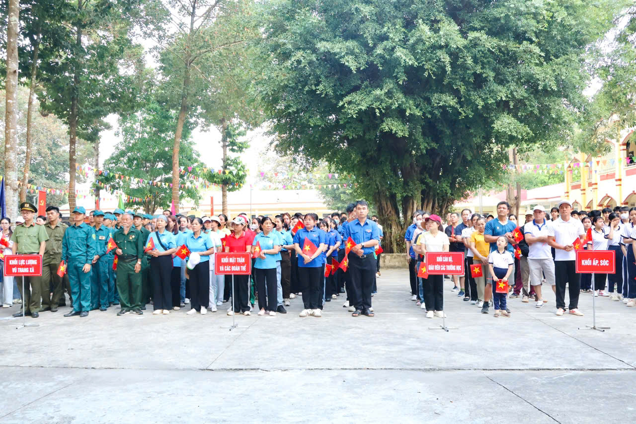 Tham dự buổi lễ có đồng chí Trần Văn Tú – UVBTV Đảng ủy, Phó Chủ tịch UBND xã; đồng chí Lê Xuân Thắng – UVBTV Đảng ủy, Phó Chủ tịch HĐND xã; cùng lãnh đạo các ban, ngành, đoàn thể và đông đảo cán bộ, công chức, lực lượng vũ trang, giáo viên, học sinh và Nhân dân các ấp, sóc.