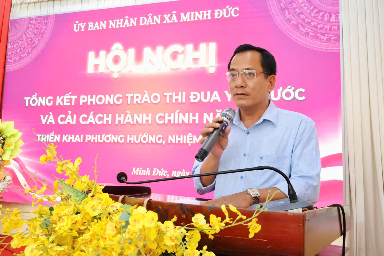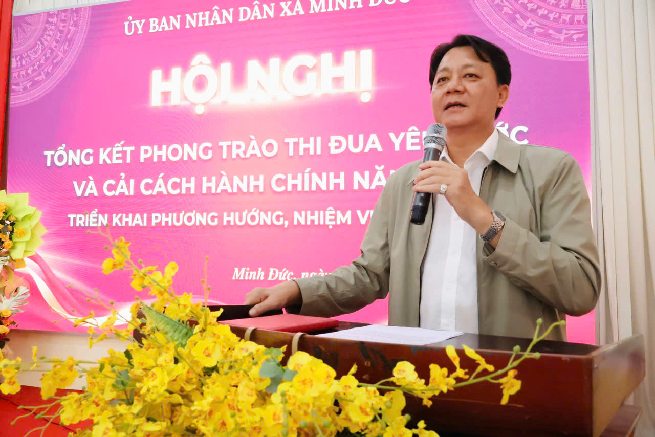 Sáng ngày 26/3/2026, tại Hội trường UBND xã Minh Đức, Ủy ban nhân dân xã đã long trọng tổ chức Hội nghị tổng kết phong trào thi đua yêu nước và cải cách hành chính năm 2025; triển khai phương hướng, nhiệm vụ và phát động phong trào thi đua năm 2026.