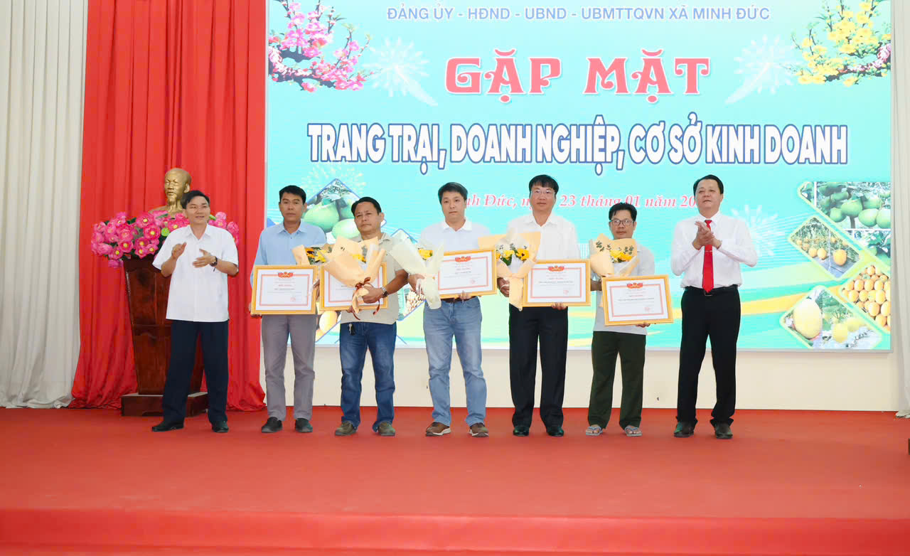 Chiều ngày 23/01, Ủy ban nhân dân xã Minh Đức tổ chức buổi họp mặt các doanh nghiệp, hợp tác xã, trang trại tiêu biểu đang hoạt động sản xuất, kinh doanh trên địa bàn; đồng thời tiếp nhận sự ủng hộ với tổng số tiền 860,5 triệu đồng đóng góp vào Quỹ an sinh xã hội của địa phương.