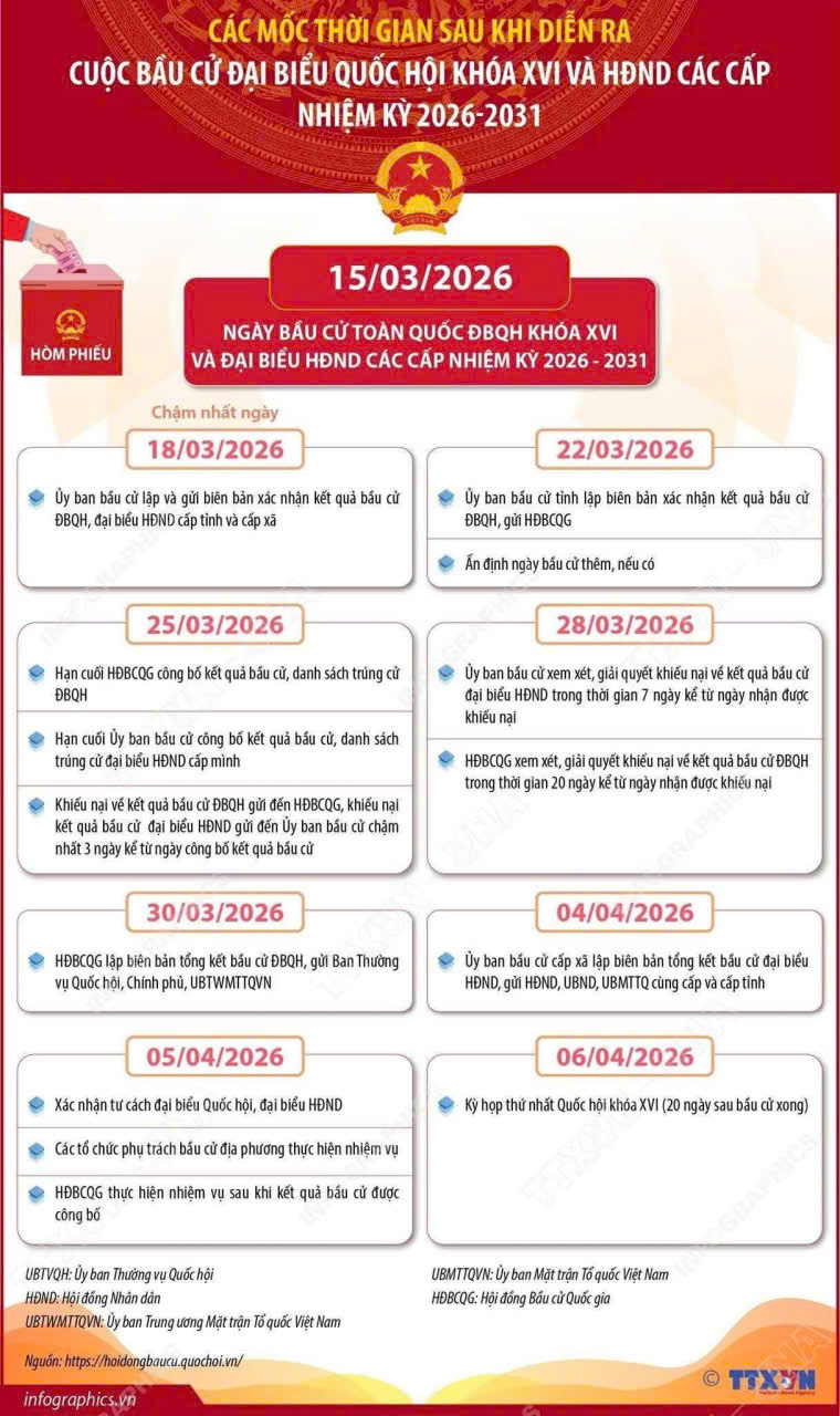 👉 15/3/2026 là Ngày toàn dân đi bầu cử đại biểu Quốc hội khóa XVI và đại biểu Hội đồng nhân dân các cấp nhiệm kỳ 2026-2031.