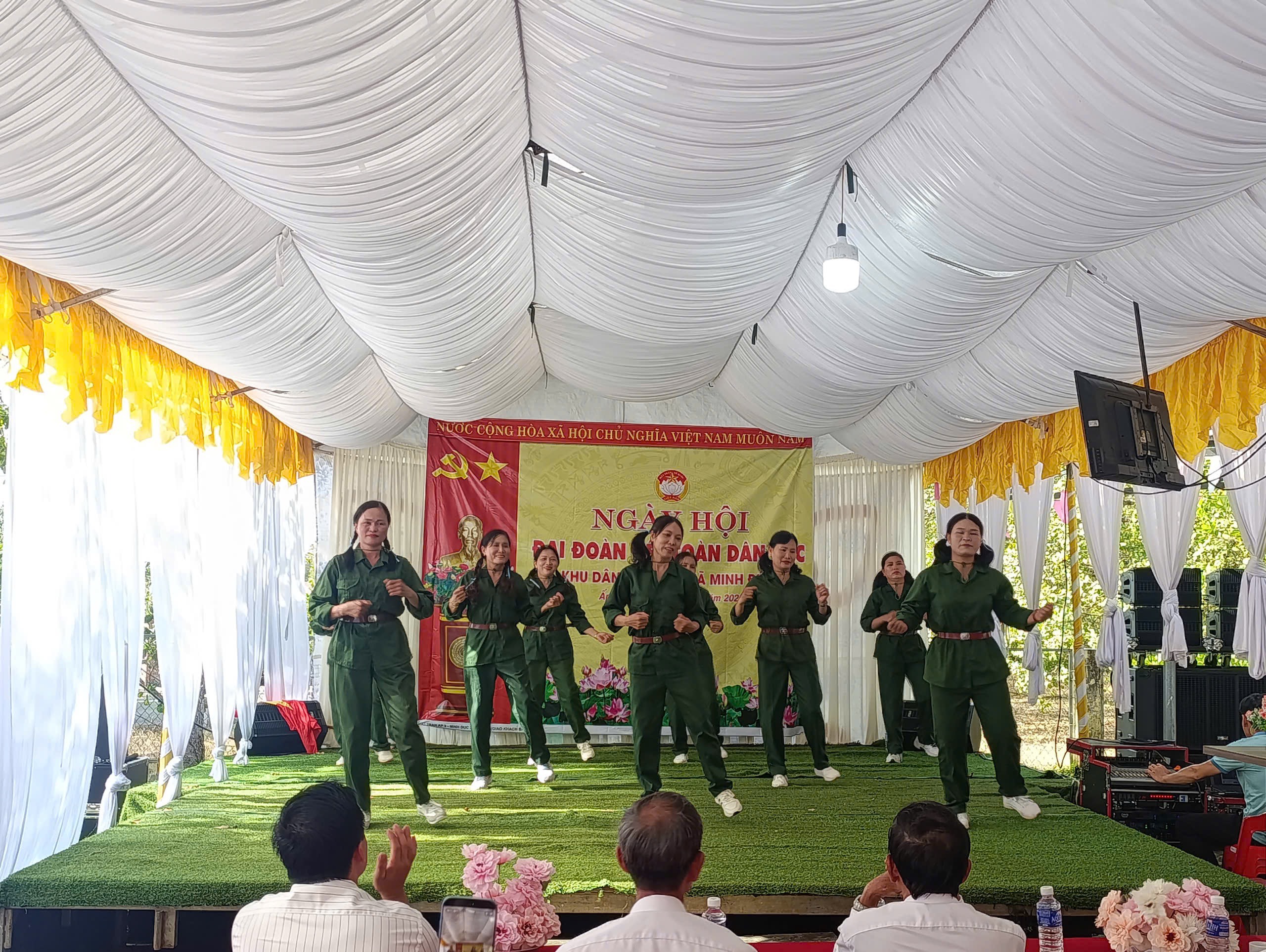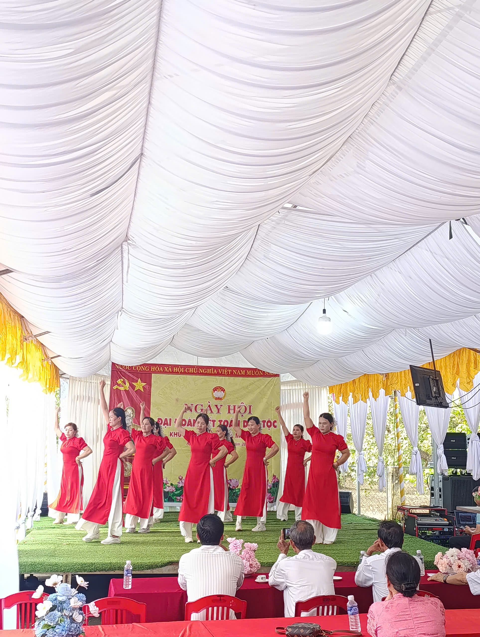 Trong không khí vui tươi của Ngày hội, bà con nhân dân còn được thưởng thức các tiết mục văn nghệ do đội văn nghệ địa phương biểu diễn, góp phần tạo không khí phấn khởi, gắn kết tình làng nghĩa xóm.