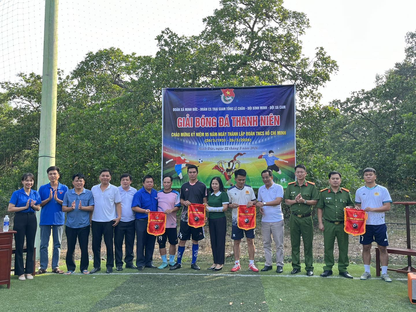 Sáng nay ngày 22/3/2026, các đơn vị Đoàn xã Minh Đức, Đoàn cơ sở Trại giam Tống Lê Chân, Đội cao su Bình Minh và Đội cao su Xa Cam cùng phối hợp tổ chức thành công giải bóng đá thanh niên chào mừng kỷ niệm 95 năm Ngày thành lập Đoàn TNCS Hồ Chí Minh (26/3/1931 - 26/3/2026).