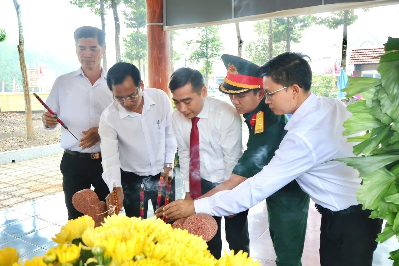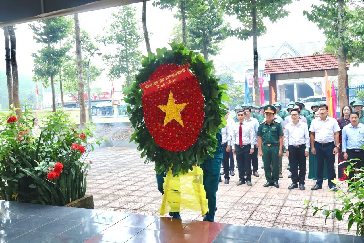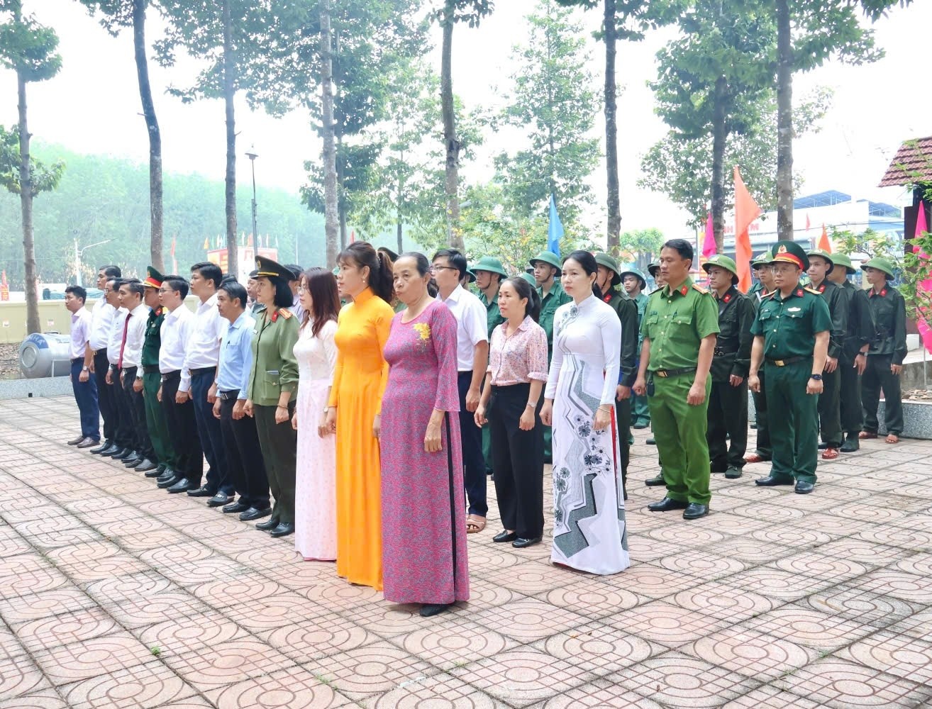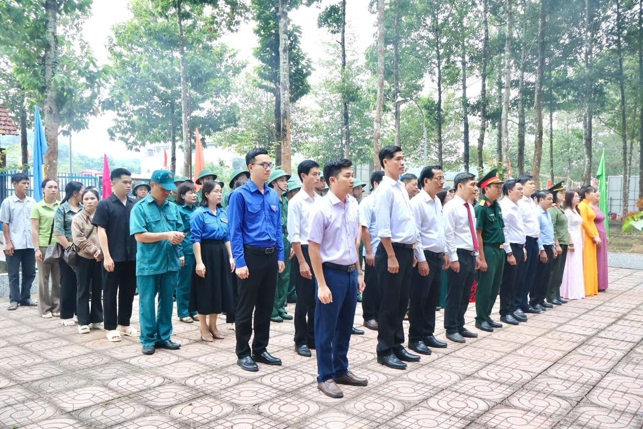 Trong không khí trang nghiêm, trước anh linh các Anh hùng liệt sỹ, các đại biểu và các tân binh đã kính cẩn dâng hoa, dâng hương và dành phút mặc niệm tưởng nhớ, bày tỏ lòng biết ơn sâu sắc đối với những người con ưu tú của quê hương đã anh dũng hy sinh vì sự nghiệp đấu tranh giải phóng dân tộc, bảo vệ Tổ quốc.