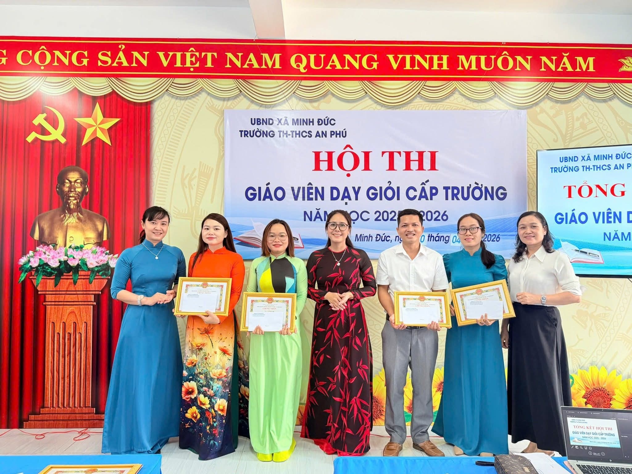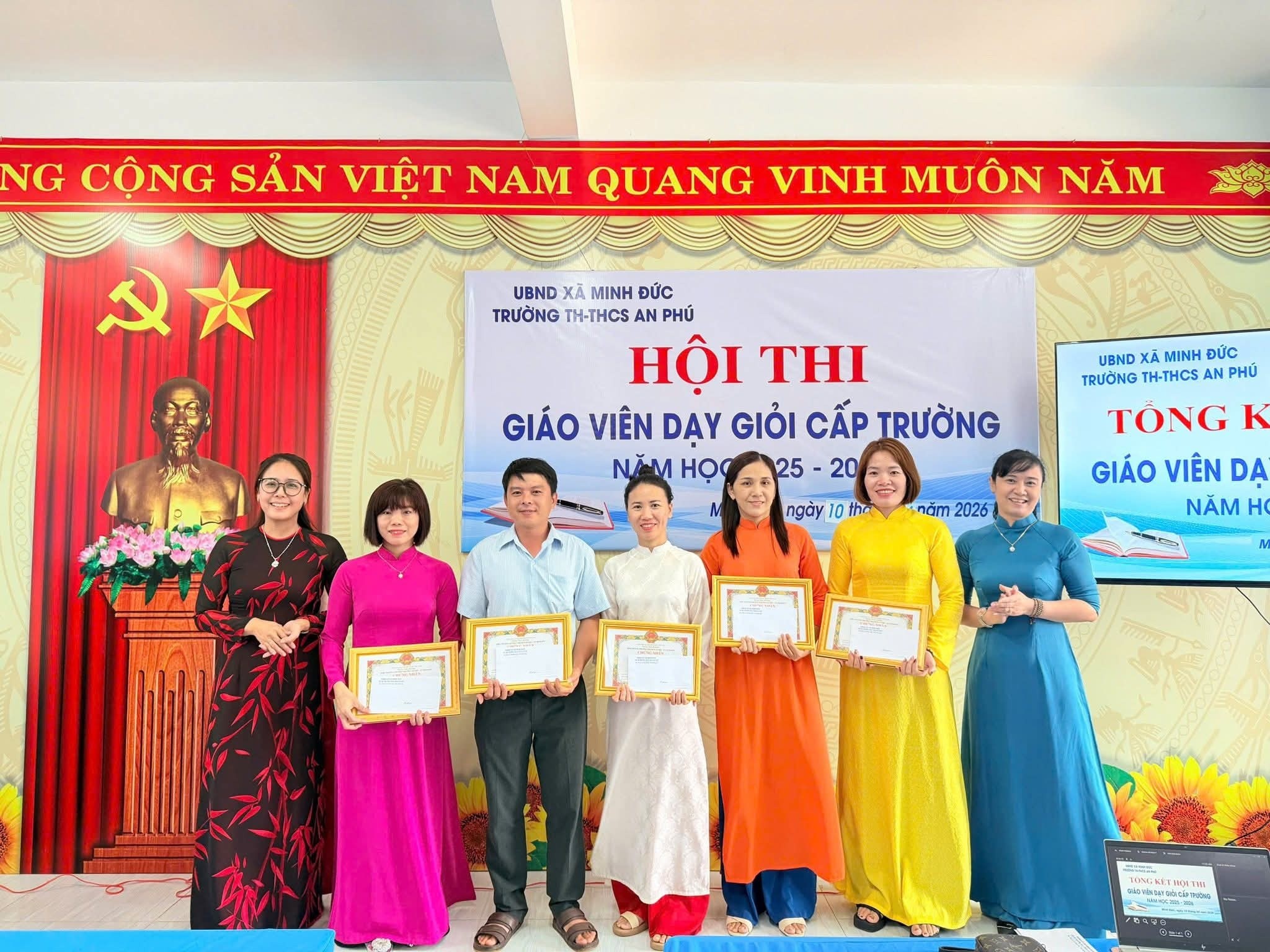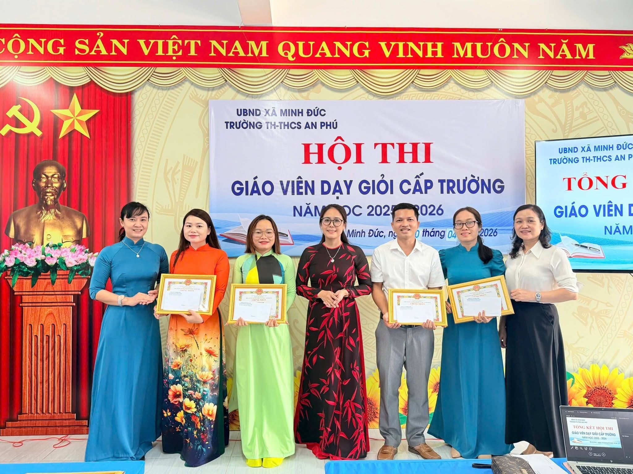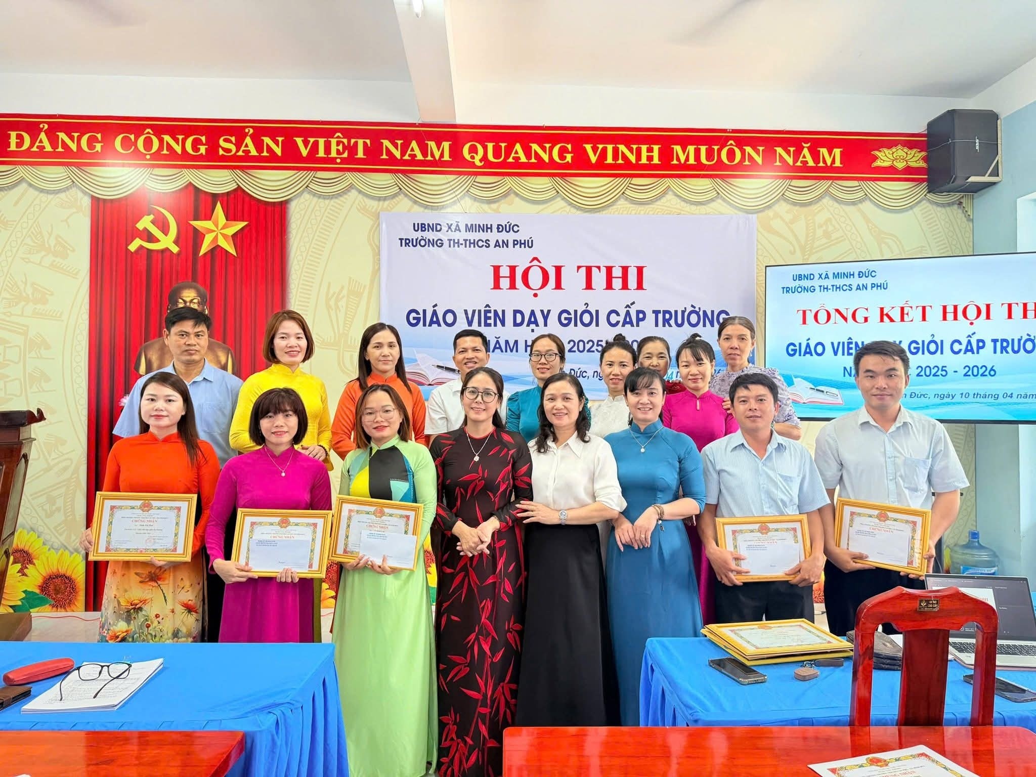Ngày 10/4/2026, Hội thi Giáo viên dạy giỏi cấp trường của Trường TH & THCS An Phú đã khép lại sau những ngày làm việc nghiêm túc, trách nhiệm và đầy cảm hứng. Không đơn thuần là một hội thi chuyên môn, đây thực sự là hành trình lan tỏa tâm huyết, trí tuệ và khát vọng đổi mới của đội ngũ nhà giáo trong sự nghiệp “trồng người”.