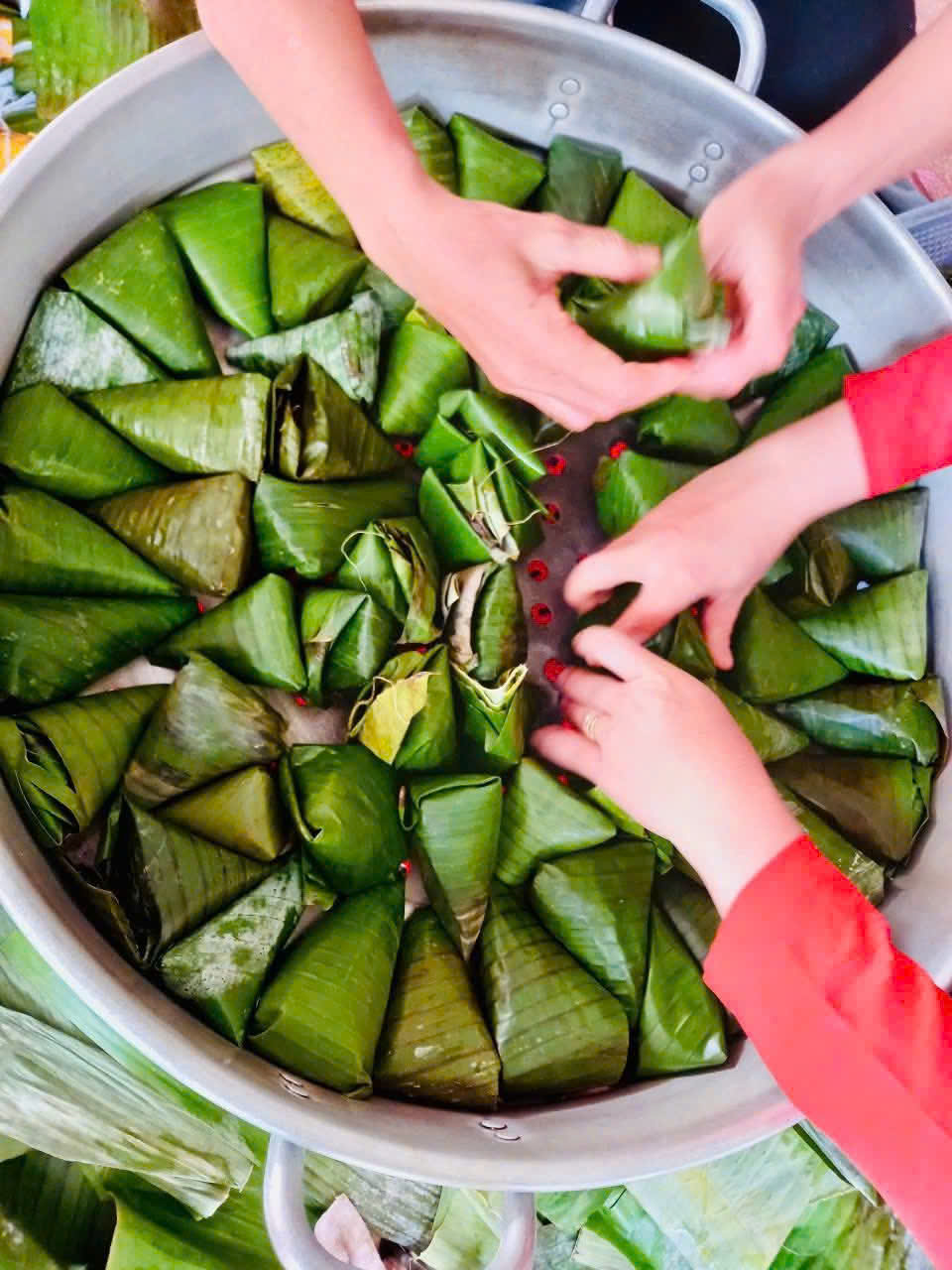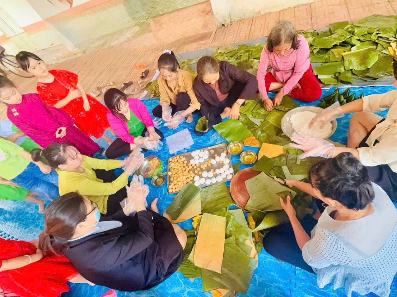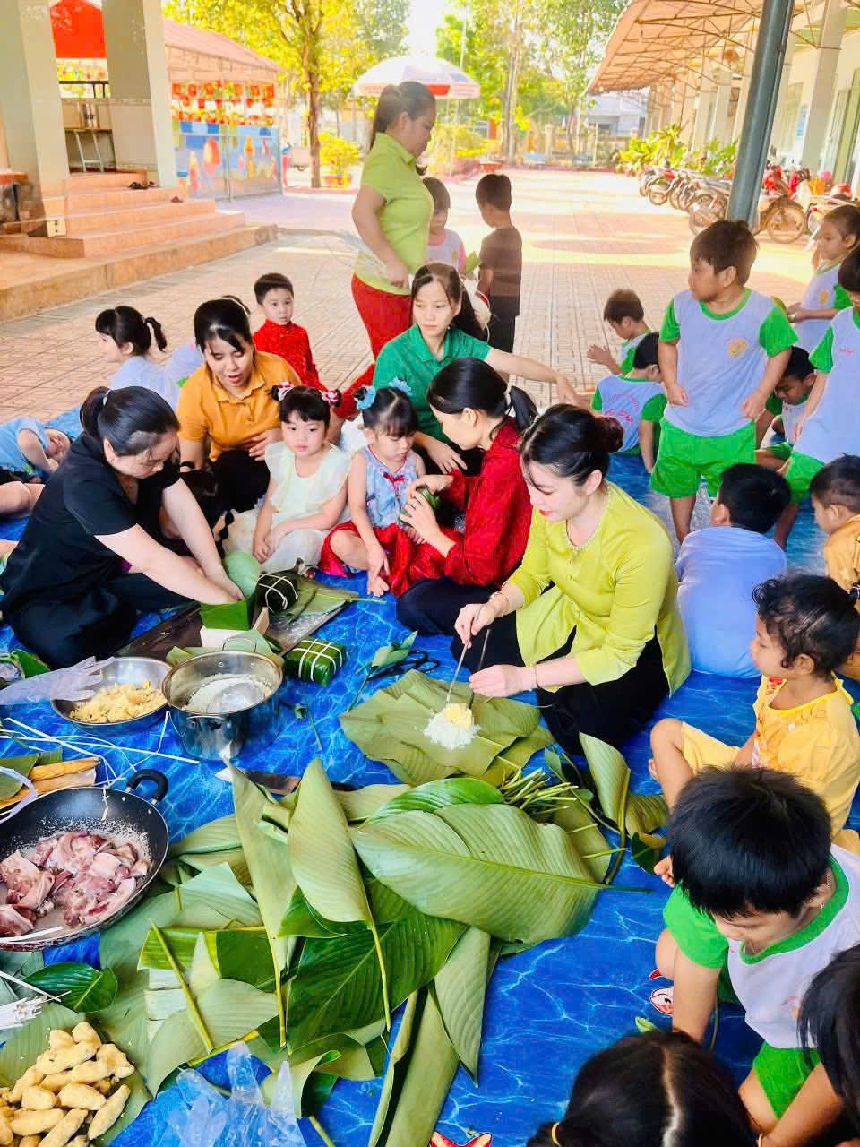 Thông qua việc trực tiếp quan sát và tham gia các công đoạn như chuẩn bị nguyên liệu, xếp lá, cho nếp, đậu, thịt và gói bánh, các con không chỉ được tìm hiểu về ý nghĩa của bánh chưng – bánh tét, bánh ít, mà còn được rèn luyện sự khéo léo, tính kiên nhẫn và tinh thần làm việc.