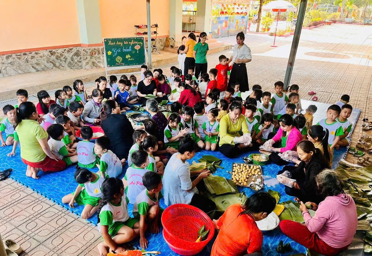 Trong không khí rộn ràng đón Xuân, các bạn nhỏ Trường Mầm non An Phú đã có cơ hội tham gia hoạt động trải nghiệm đầy ý nghĩa với hoạt động gói bánh chưng – bánh tét, bánh ít, một nét đẹp truyền thống không thể thiếu của ngày Tết Việt Nam ![]()