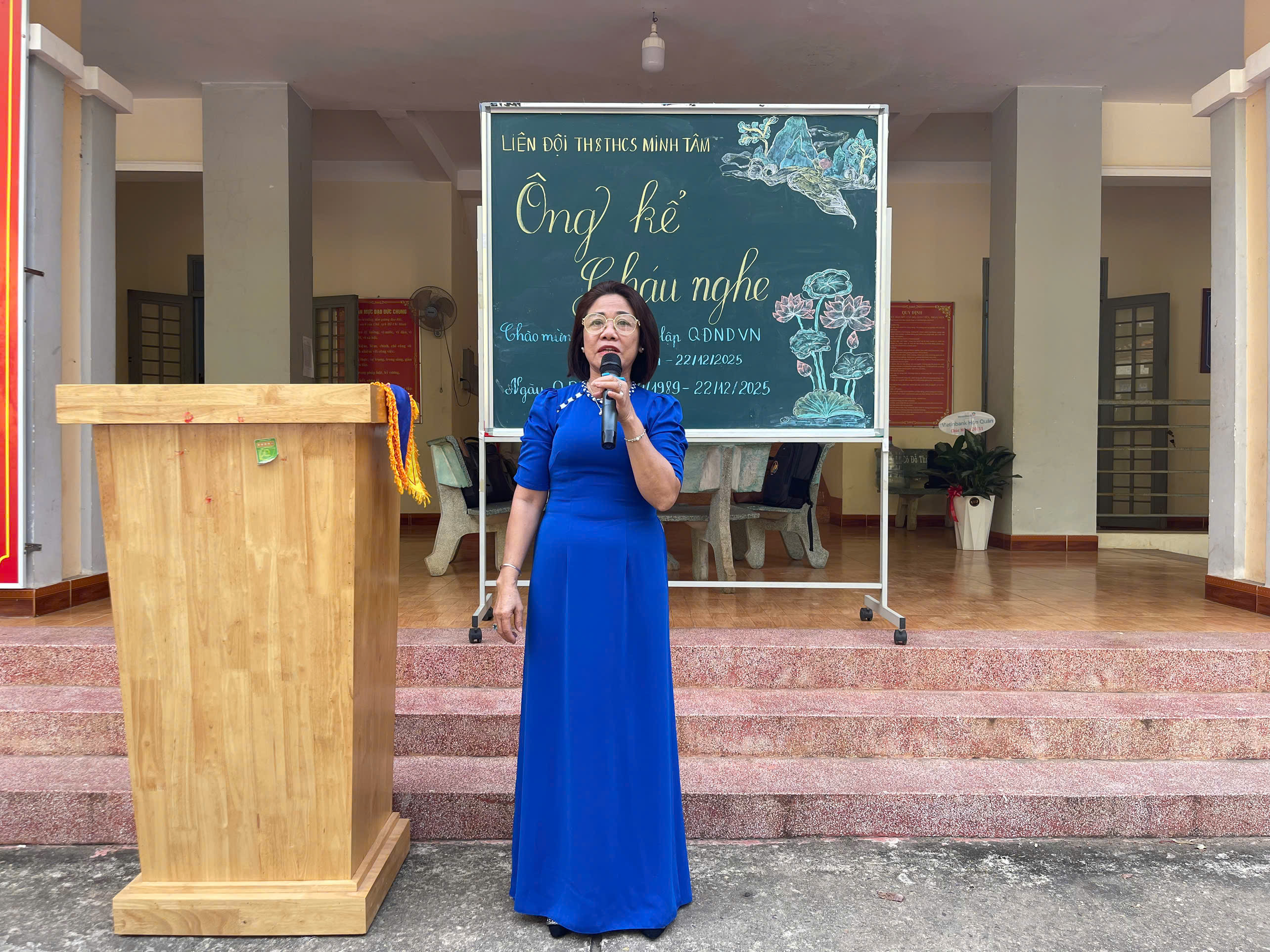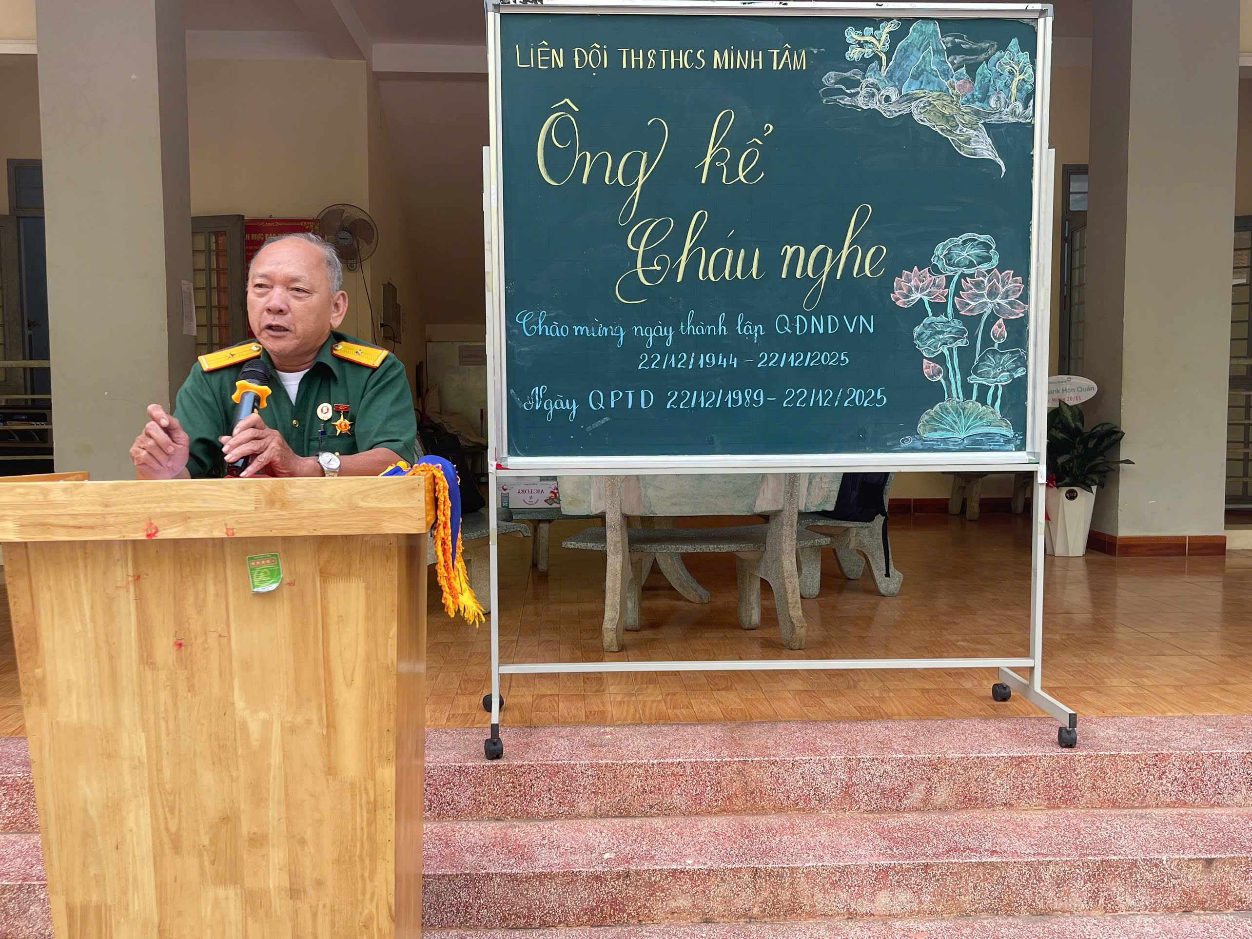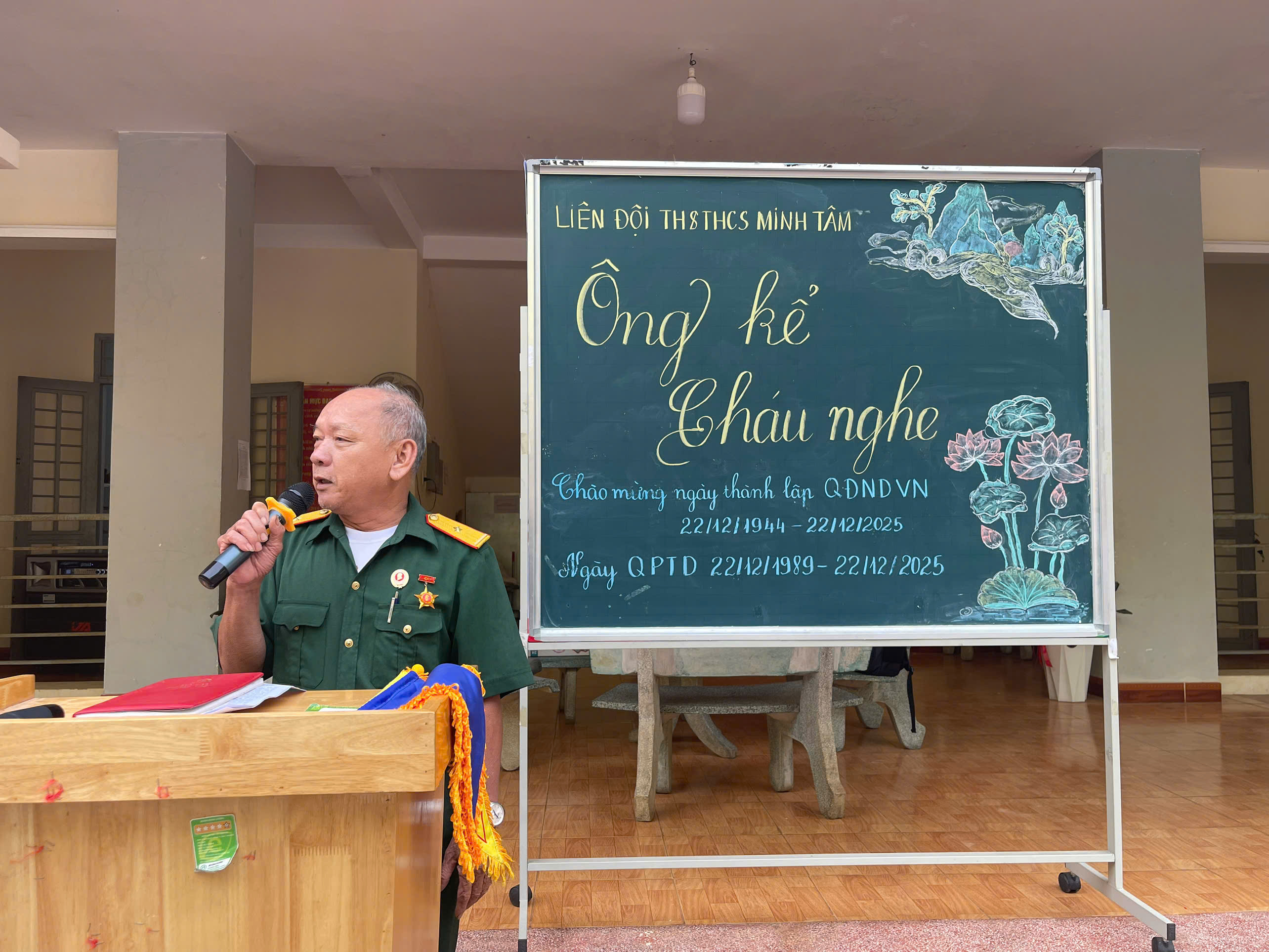 Sáng ngày 15/12/2025, tại Trường TH&THCS Minh Tâm, xã Minh Đức, tỉnh Đồng Nai, nhà trường đã tổ chức chương trình “Ông kể cháu nghe” nhân dịp kỷ niệm 81 năm Ngày thành lập Quân đội nhân dân Việt Nam (22/12/1944 – 22/12/2025) và 36 năm Ngày hội Quốc phòng toàn dân (22/12/1989 – 22/12/2025).