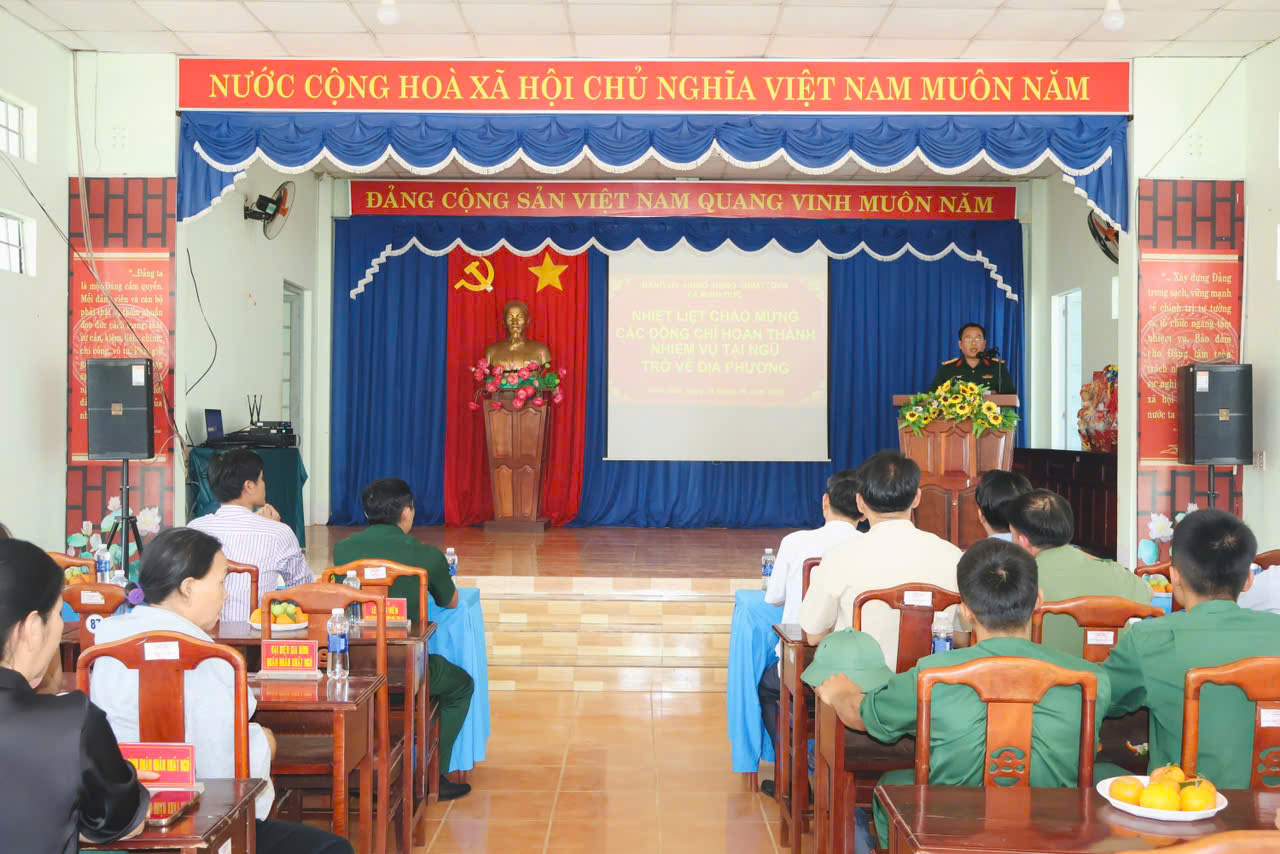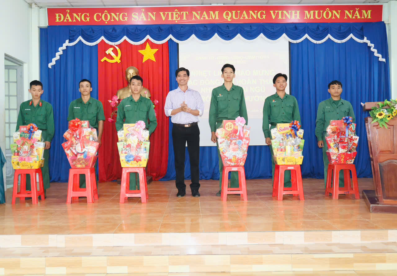 Phát biểu chúc mừng, đồng chí Trần Văn Phương – Bí thư Đảng ủy xã, Bí thư Chi bộ Ban chỉ huy Quân sự xã ghi nhận và biểu dương những đóng góp, tinh thần trách nhiệm, ý chí rèn luyện và sự nỗ lực phấn đấu của các đồng chí quân nhân trong suốt thời gian thực hiện nghĩa vụ quân sự, góp phần quan trọng vào sự nghiệp xây dựng và bảo vệ Tổ quốc. Đồng chí nhấn mạnh, các quân nhân sau khi hoàn thành nghĩa vụ trở về địa phương tiếp tục phát huy truyền thống vẻ vang của Quân đội Nhân dân Việt Nam anh hùng, giữ vững bản lĩnh, phẩm chất “Bộ đội Cụ Hồ”, tích cực tham gia các phong trào thi đua yêu nước, đóng góp sức trẻ vào công cuộc xây dựng quê hương ngày càng phát triển, văn minh, giàu đẹp, nghĩa tình. Đồng thời, đồng chí Bí thư gửi lời chúc các quân nhân và gia đình luôn mạnh khỏe, hạnh phúc, sớm ổn định cuộc sống và tiếp tục gặt hái nhiều thành công trong thời gian tới.