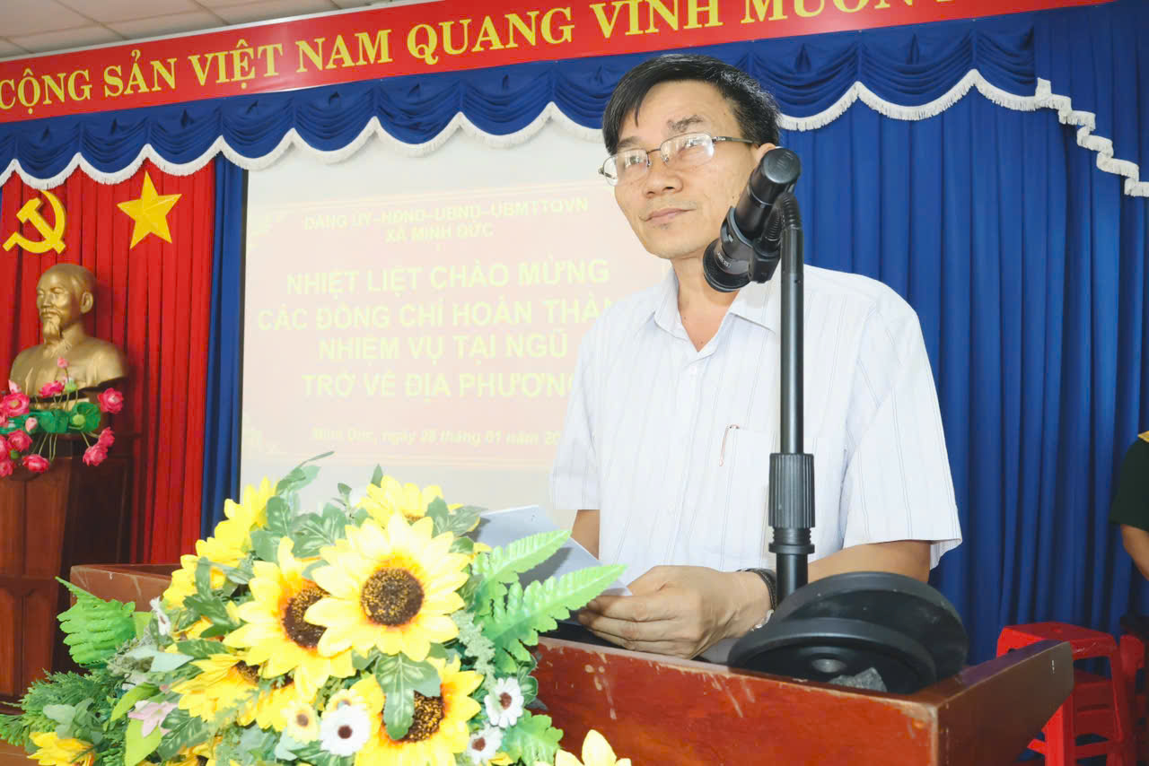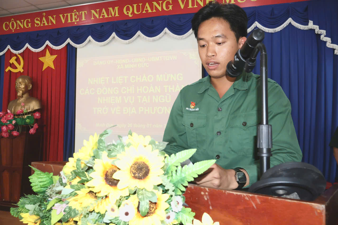Sáng 28/01/2026, UBND xã Minh Đức tổ chức lễ chào mừng các Quân nhân đã hoàn thành nghĩa vụ quân sự trở về địa phương. Dự buổi lễ có đồng chí Trần Văn Phương – Bí thư Đảng ủy xã, Bí thư Chi bộ Ban chỉ huy Quân sự xã; đồng chí Huỳnh Văn Minh – Phó Bí thư Đảng ủy, Chủ tịch UBND xã, Chủ tịch Hội đồng Nghĩa vụ quân sự xã; đồng chí Nguyễn Đình Luận – Chỉ huy trưởng Ban Chỉ huy Quân sự xã; cùng tham dự có các ông, bà là Thành viên Hội đồng Nghĩa vụ quân sự xã và đại diện gia đình các quân nhân và 23 đồng chí quân nhân hoàn thành nghĩa vụ tại ngũ.