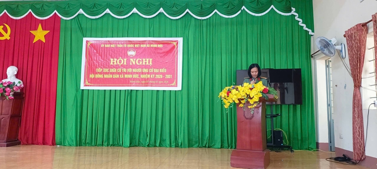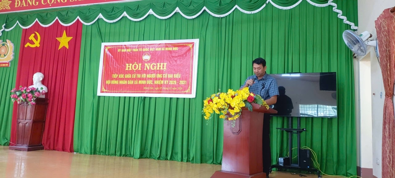 Thực hiện kế hoạch tổ chức hội nghị tiếp xúc cử tri với những người ứng cử đại biểu Hội đồng nhân dân xã nhiệm kỳ 2026 – 2031, từ ngày 05/3 đến ngày 09/3/2026, UBMTTQVN xã Minh Đức đã tổ chức các hội nghị tiếp xúc cử tri với người ứng cử đại biểu HĐND xã nhiệm kỳ 2026 – 2031 tại các đơn vị bầu cử trên địa bàn xã.