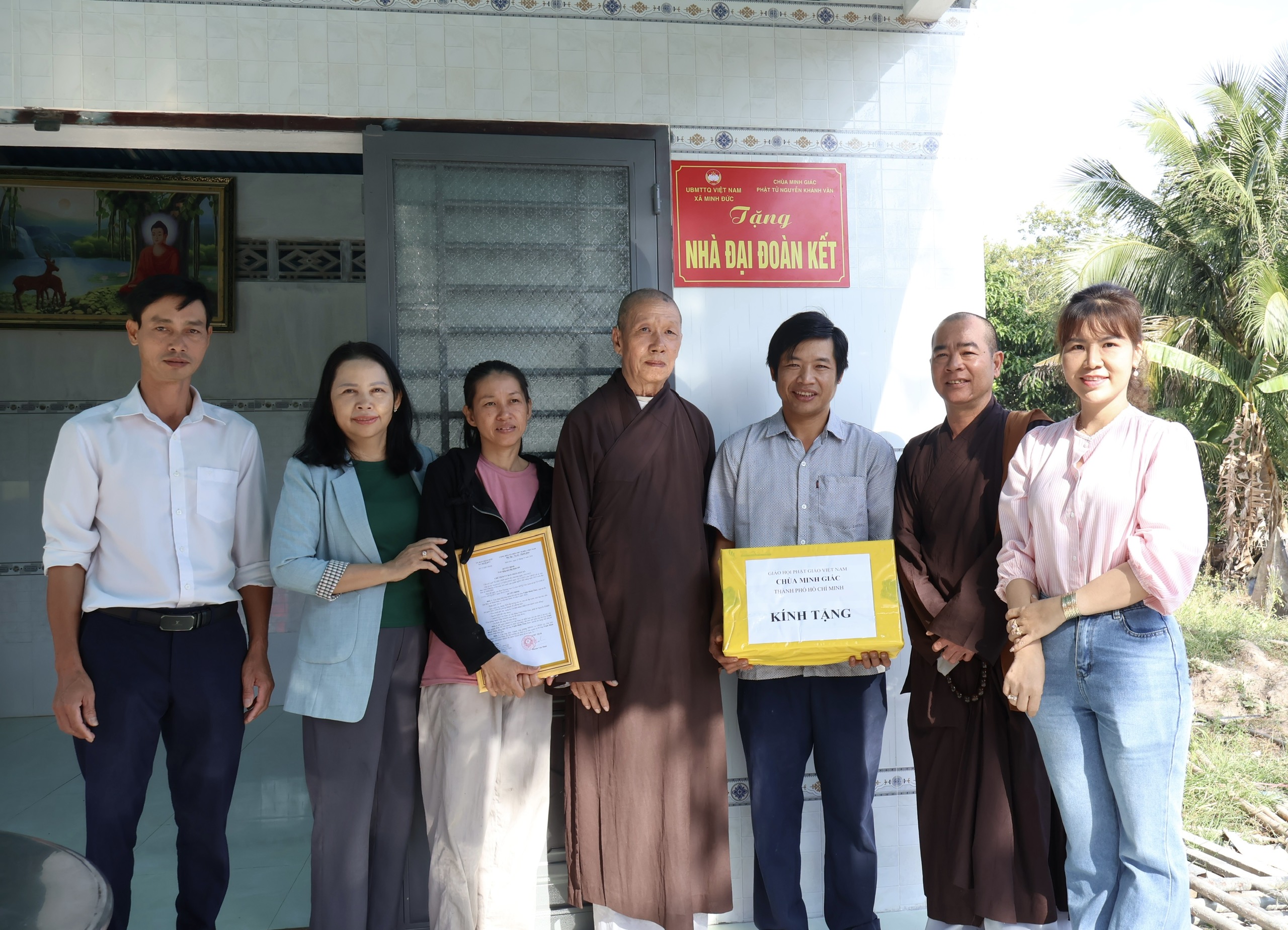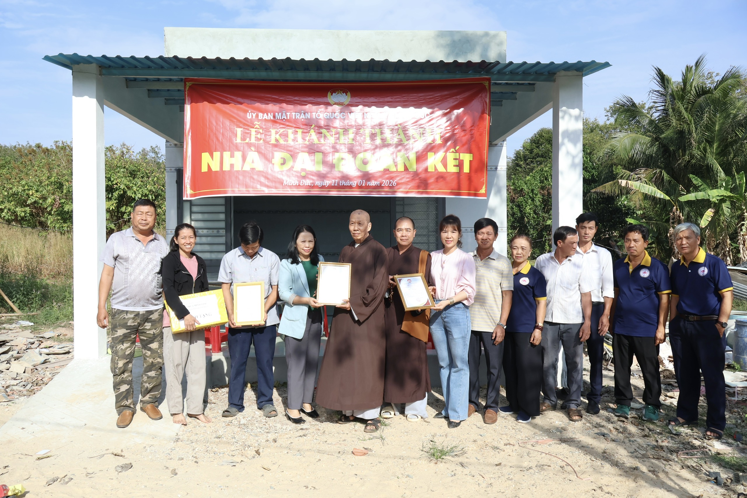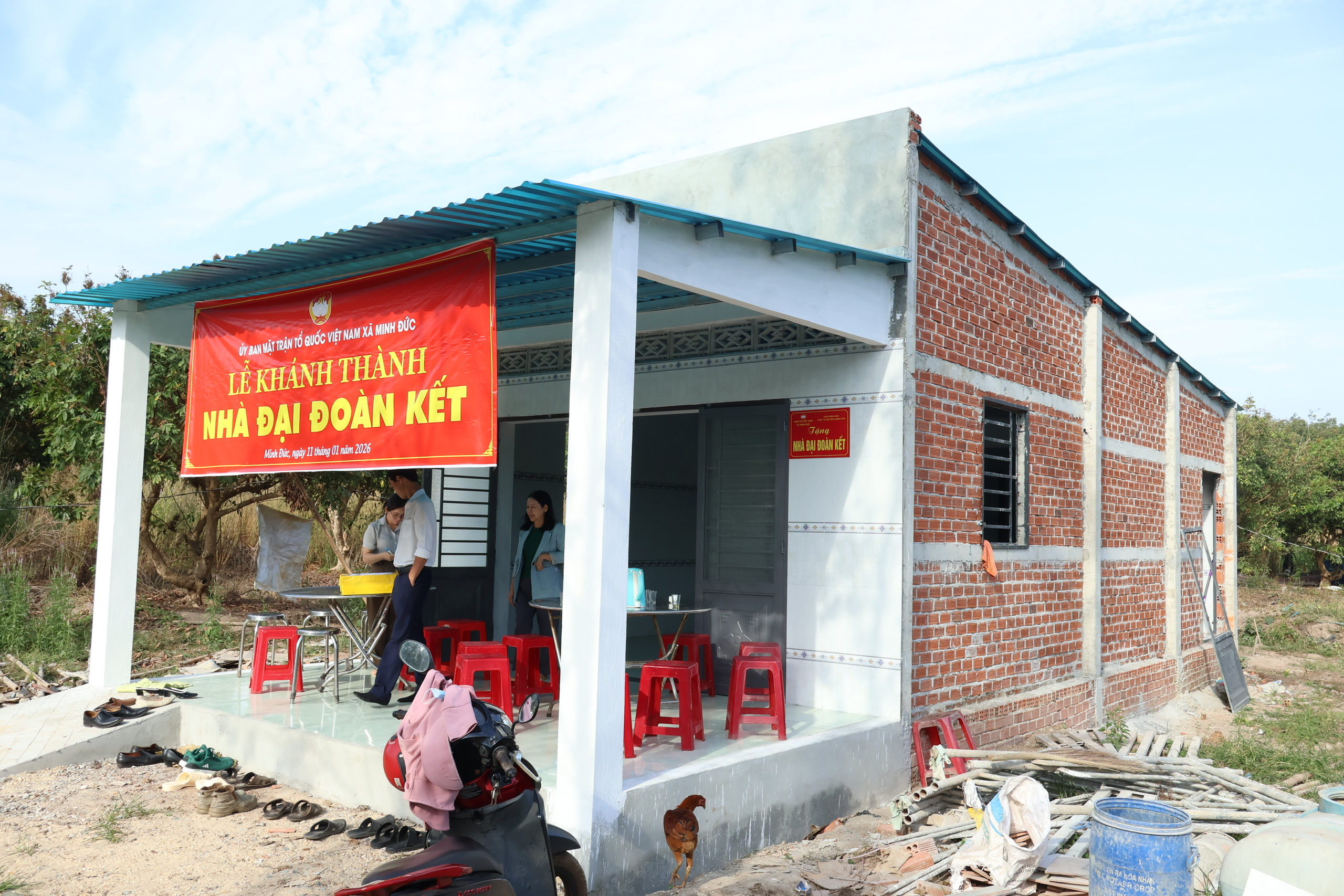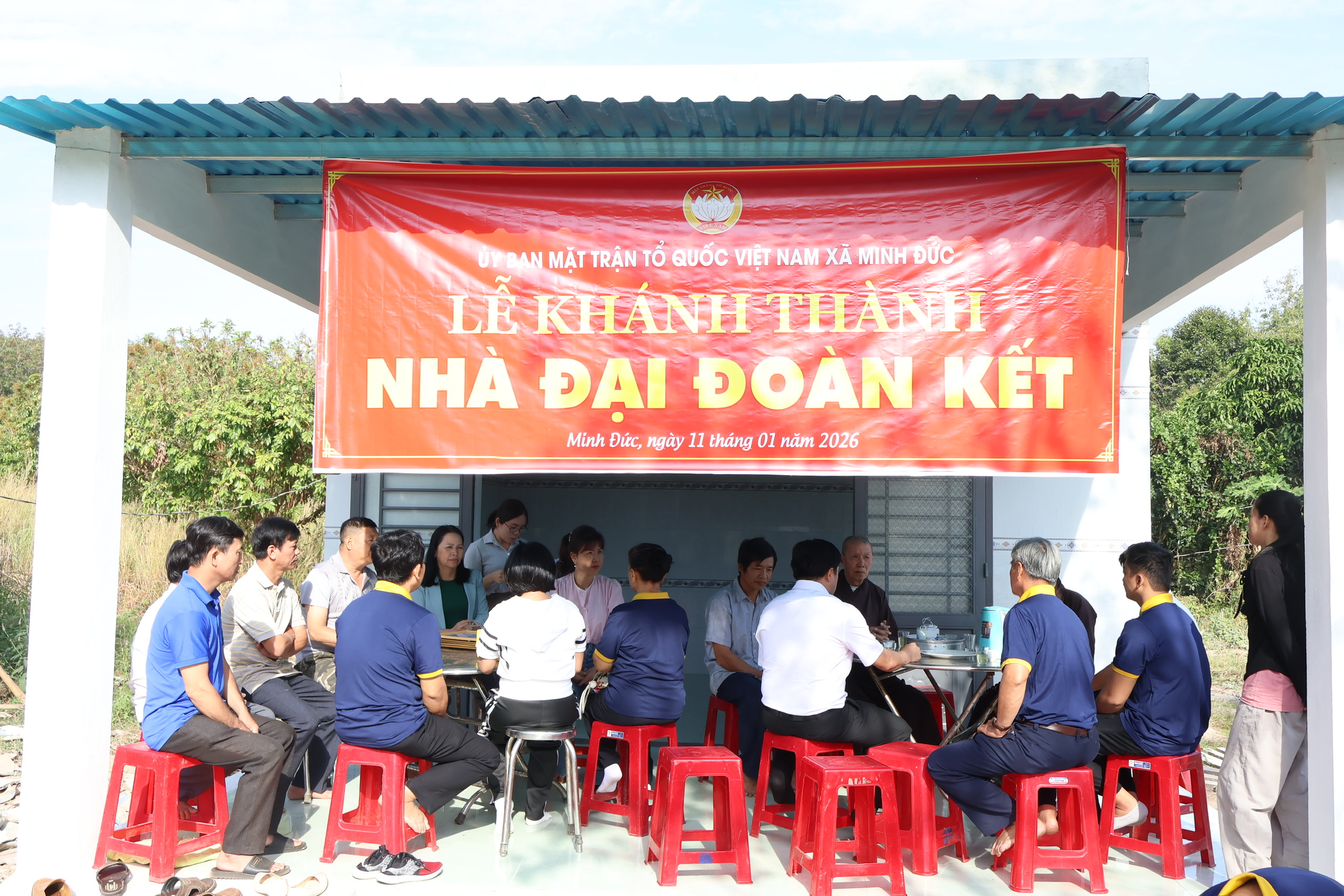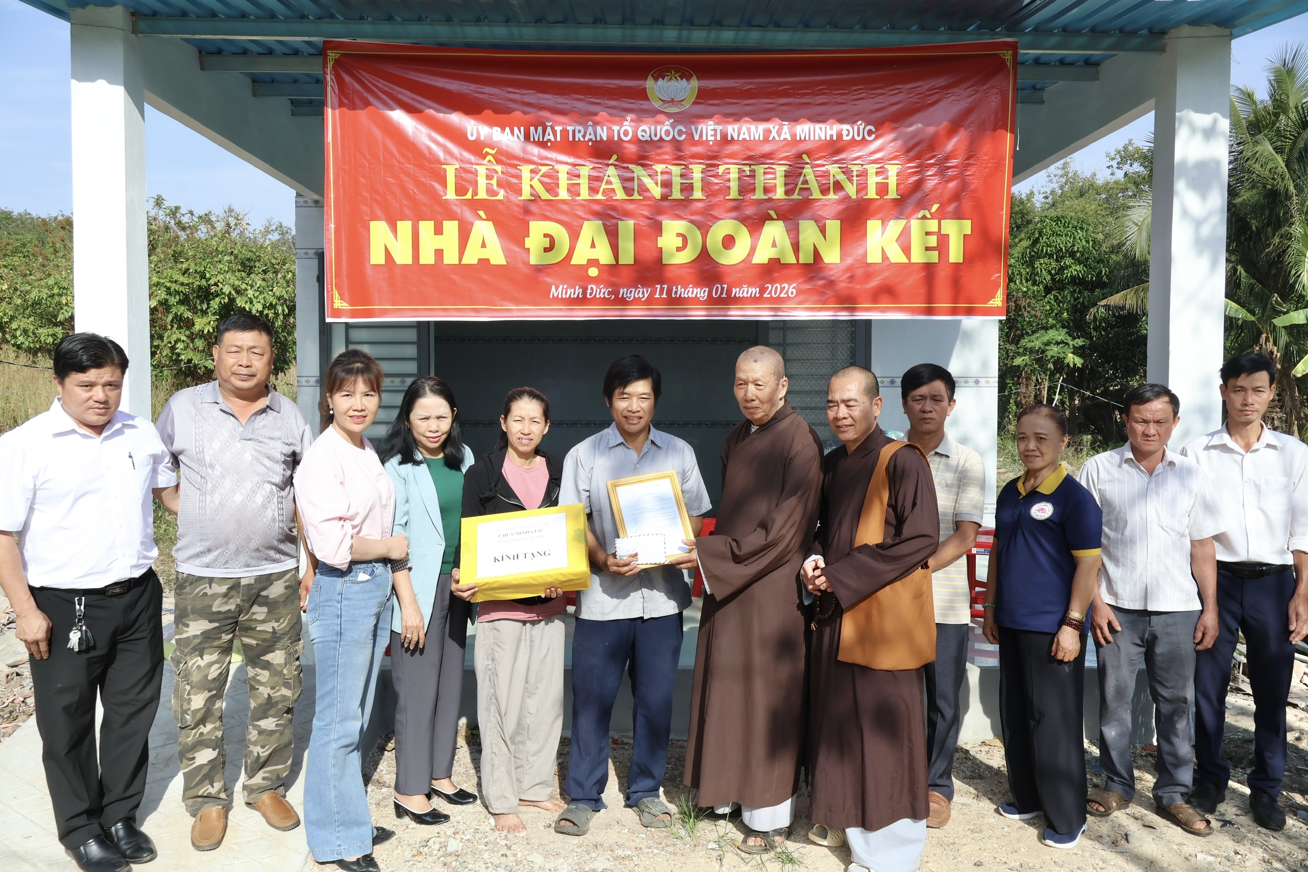 Sáng ngày 11/1/2026, tại ấp Sóc Rul, xã Minh Đức, tỉnh Đồng Nai, Ủy ban MTTQ Việt Nam xã Minh Đức phối hợp cùng các tổ chức chính trị – xã hội và Chùa Minh Giác long trọng tổ chức Lễ khánh thành, bàn giao công trình “Nhà Đại đoàn kết” cho hộ gia đình ông Trịnh Minh Thủy.