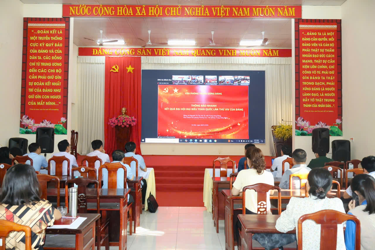 Sáng ngày 28/01/2026, tại điểm cầu xã Minh Đức, Đảng ủy xã đã tổ chức tham dự Hội nghị trực tuyến báo cáo viên Trung ương tháng 01/2026. Tham dự hội nghị có đồng chí Lưu Quốc Nhật – Phó Bí thư Thường trực Đảng ủy; đồng chí Huỳnh Văn Minh – Phó Bí thư Đảng ủy, Chủ tịch UBND xã; cùng các đồng chí Ủy viên Ban Thường vụ; Uỷ viên Ban Chấp hành Đảng bộ; Ủy viên Uỷ ban kiểm tra Đảng ủy; lãnh đạo các ban, ngành, đoàn thể, đơn vị; Bí thư các chi bộ trực thuộc; Trưởng ấp và Trưởng ban Công tác Mặt trận các ấp, sóc trên địa bàn xã.