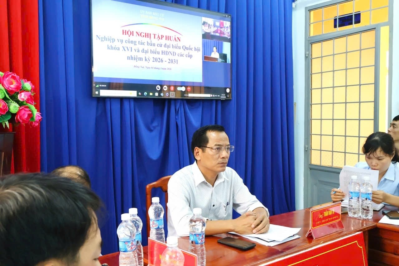 Chiều ngày 04/3/2026, Ủy ban bầu cử tỉnh Đồng Nai tổ chức hội nghị tập huấn nghiệp vụ công tác bầu cử theo hình thức trực tiếp kết hợp trực tuyến từ điểm cầu cấp tỉnh đến các xã, phường trên địa bàn.