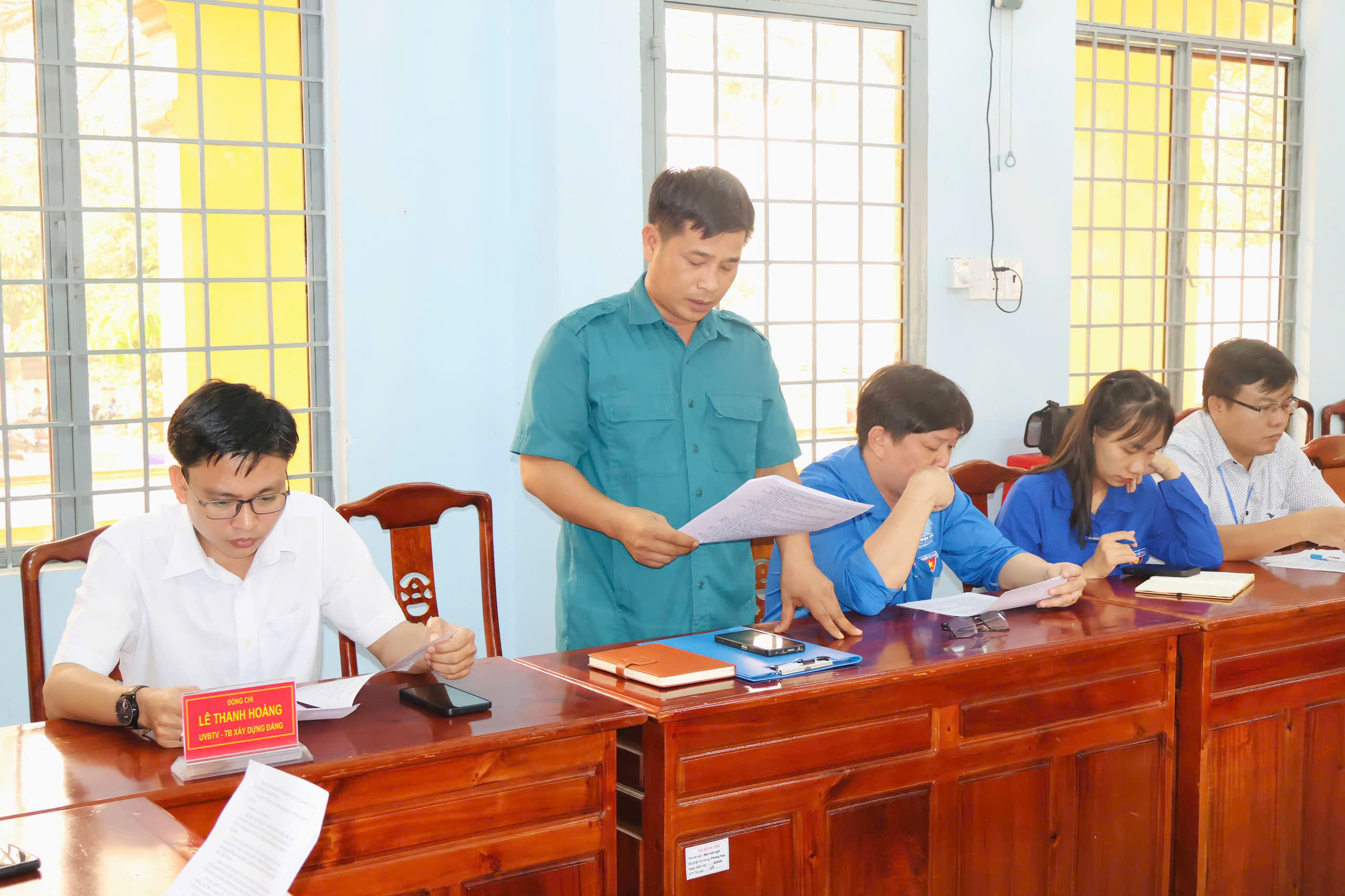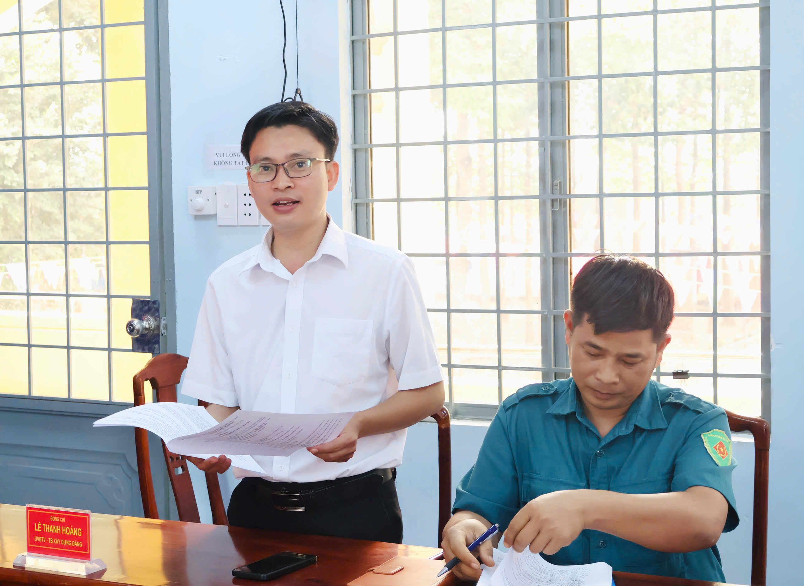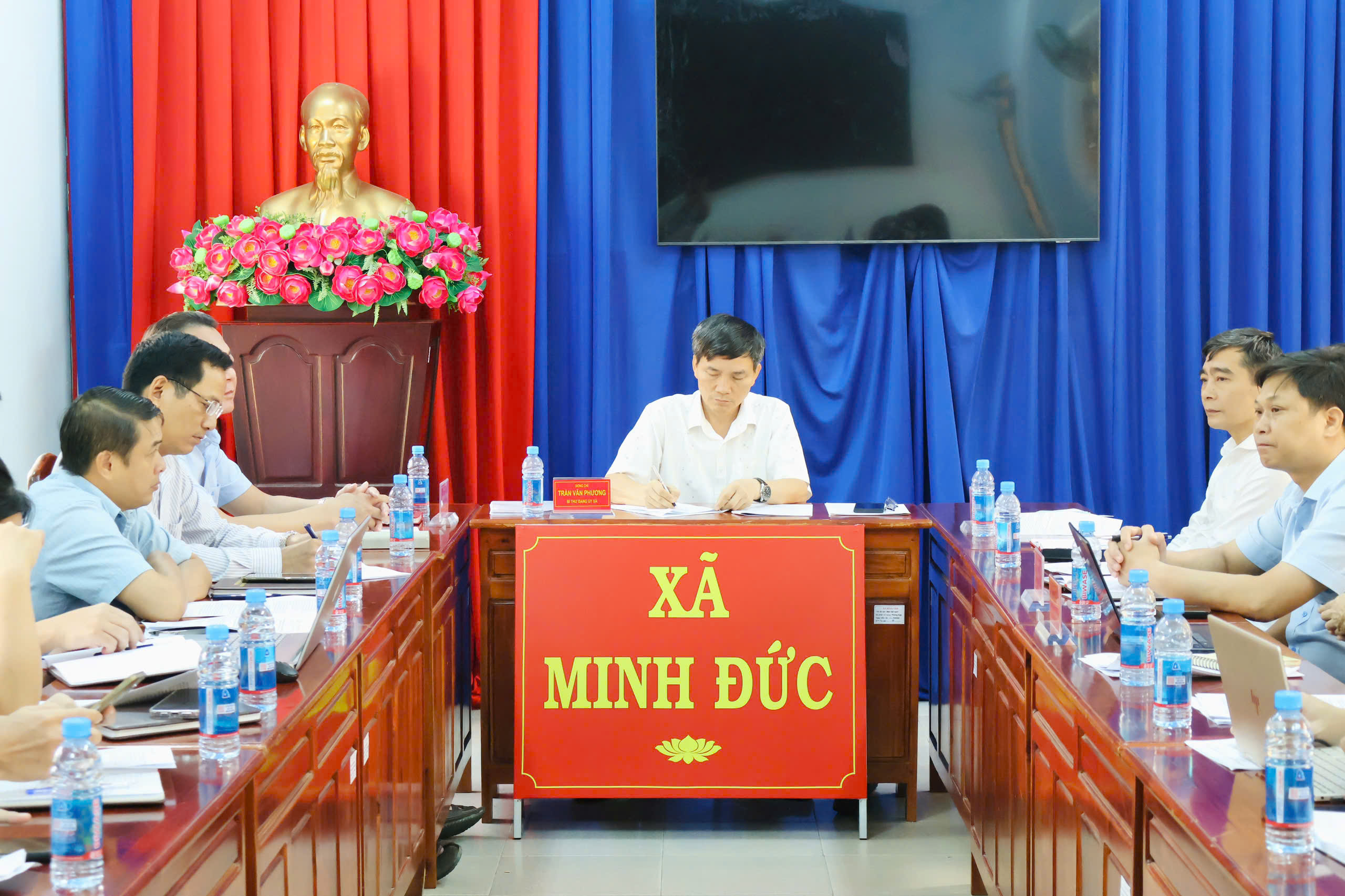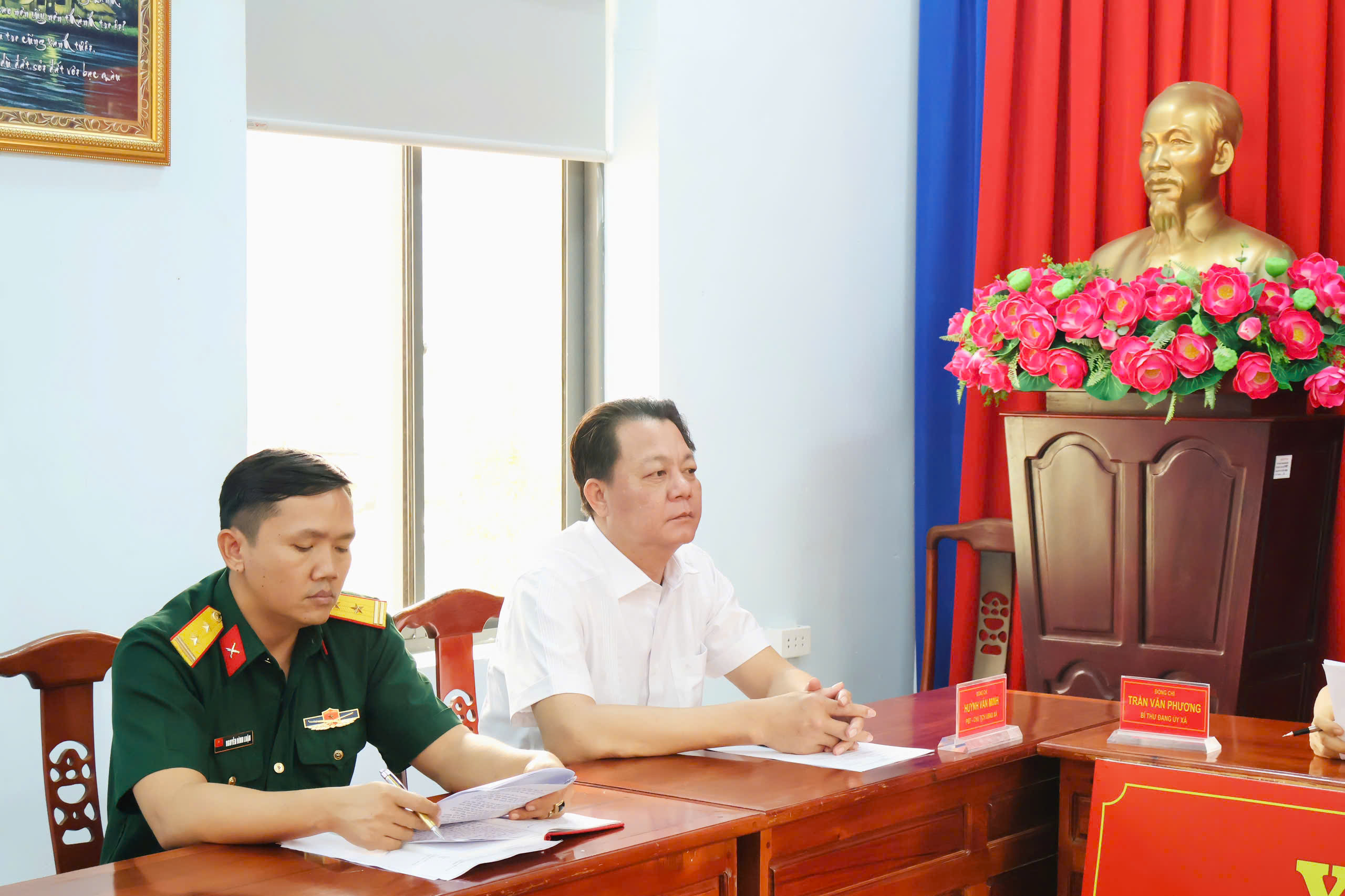 Tham dự hội nghị có đồng chí Trần Văn Phương – Bí thư Đảng ủy, Chủ tịch HĐND xã; đồng chí Huỳnh Văn Minh – Phó Bí thư Đảng ủy, Chủ tịch UBND xã; đồng chí Lê Thanh Hoàng – UVBTV, Trưởng Ban xây dựng Đảng xã; cùng các đồng chí trong Ban Chỉ huy Quân sự xã Minh Đức.