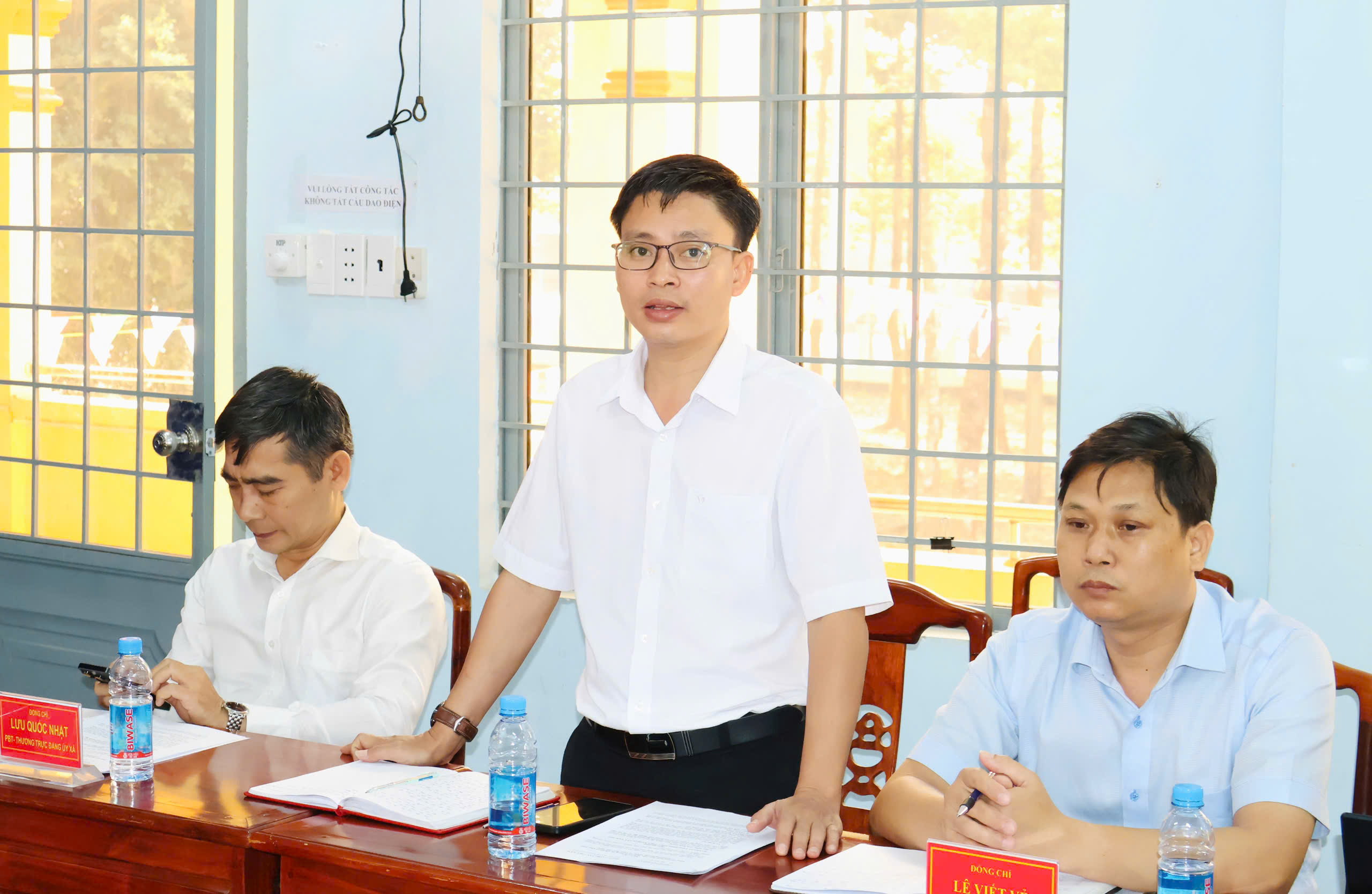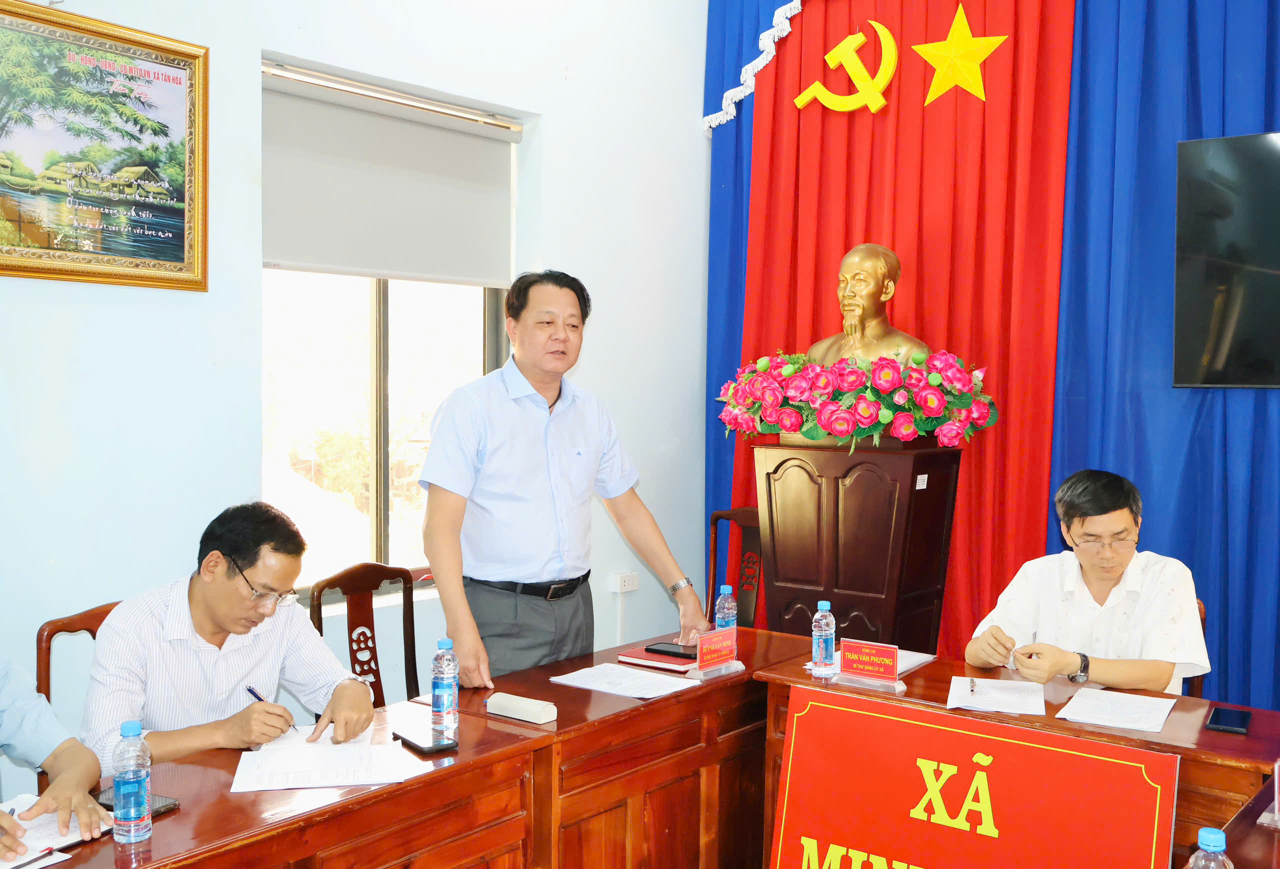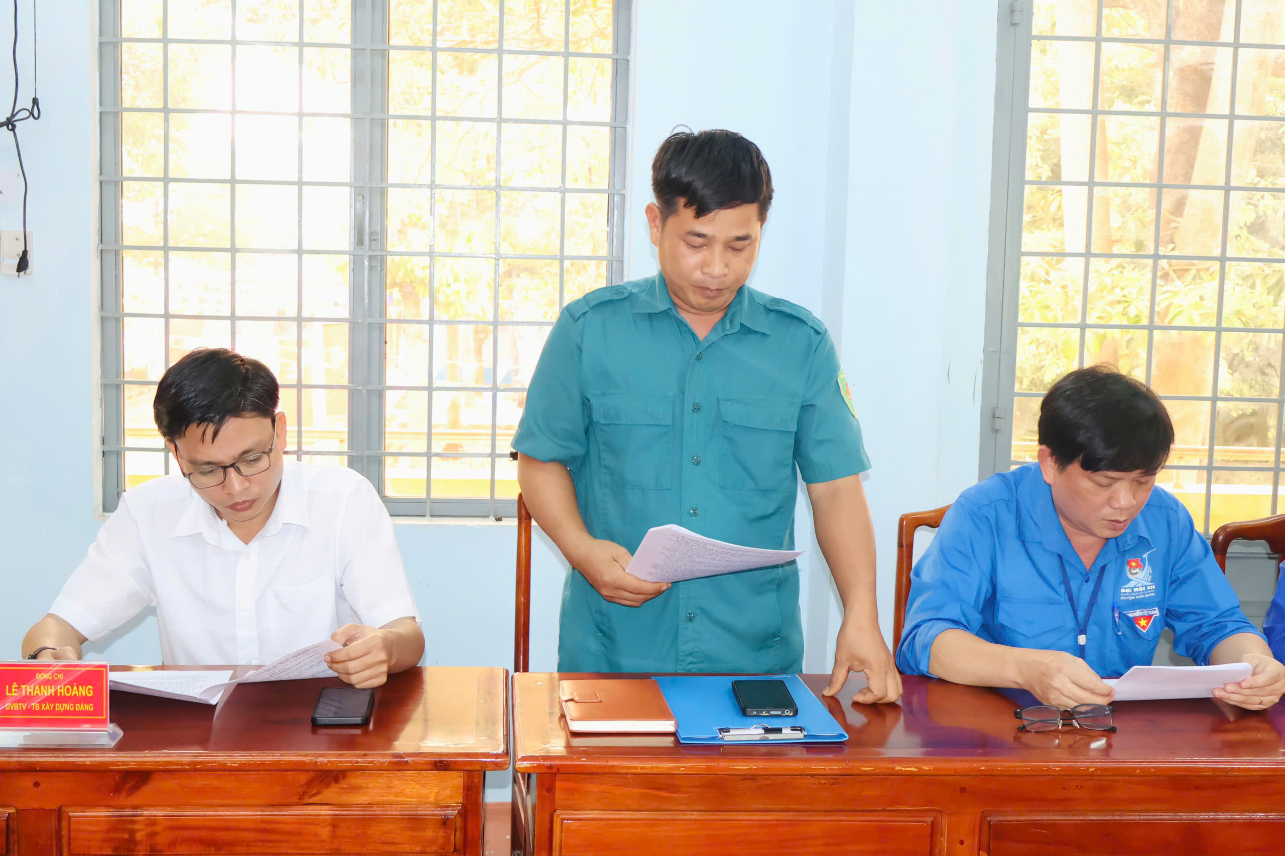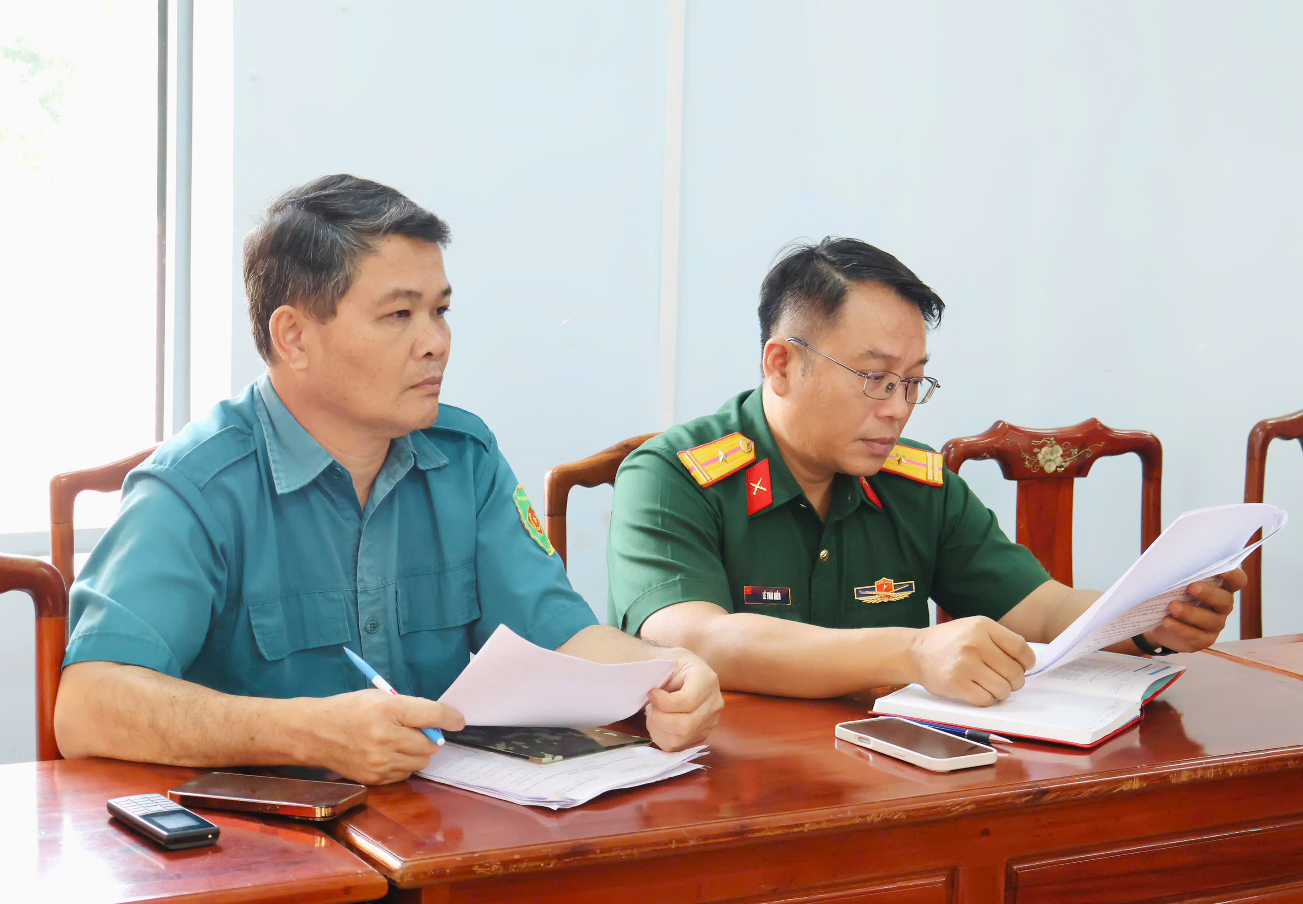 Tham dự hội nghị có đồng chí Trần Văn Phương – Bí thư Đảng ủy, Chủ tịch HĐND xã; đồng chí Huỳnh Văn Minh – Phó Bí thư Đảng ủy, Chủ tịch UBND xã; đồng chí Lê Thanh Hoàng – UVBTV, Trưởng Ban xây dựng Đảng xã; cùng các đồng chí trong Ban Chỉ huy Quân sự xã Minh Đức.
