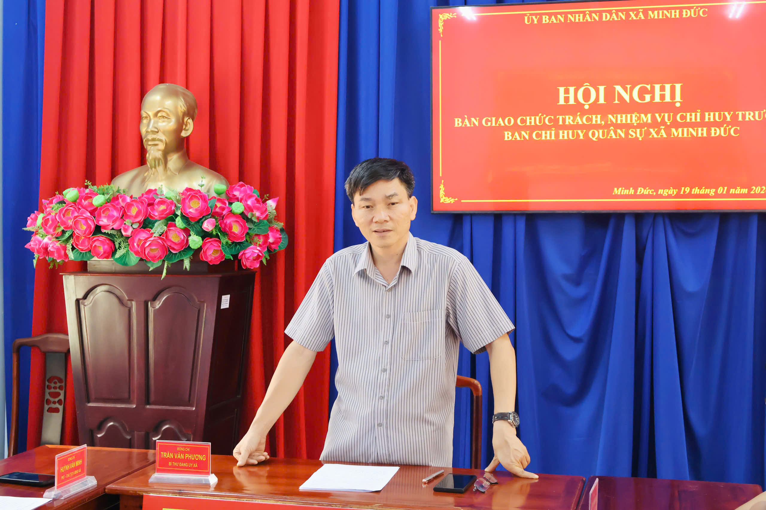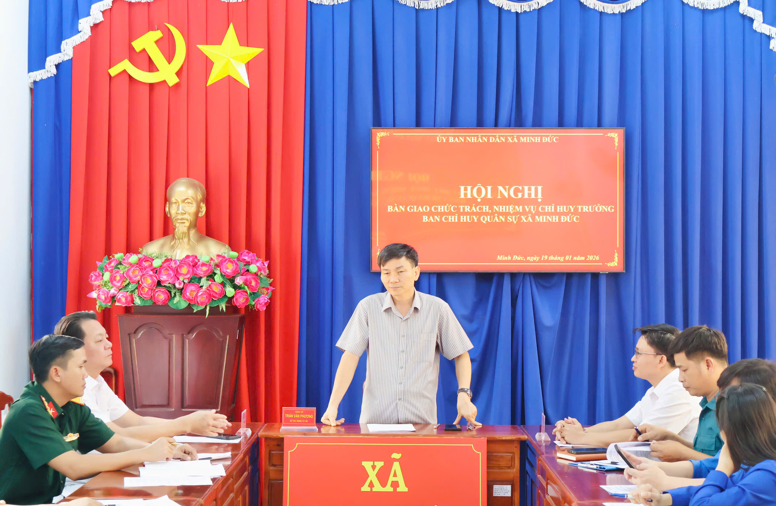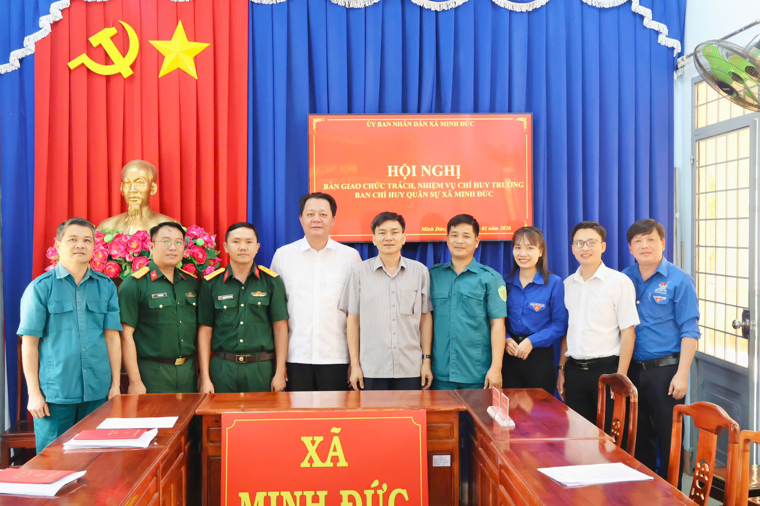 Sáng ngày 19/01/2026, tại Phòng họp Đảng ủy xã Minh Đức, Ban Chỉ huy Quân sự xã đã tổ chức hội nghị bàn giao chức trách, nhiệm vụ Chỉ huy trưởng Ban CHQS xã Minh Đức.