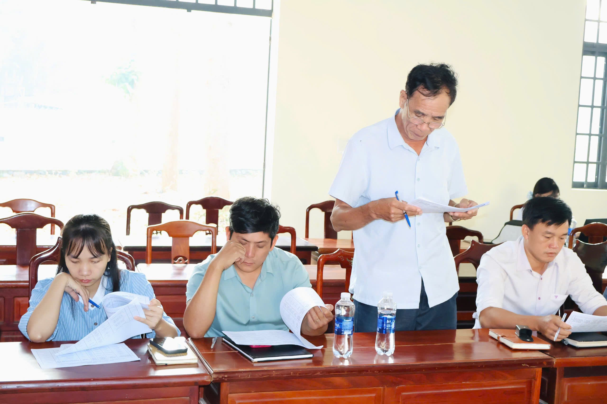 Đồng chí: Huỳnh Văn Minh - Phó Bí thư Đảng ủy, Chủ tịch UBND xã, Chủ tịch Hội đồng NVQS chủ trì hội nghị. Các đồng chí là thành viên hội đồng NVQS, trưởng các ấp, sóc trên địa bàn xã.
